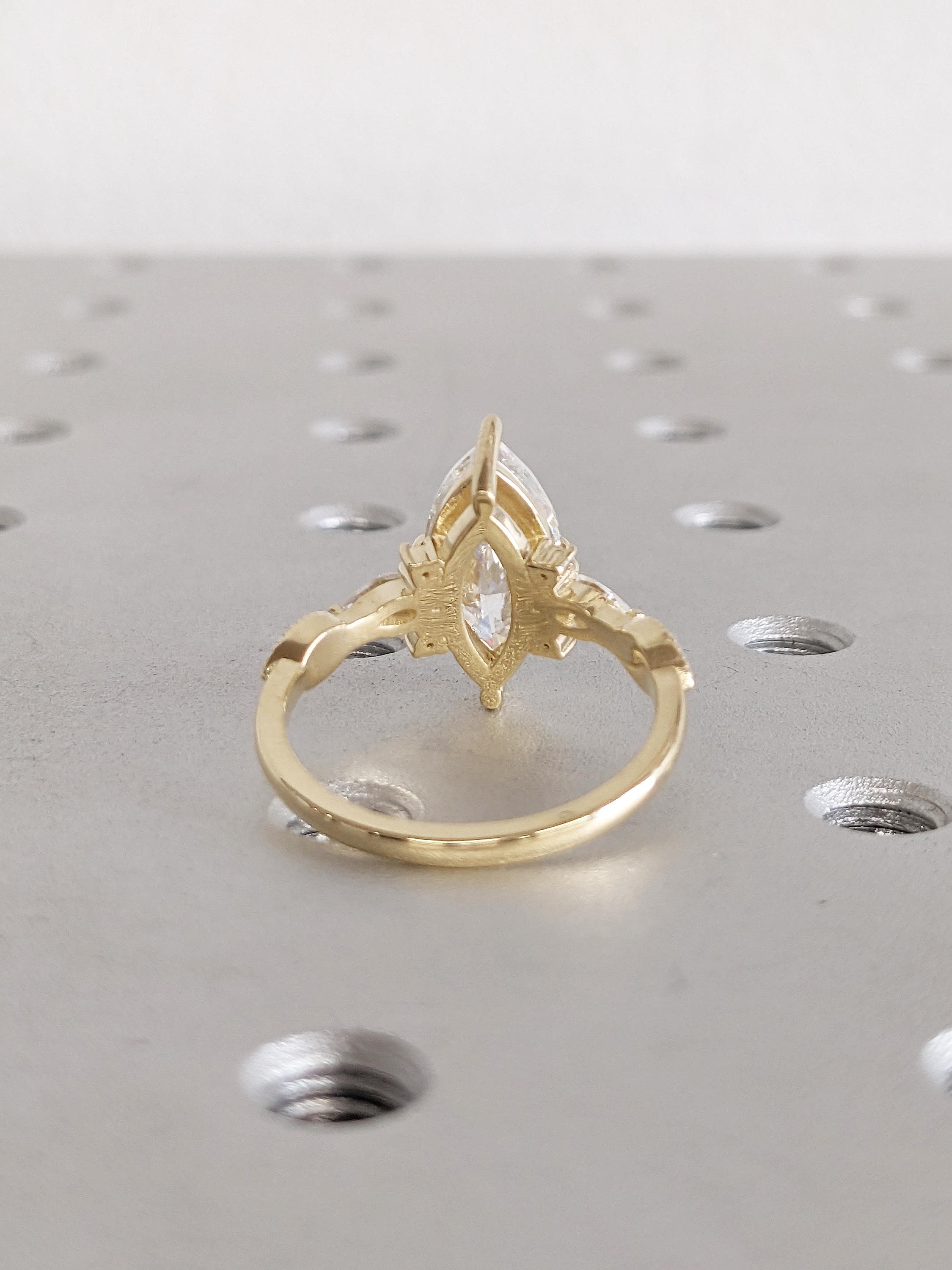 Lab Grown Diamond Engagement Ring, Art Deco 14k Gold Solid 2.5ct Marquise Ring, Unique Women Wedding Ring, Wedding Anniversary Gift for Wife