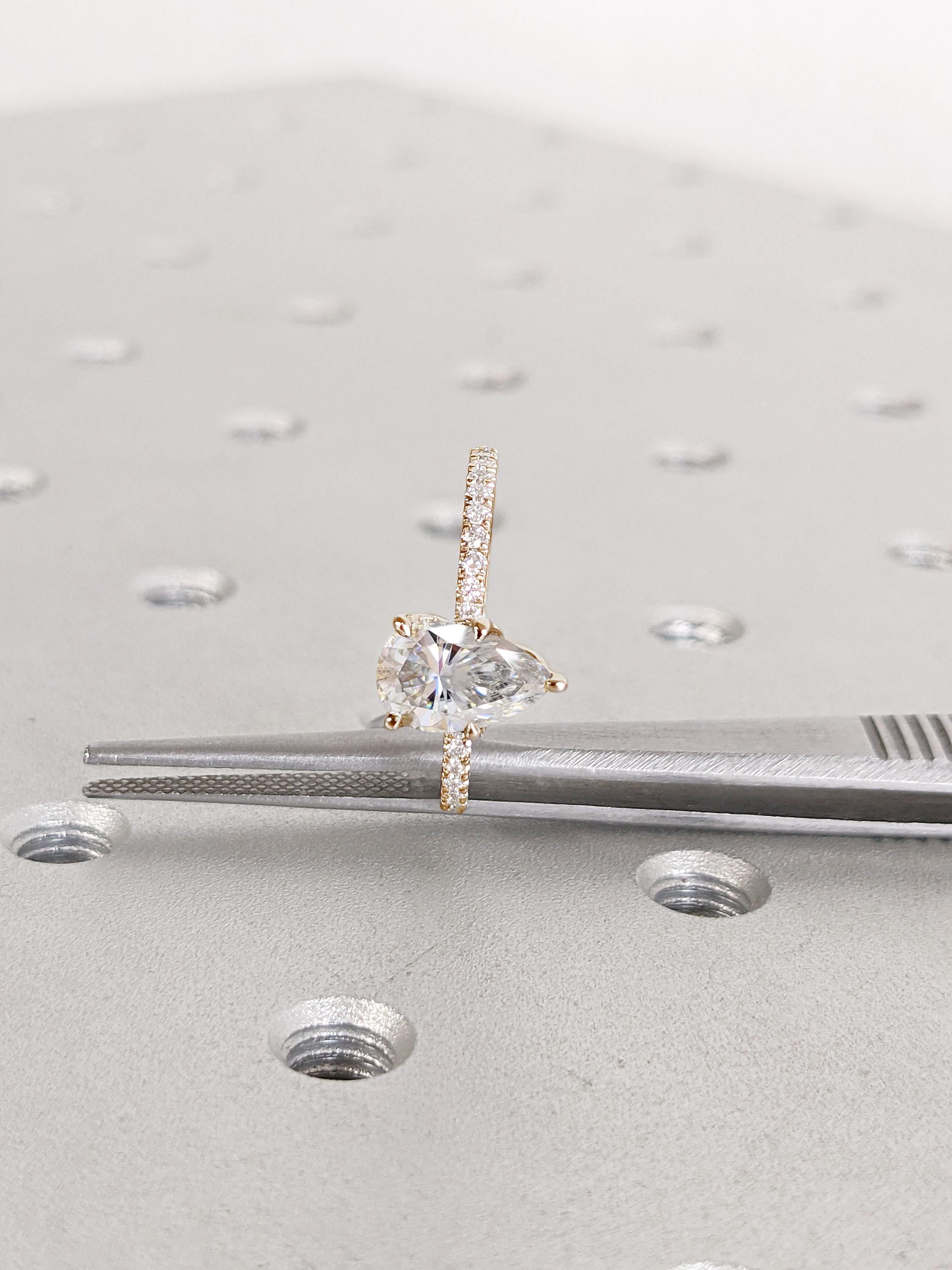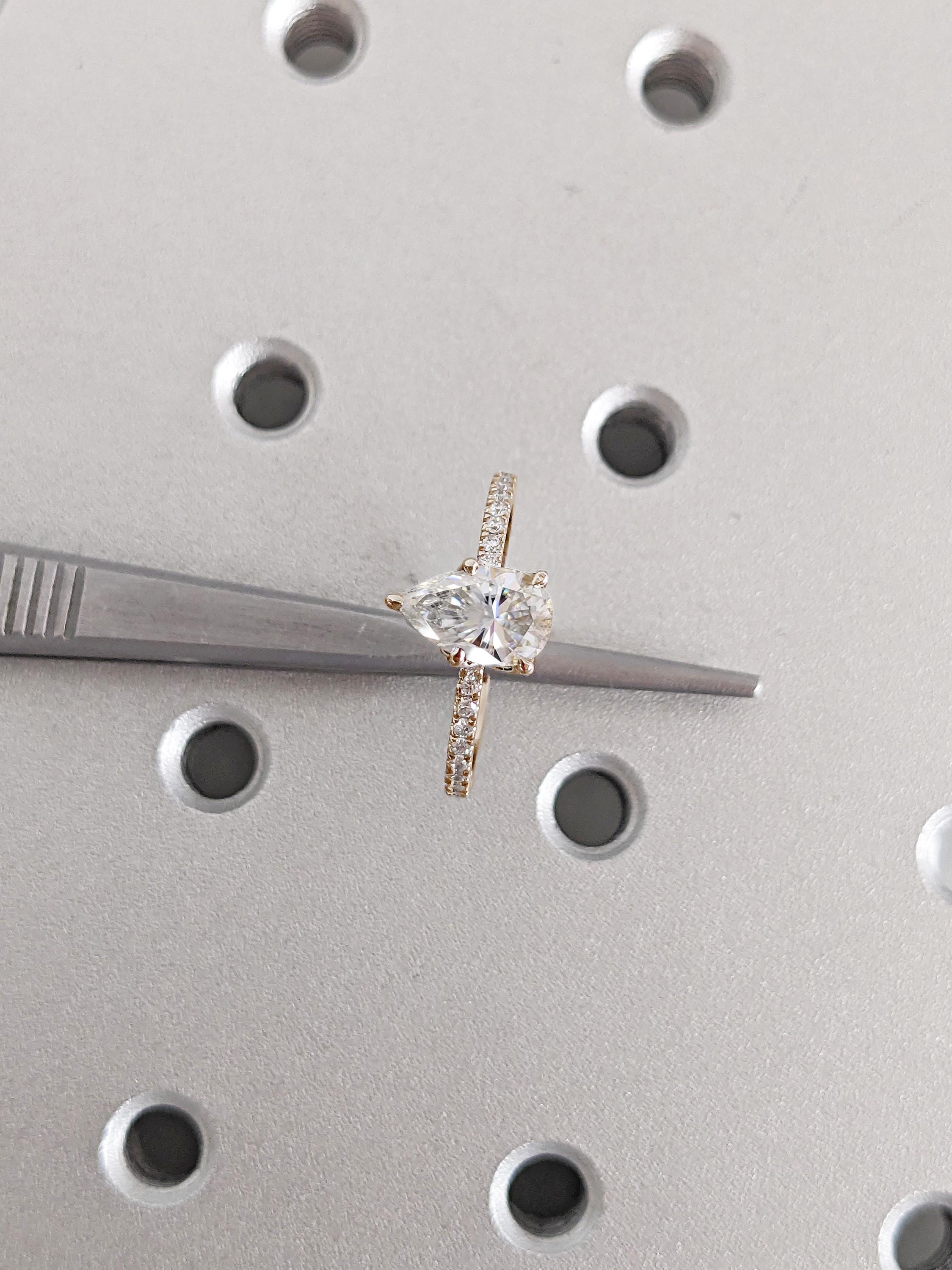Lab Grown Diamond Pear Engagement Ring, Unique Gift for Mom, Bridal Ring, Eco Friendly Ring, Half Eternity Diamond Ring, Lab Created Ring