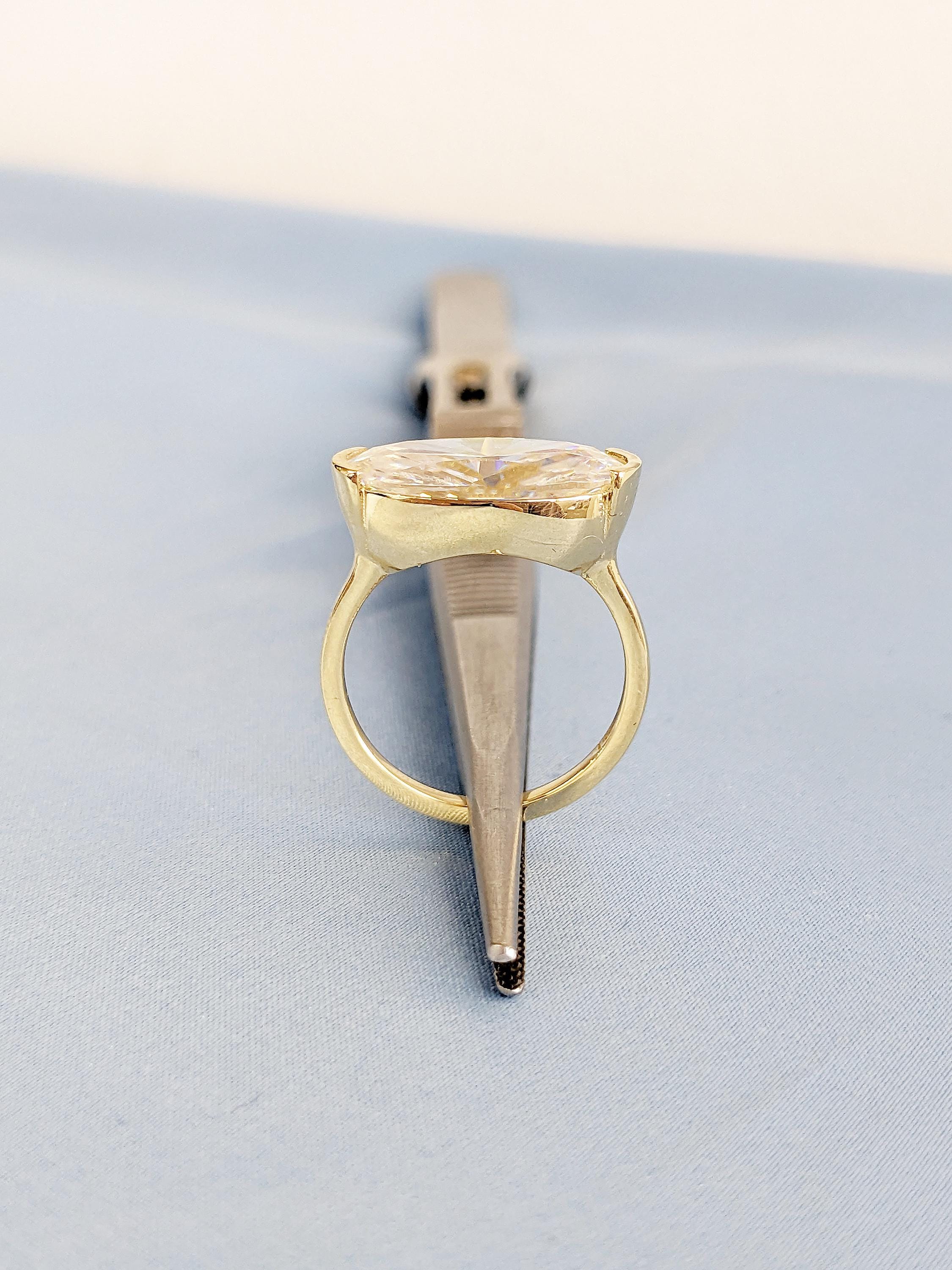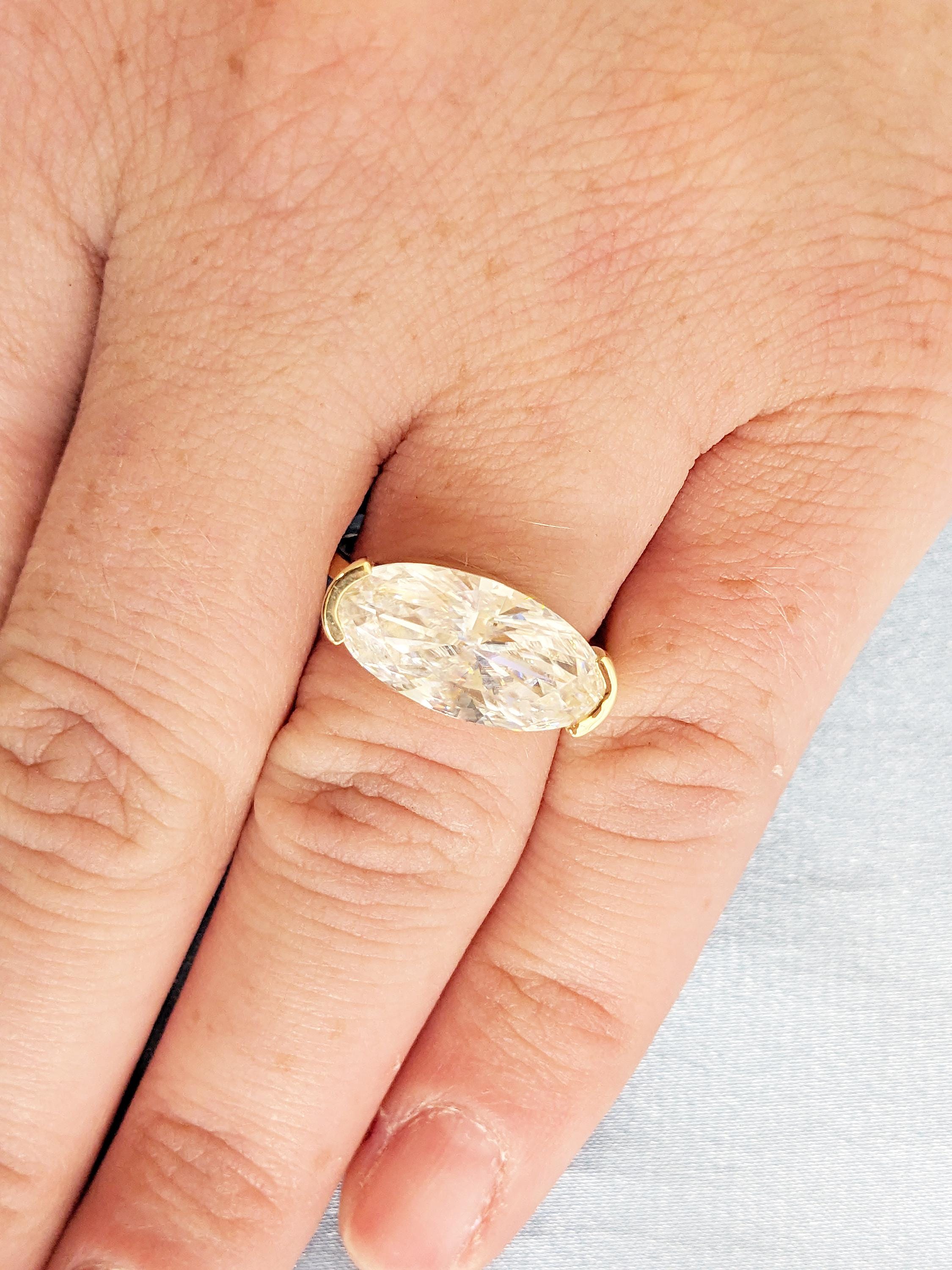 Lab Grown Diamond Ring, Half Bezel 14k Gold Engagement Ring, East West Ring, Elongated Oval Diamond Ring, Solitaire Ring, Statement Ring