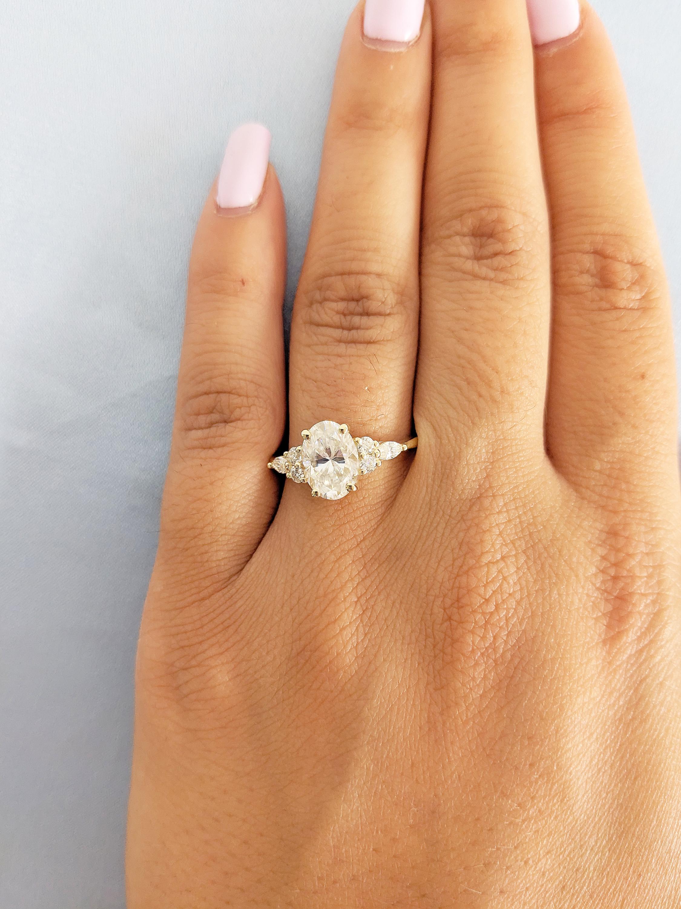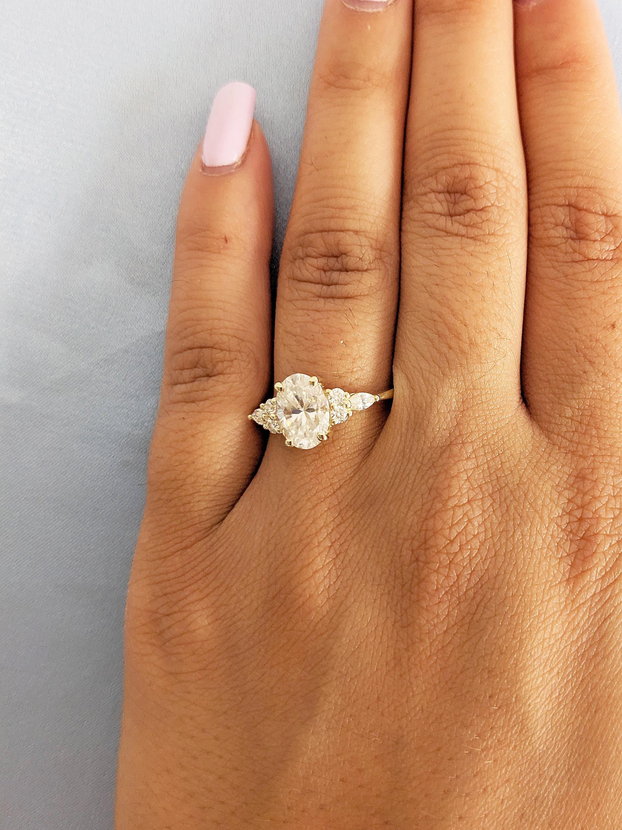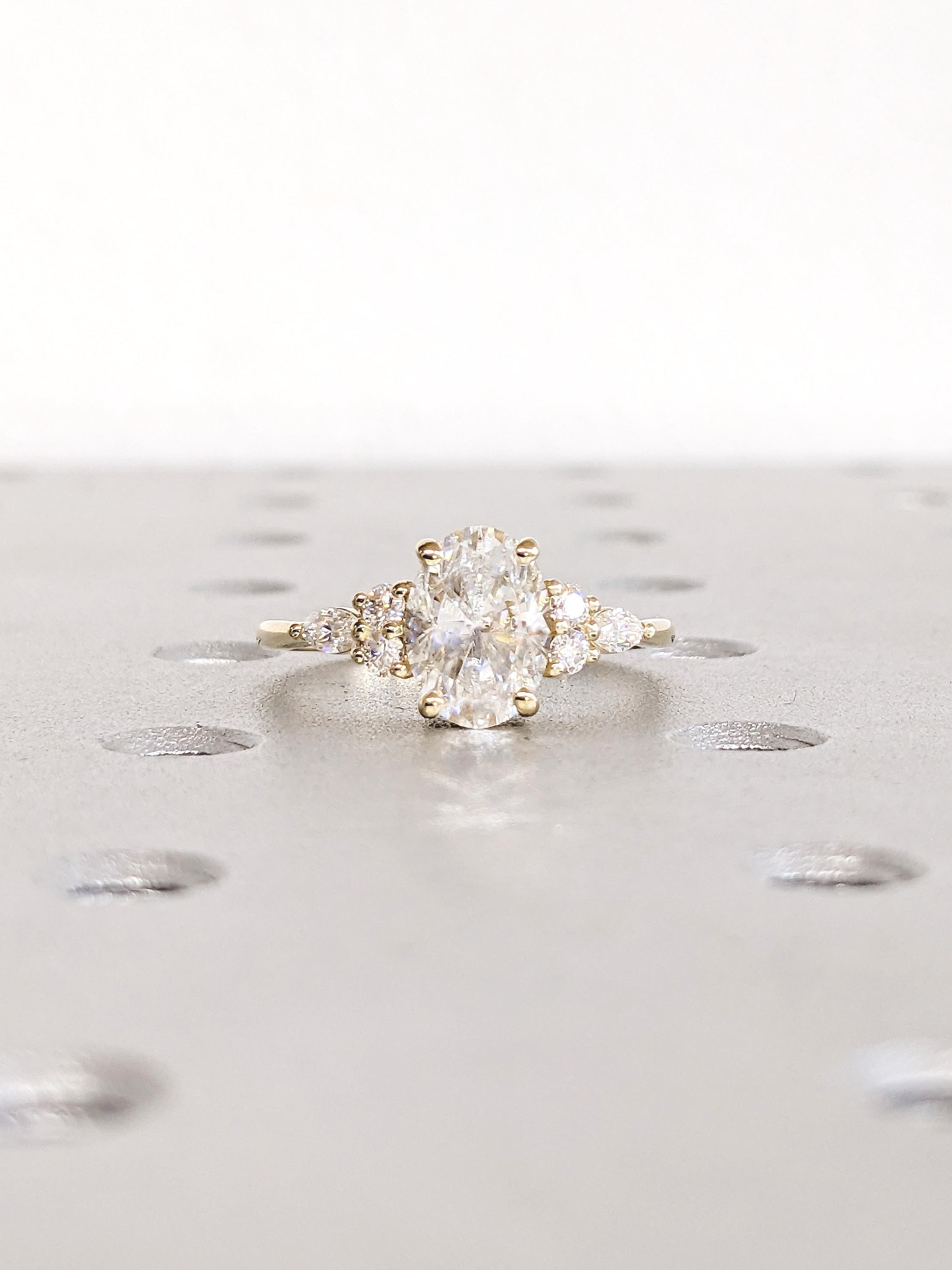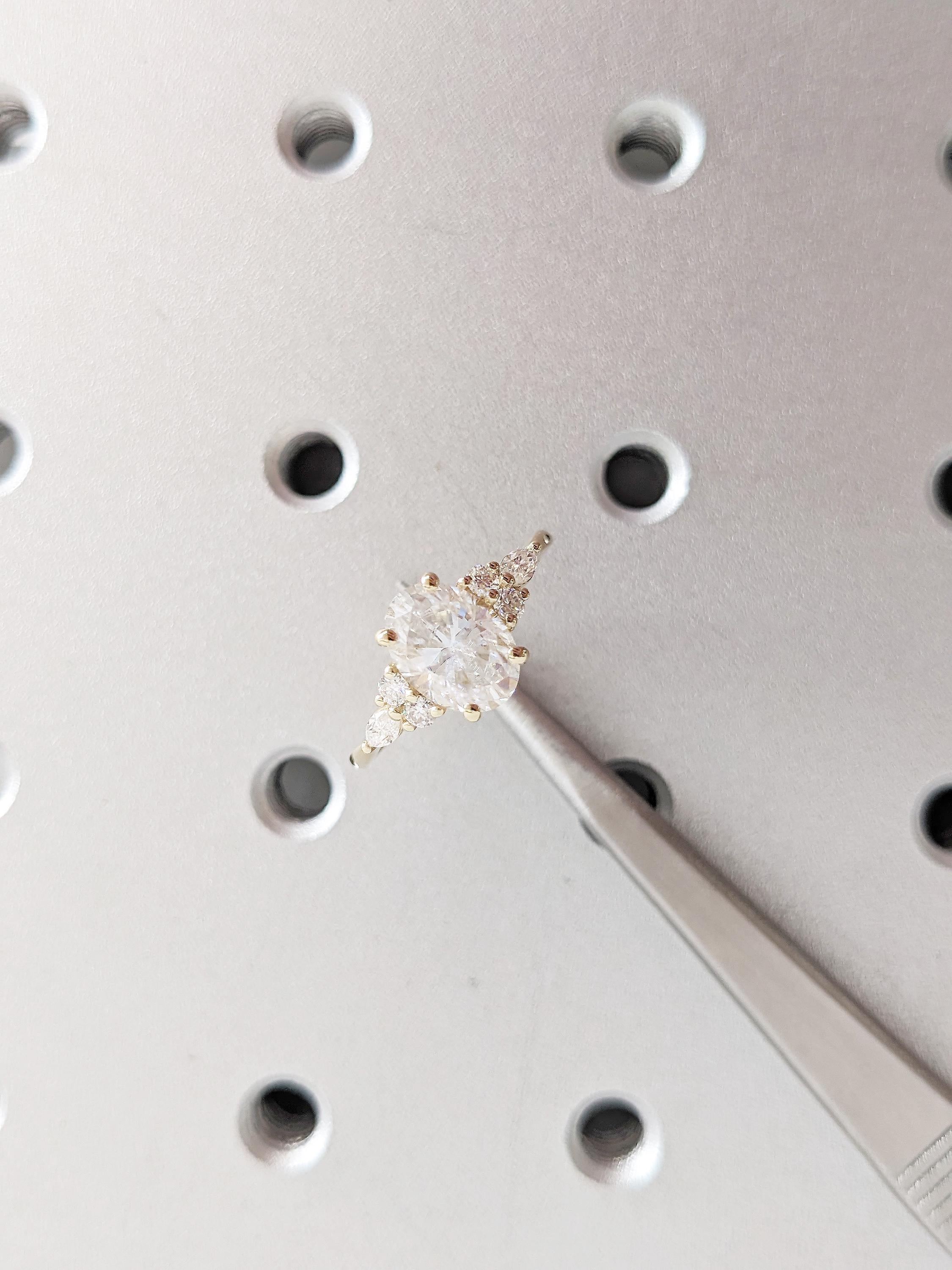 Lab Grown Diamond Ring, Oval Engagement Ring, 14k Solid Gold Ring, Diamond Cluster Ring