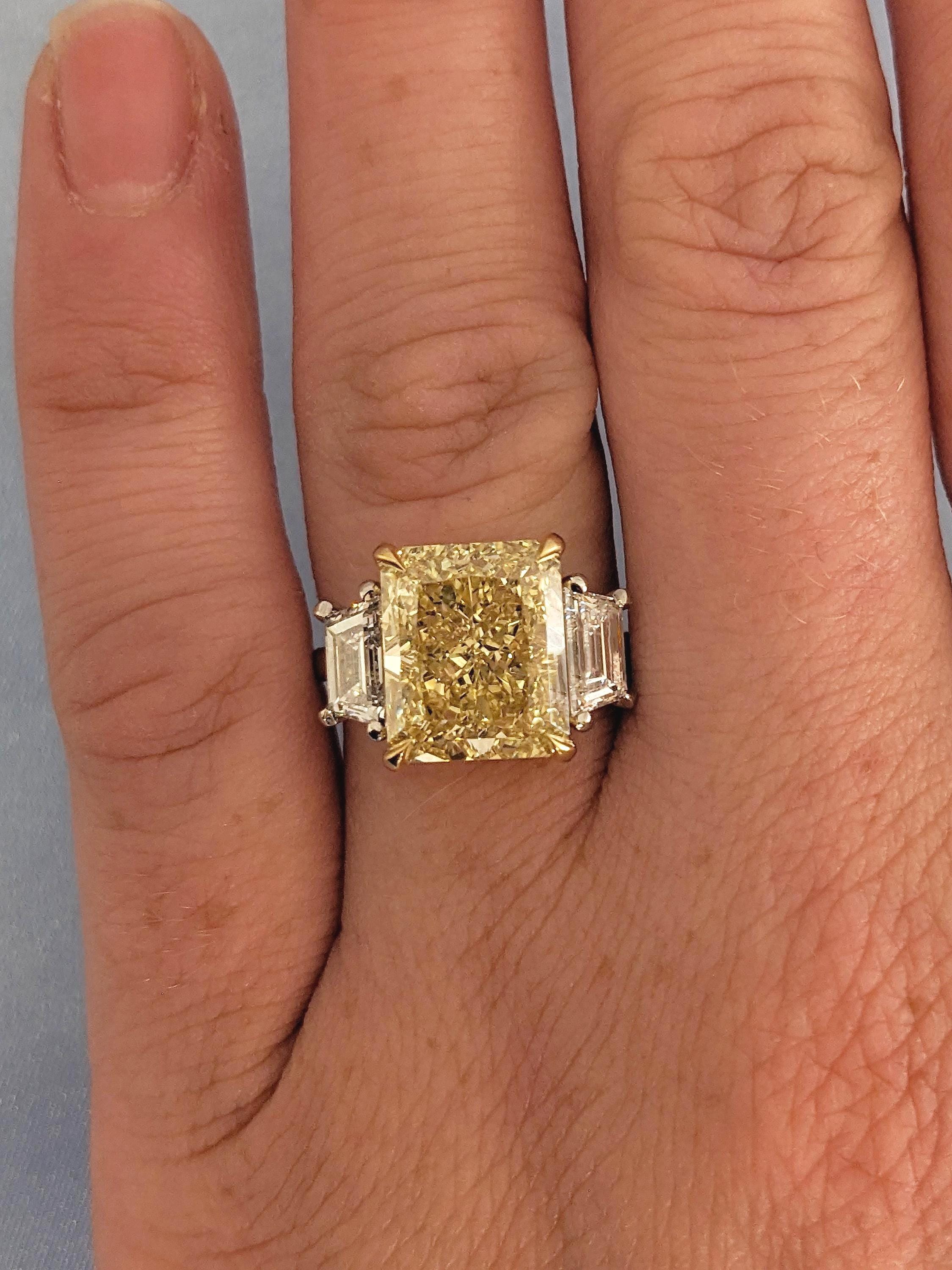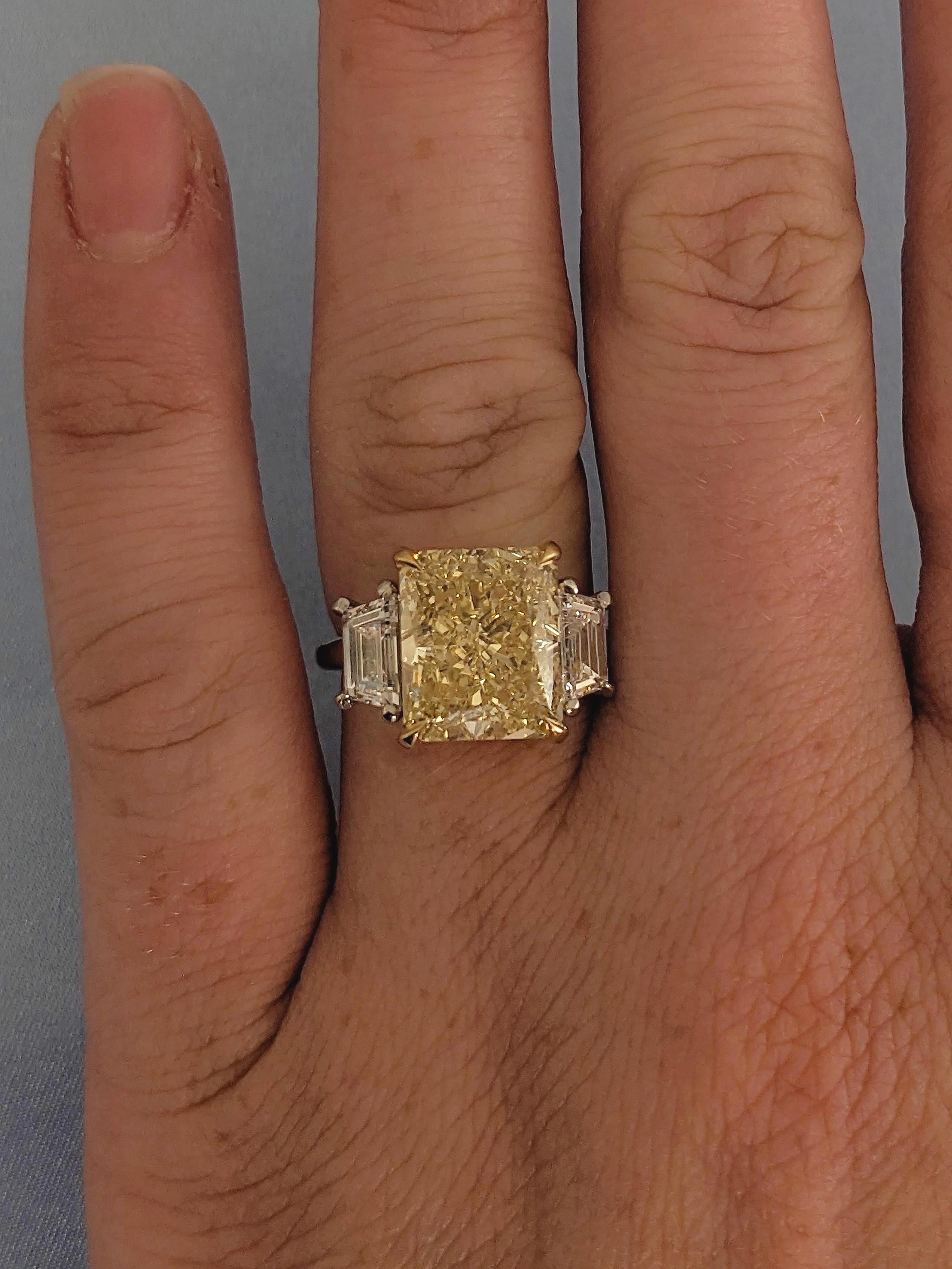 Large 5ct Yellow Diamond Engagement Ring | 18k Gold Radiant cut CVD Diamond Ring | Three Stone Wedding Anniversary Ring