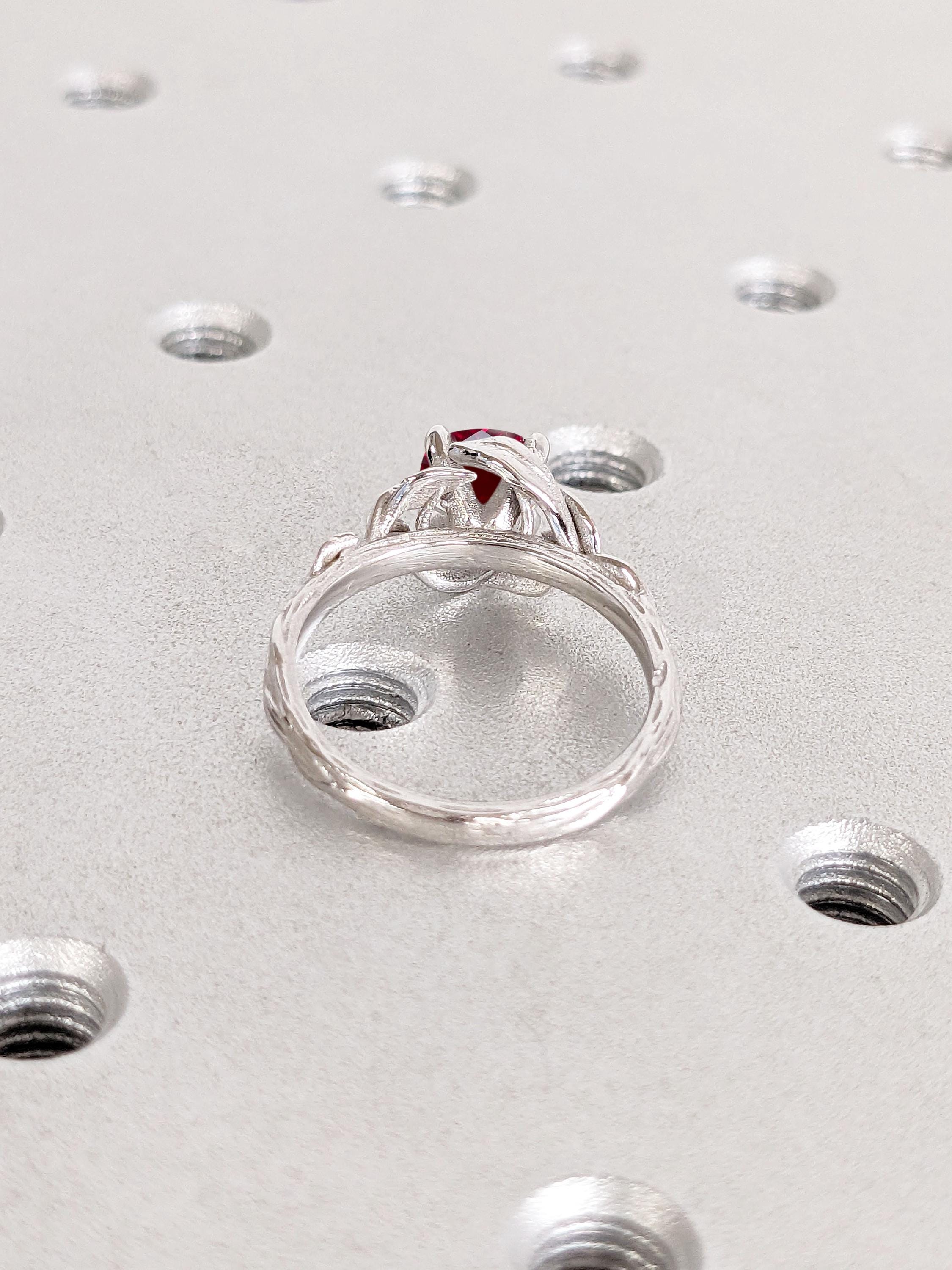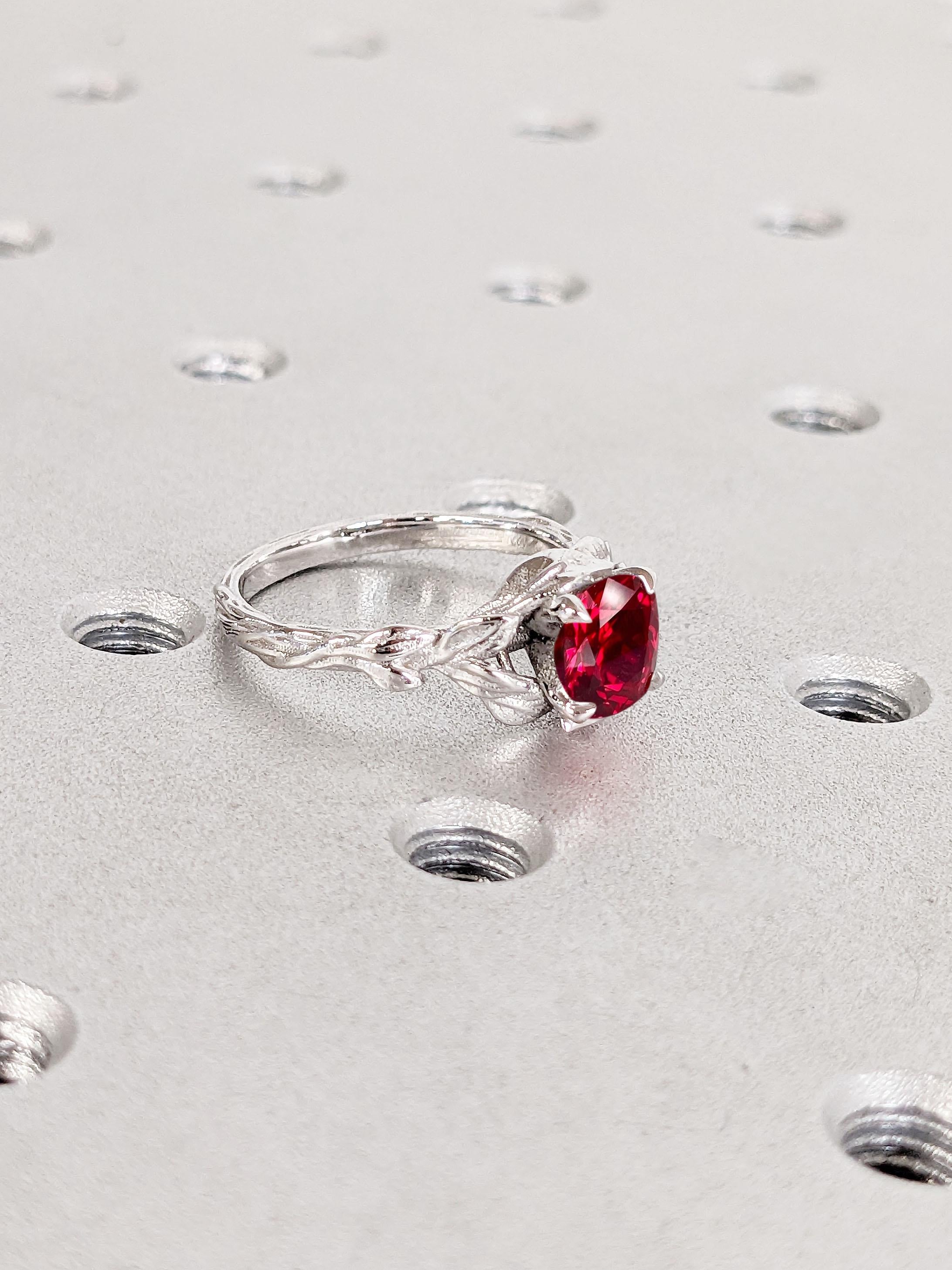 Leaf Ring | 1ct, 2 Carat Ruby Gold Ring | Rustic Engagement Ring | Twig and Branch Promise Ring | Handmade Women Wedding Ring | 14k 18k Gold