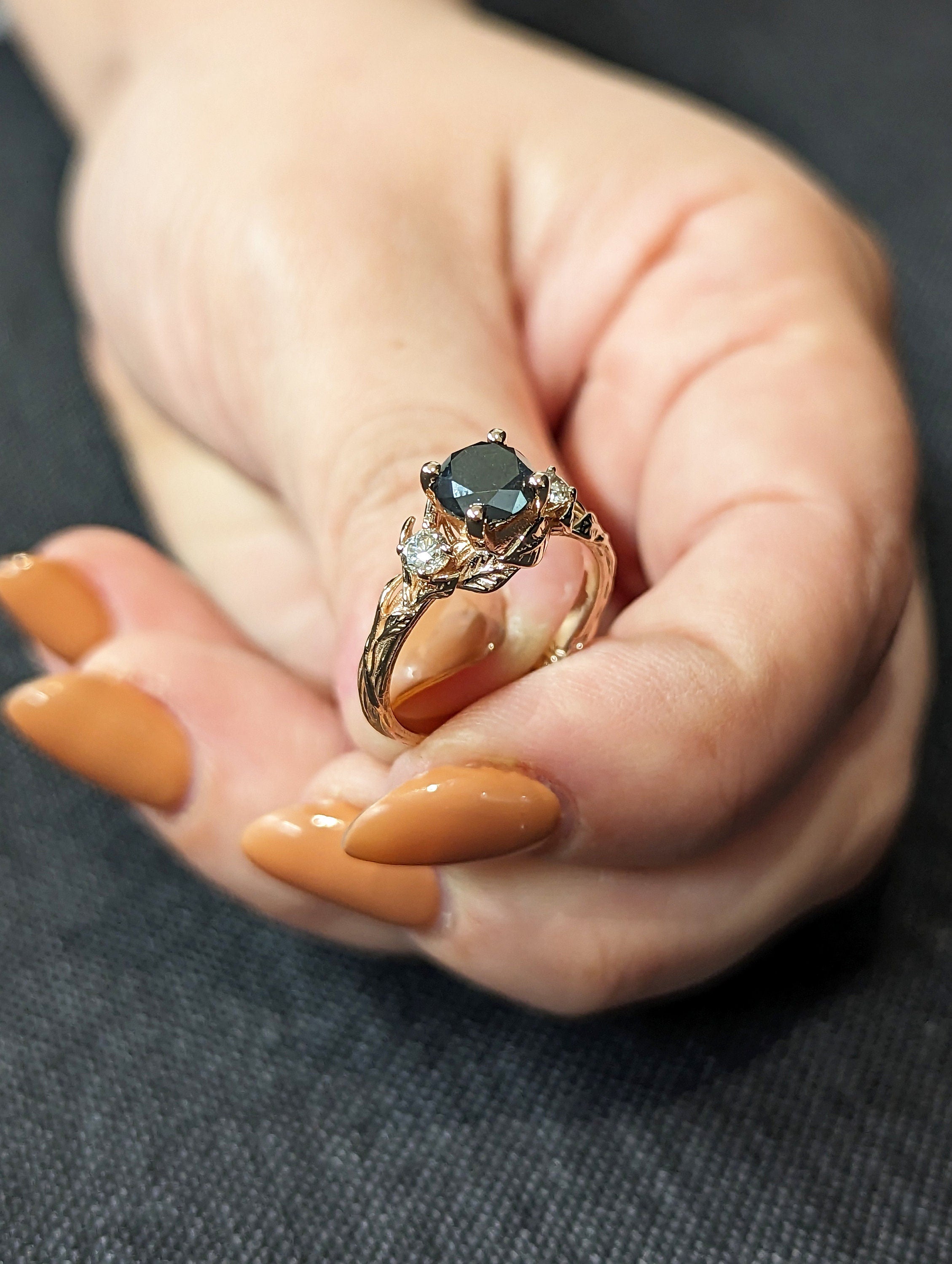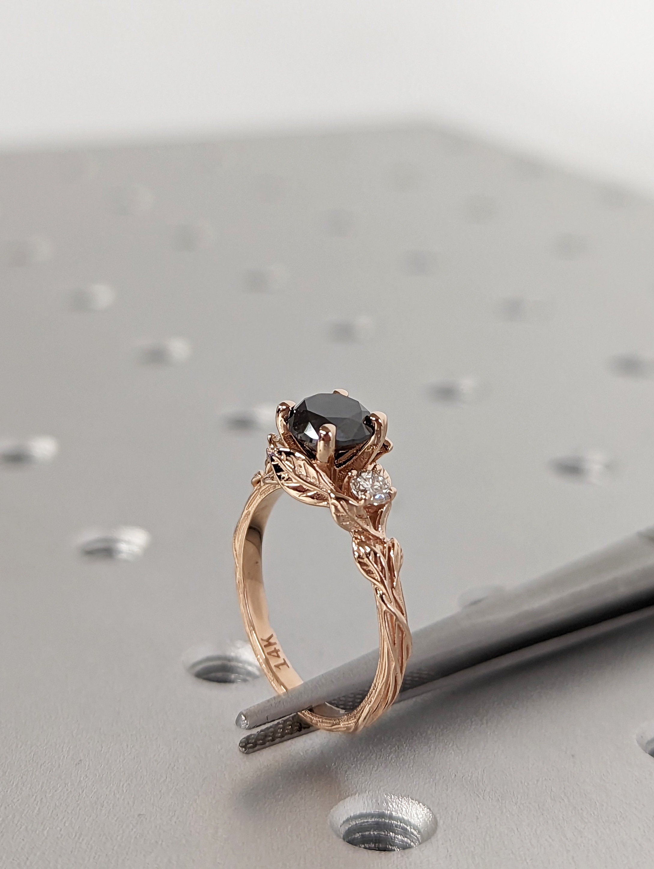 Leaves Engagement Ring, 14K Gold and Diamond engagement ring, engagement ring, leaf ring, vintage, Alternative Engagement Ring