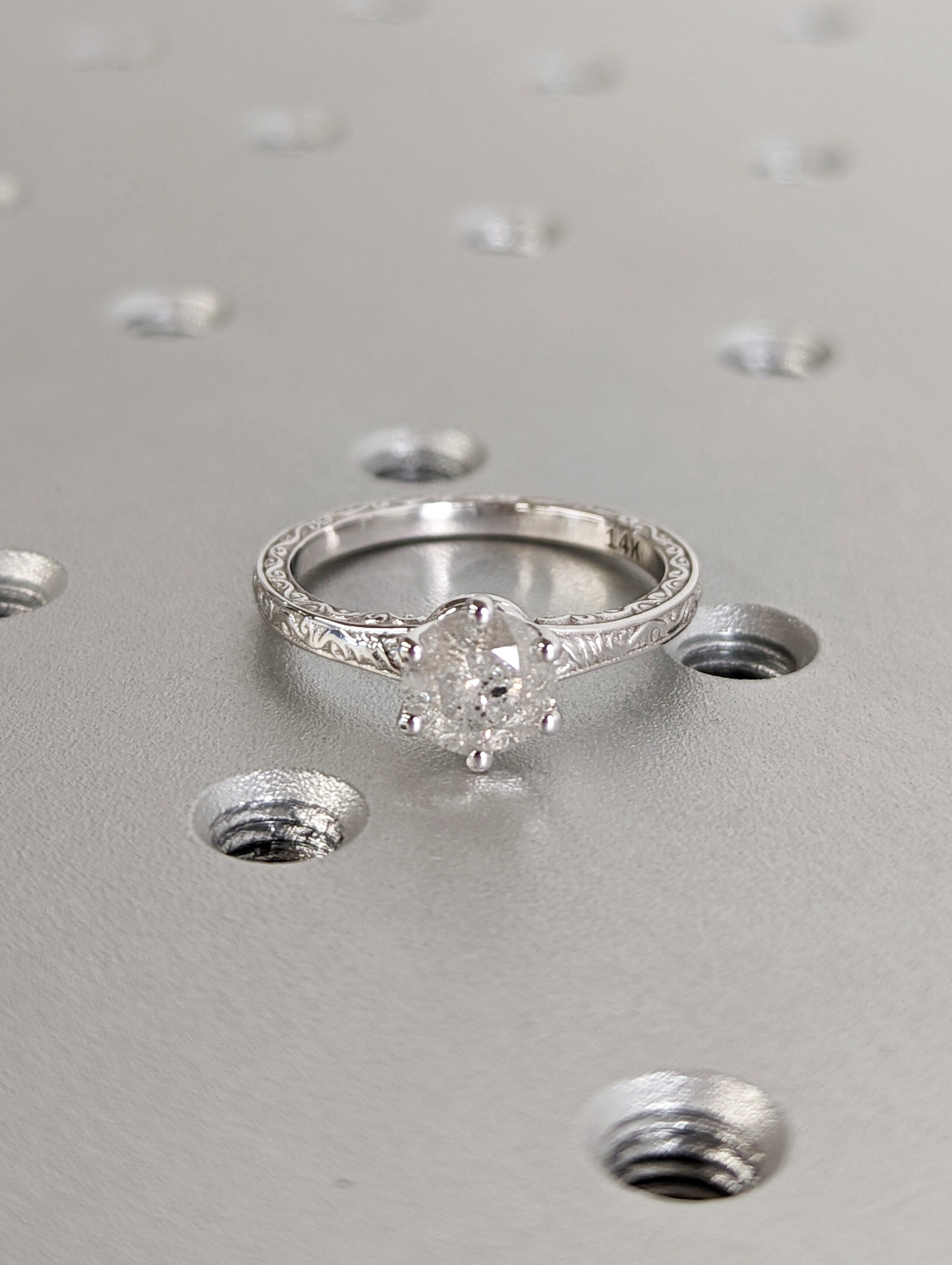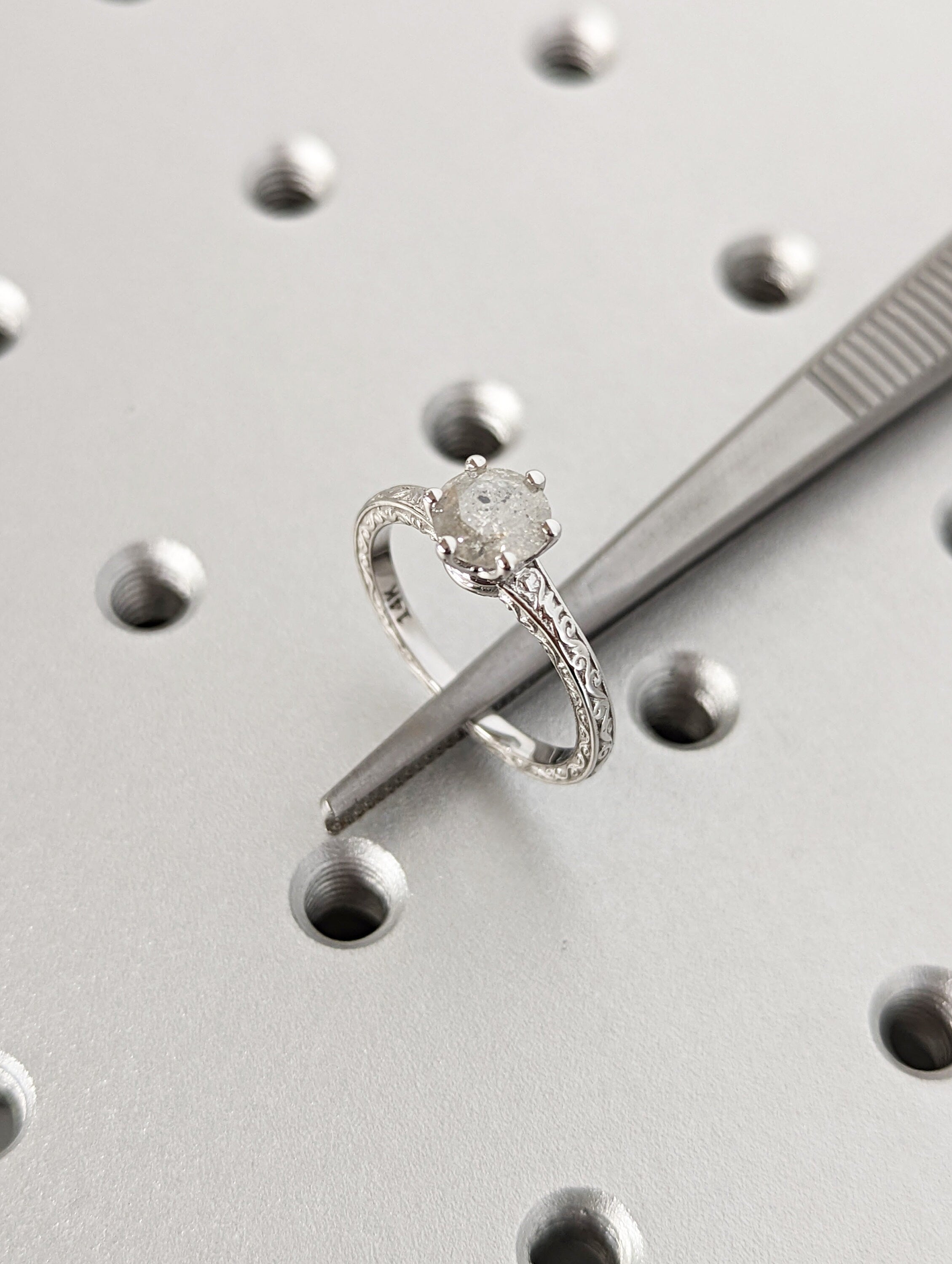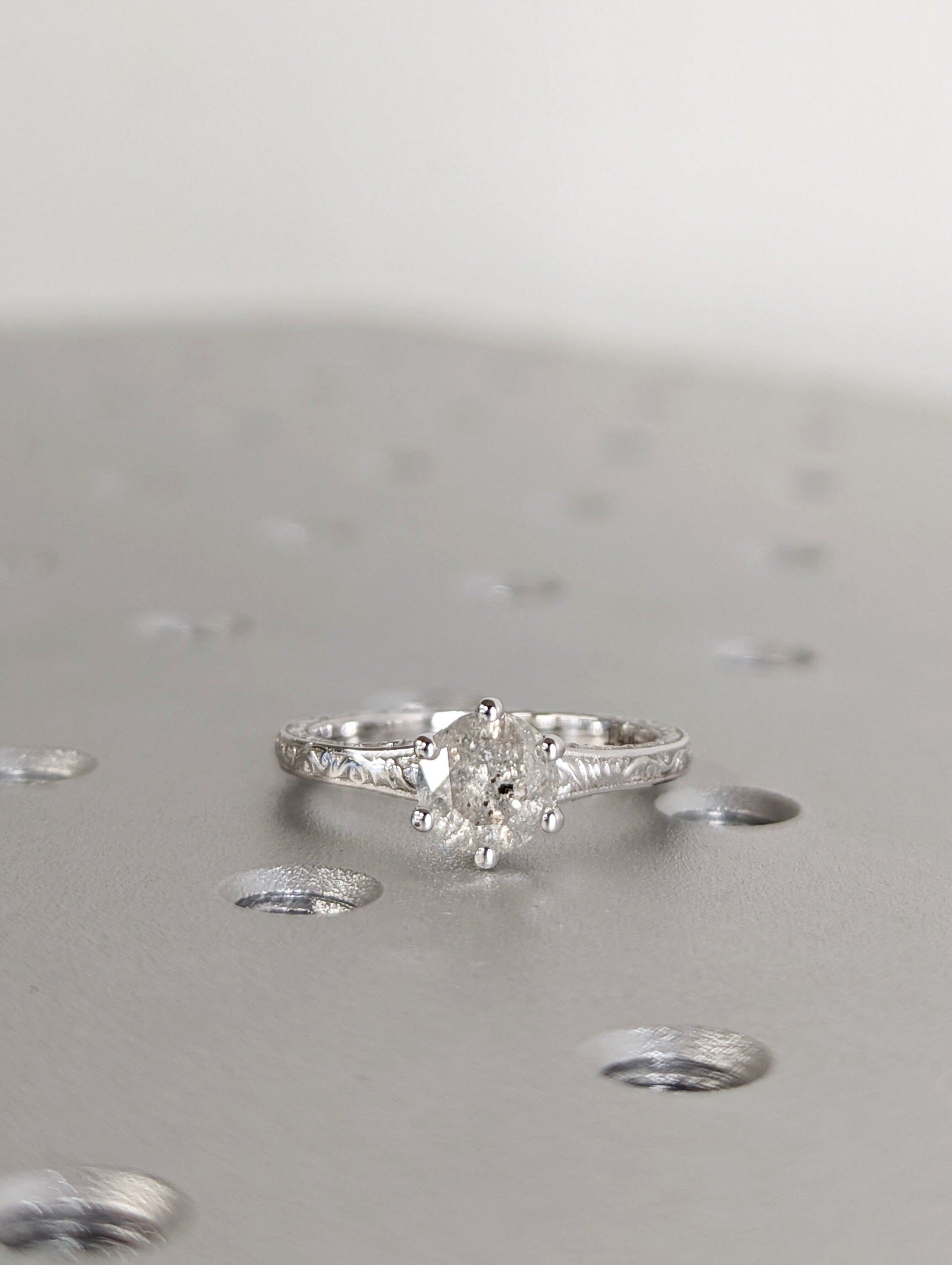 Light Raw Salt and Pepper Diamond Rose /White /Yellow Gold Engagement Ring Art Deco 1920's Inspired Thin Petite Band 14k Unique Ring for Her