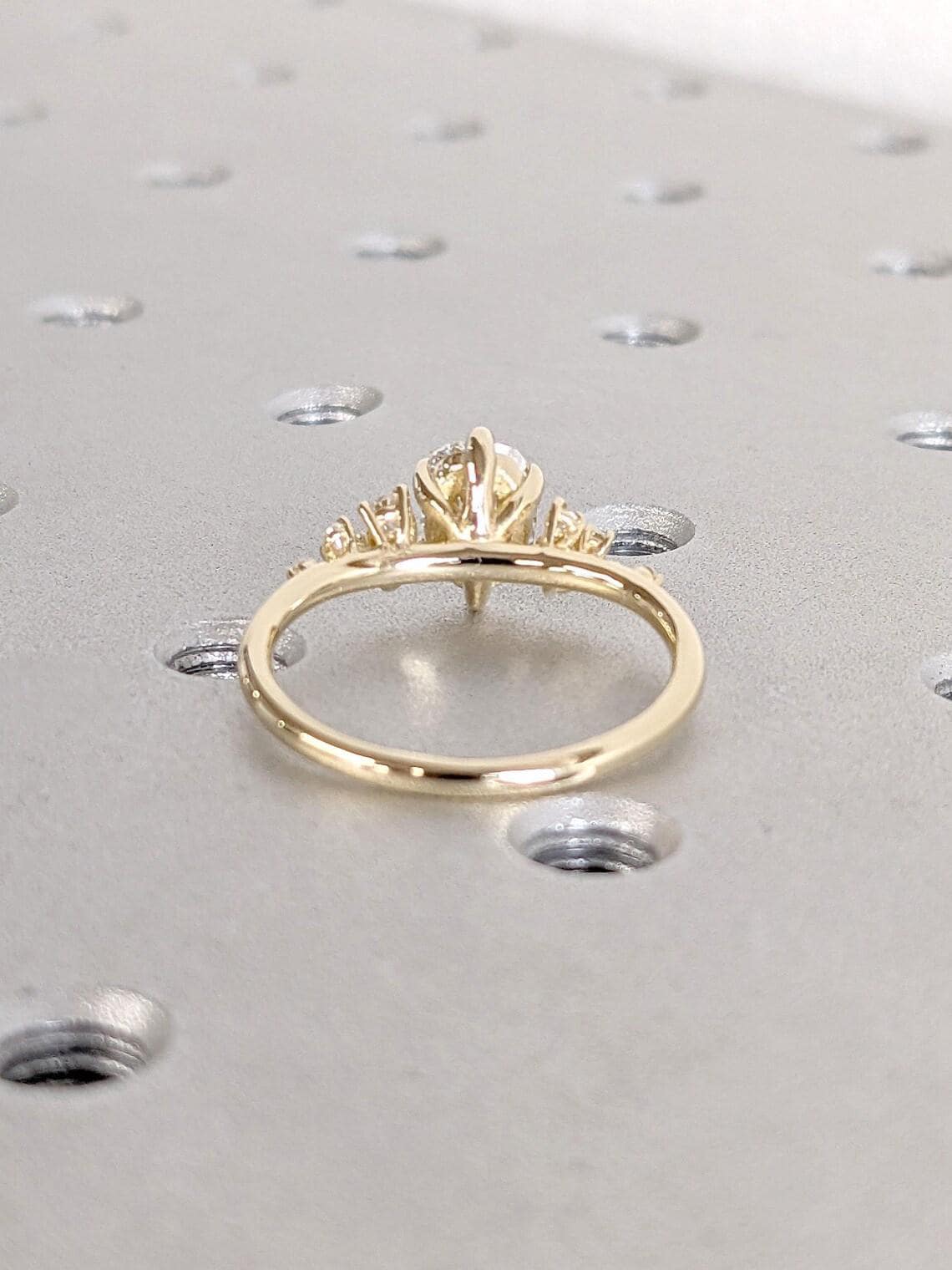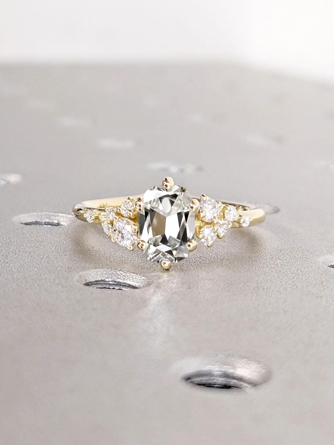 Celebrate the next chapter of your life with our old mine-cut Lab Grown Diamond ring, set with a six prong setting. Embraced by delicate snowdrift Natural Diamonds, Lab Grown Diamonds or Moissanites cluster, sparkling like freshly fallen snow. This finely handcrafted ring is the perfect symbol of your eternal love.