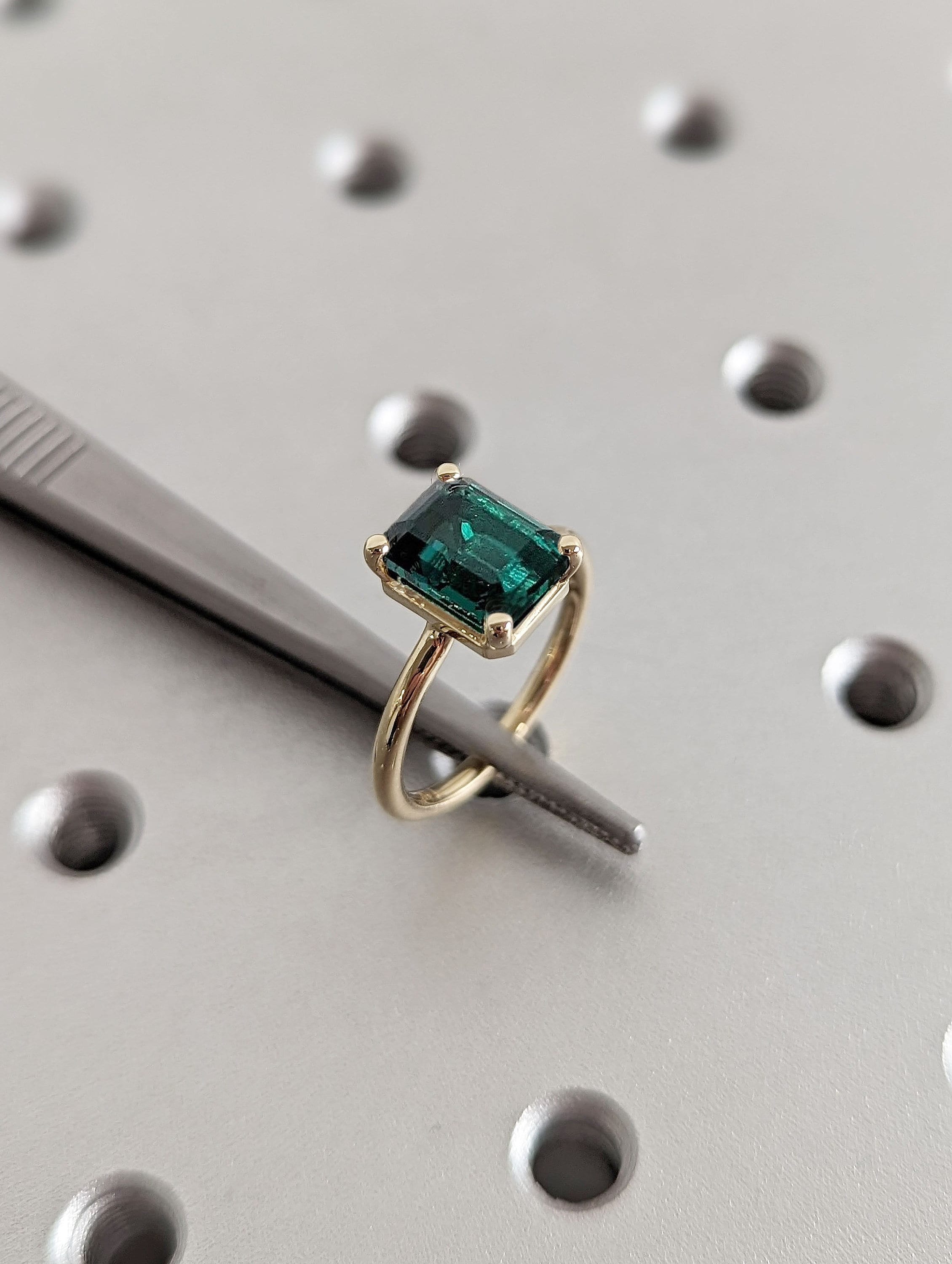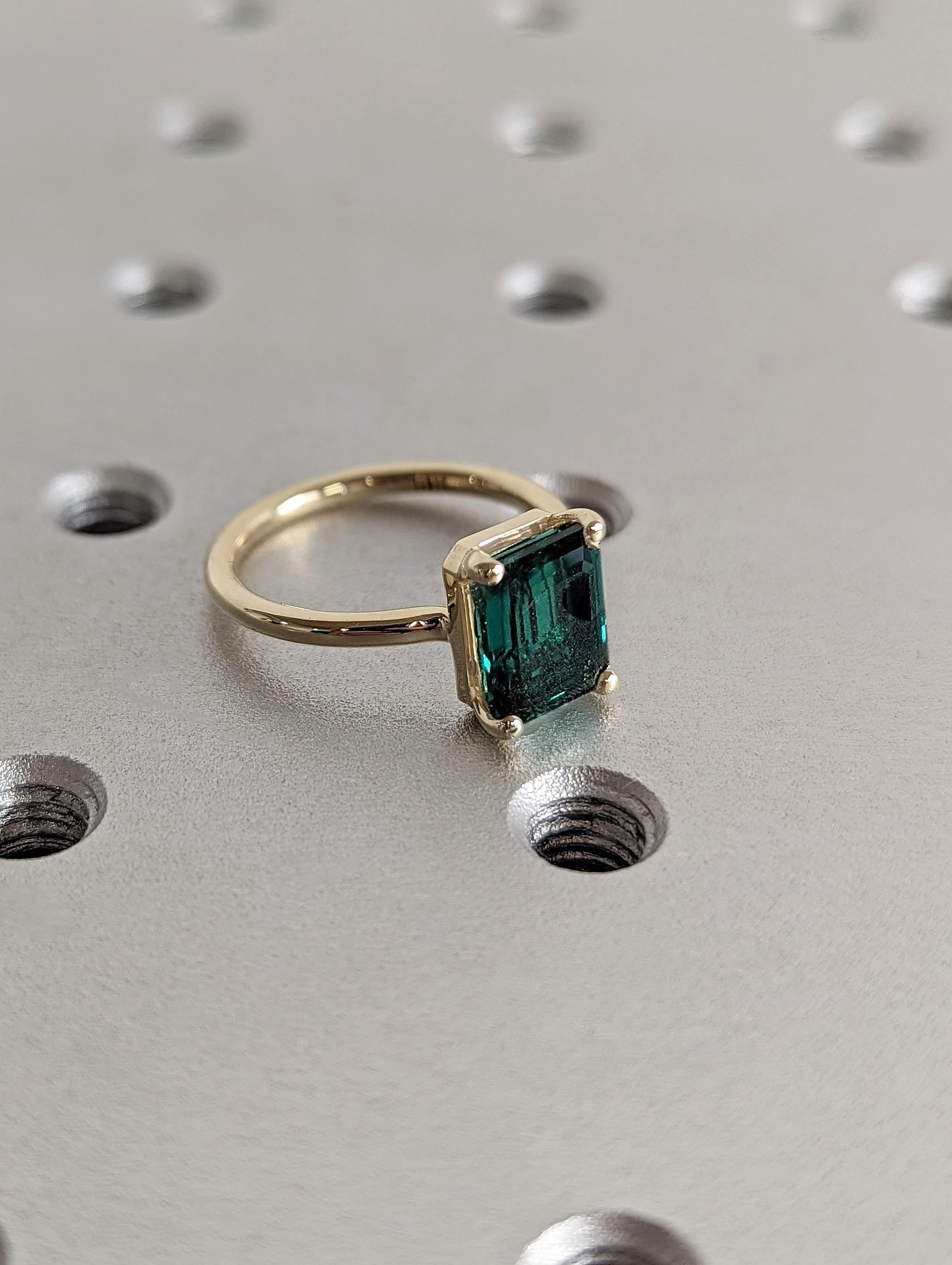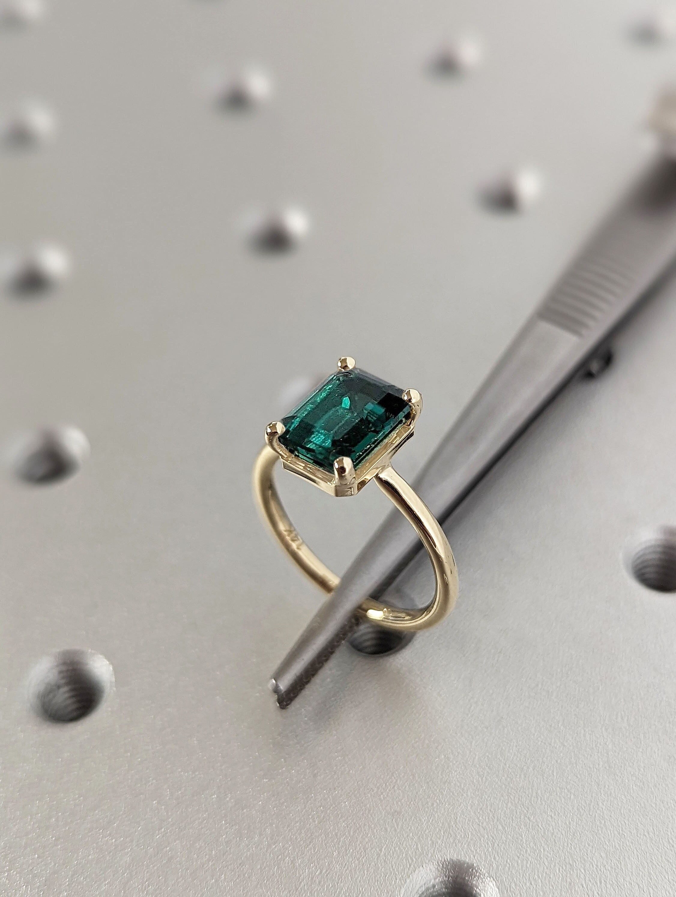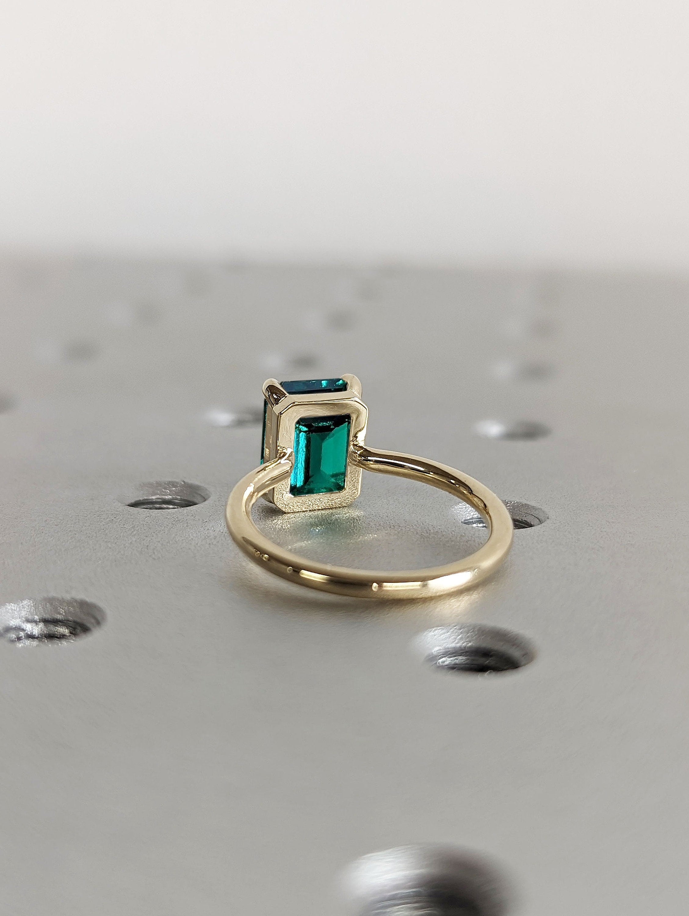 Low Profile Setting Emerald cut Lab Emerald Solitaire Engagement Ring | 14K 18K Yellow Gold Promise Ring for Her | Dainty Women Wedding Band