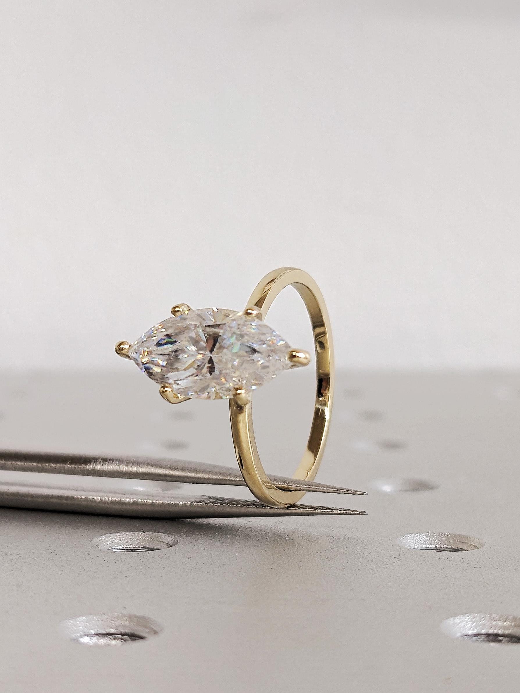 Marquise Cut Lab Grown Diamond Engagement Ring, Custom Solitaire Yellow Gold Wedding Band, Sustainable Diamond Jewelry