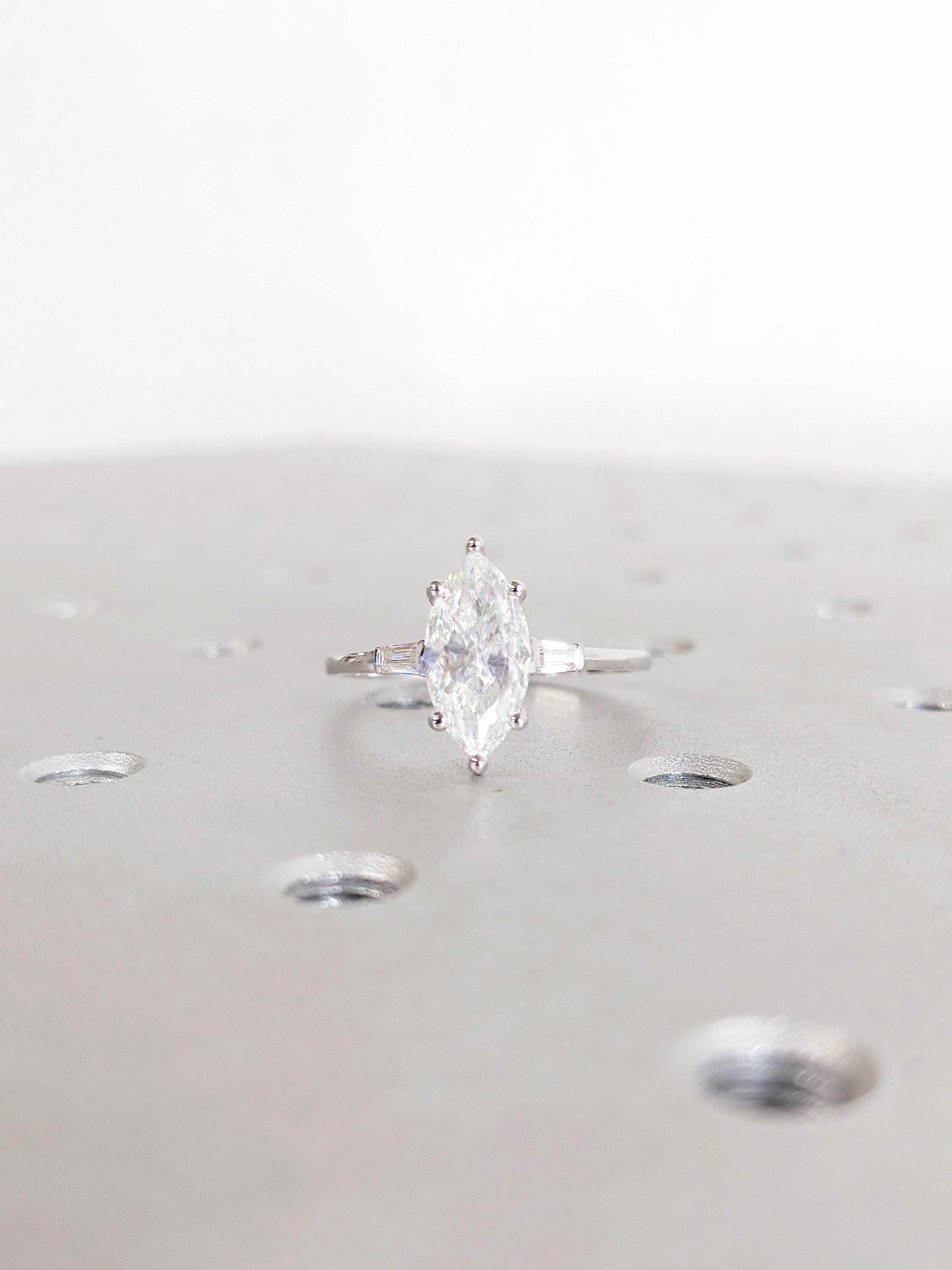 Marquise Cut Moissanite Engagement Ring | 14K White Gold Bridal Ring | Tapered Baguette Moissanite Ring | Personalized Gift | Ring For Her