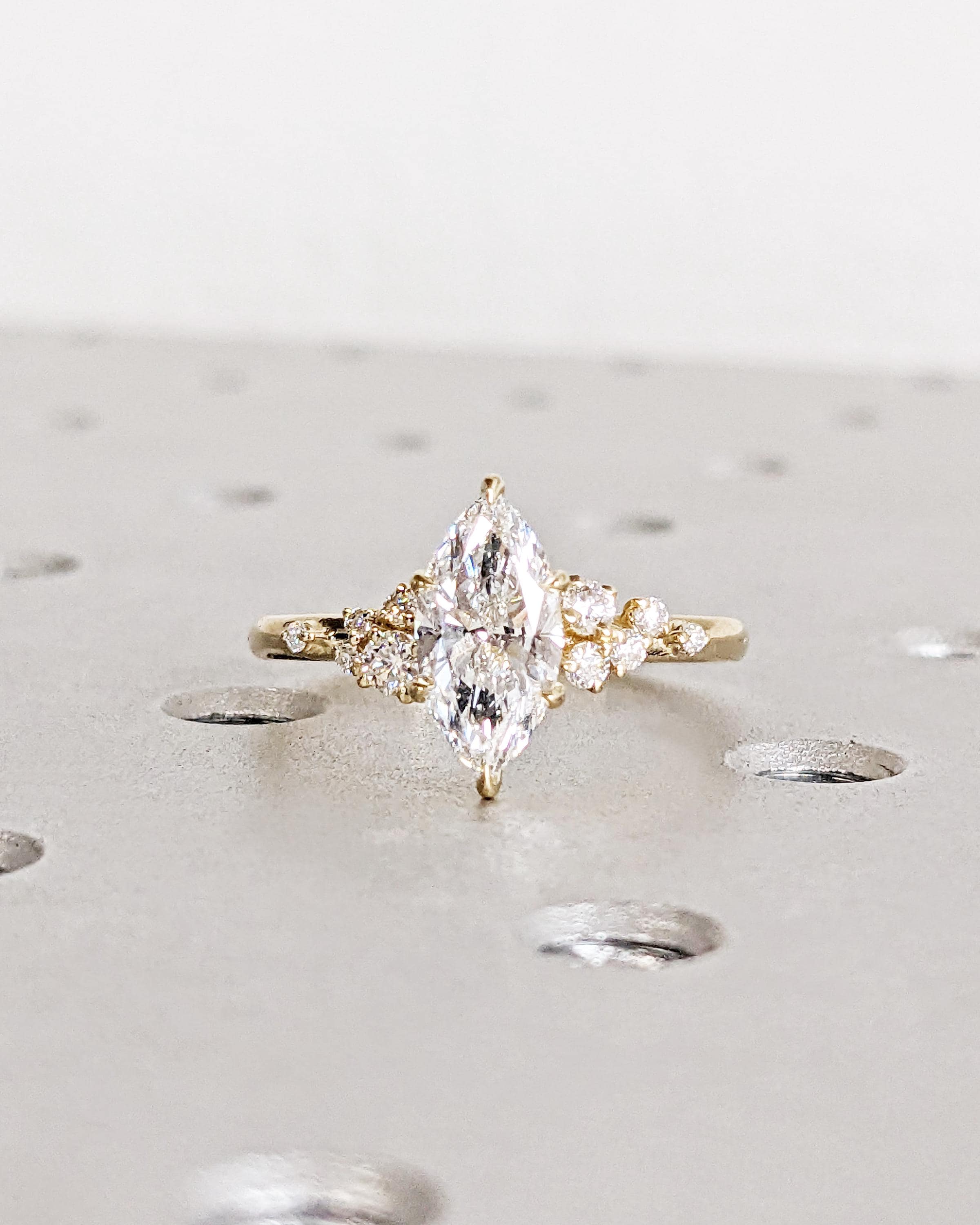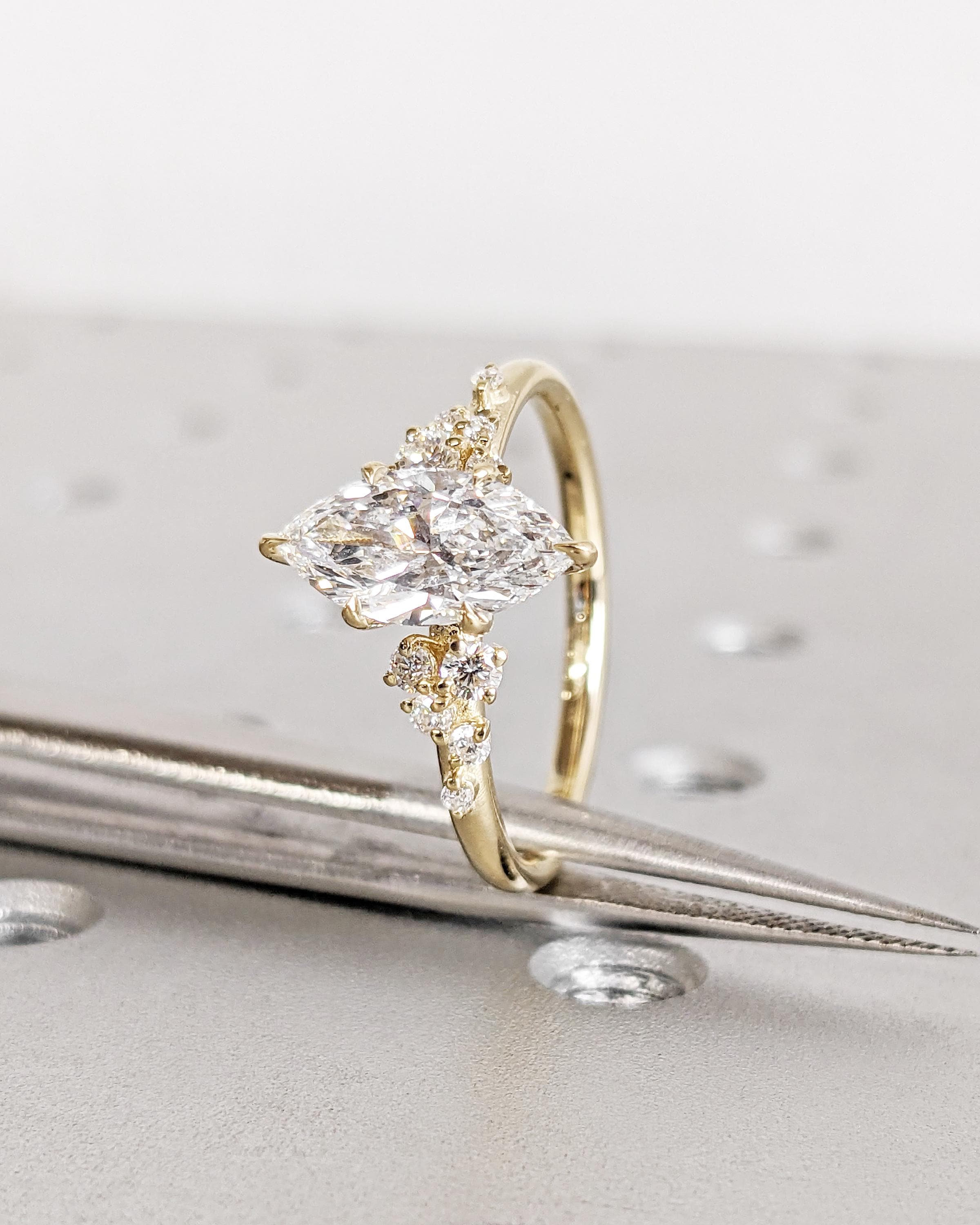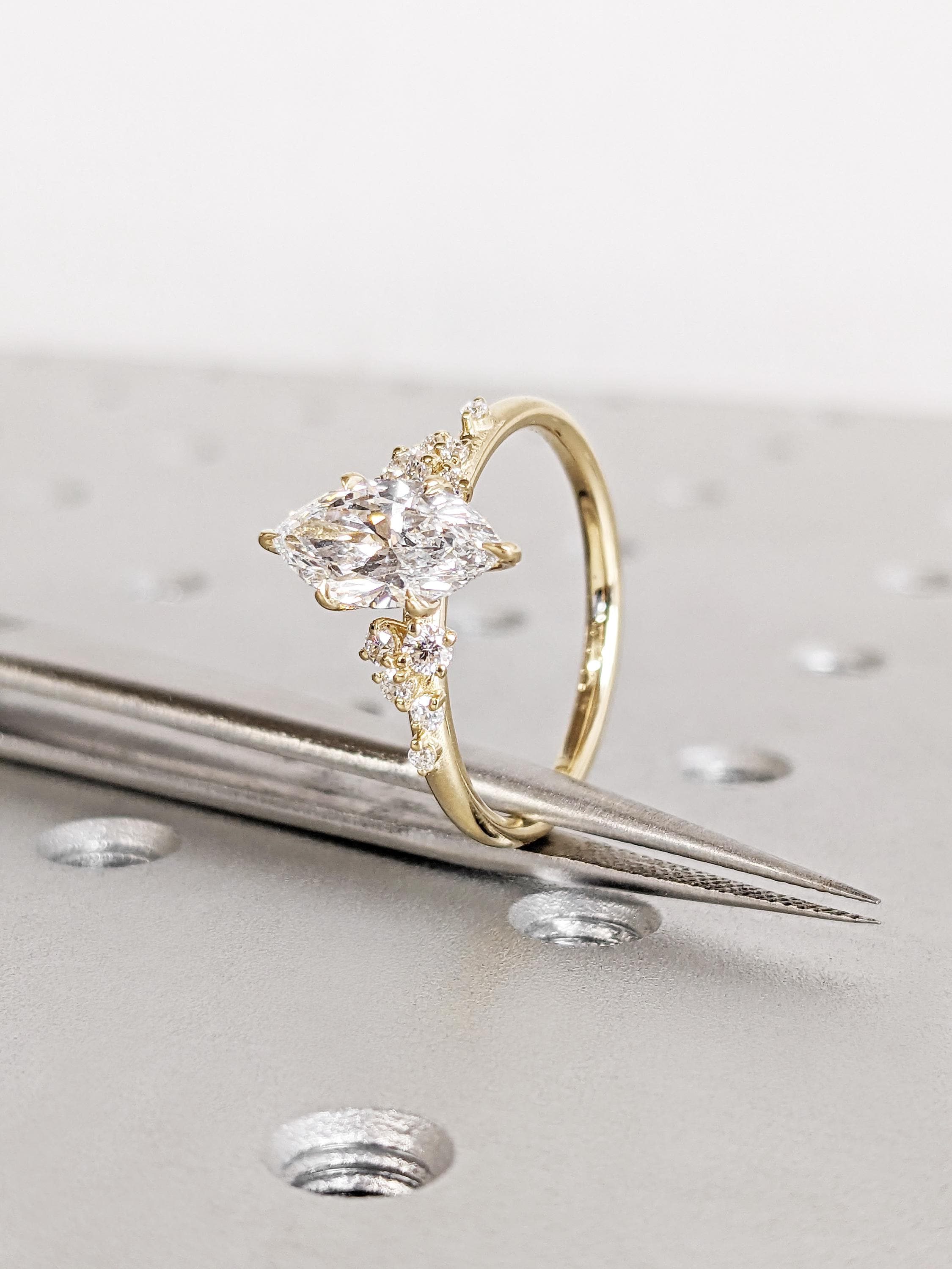 Marquise Cut Moissanite Ring, Art Deco Marquise Engagement Ring, Unique Promise Ring, Snowdrift Diamond Cluster Ring, 14K Dainty Bridal Ring