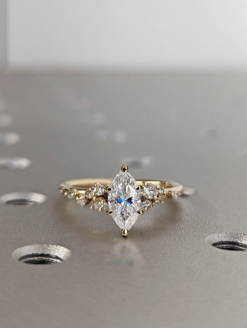 Marquise Cut Moissanite Ring Vintage Moissanite Engagement Ring Solid Gold Unique Snowdrift 6 Prongs Engagement Ring Diamond Wedding Ring