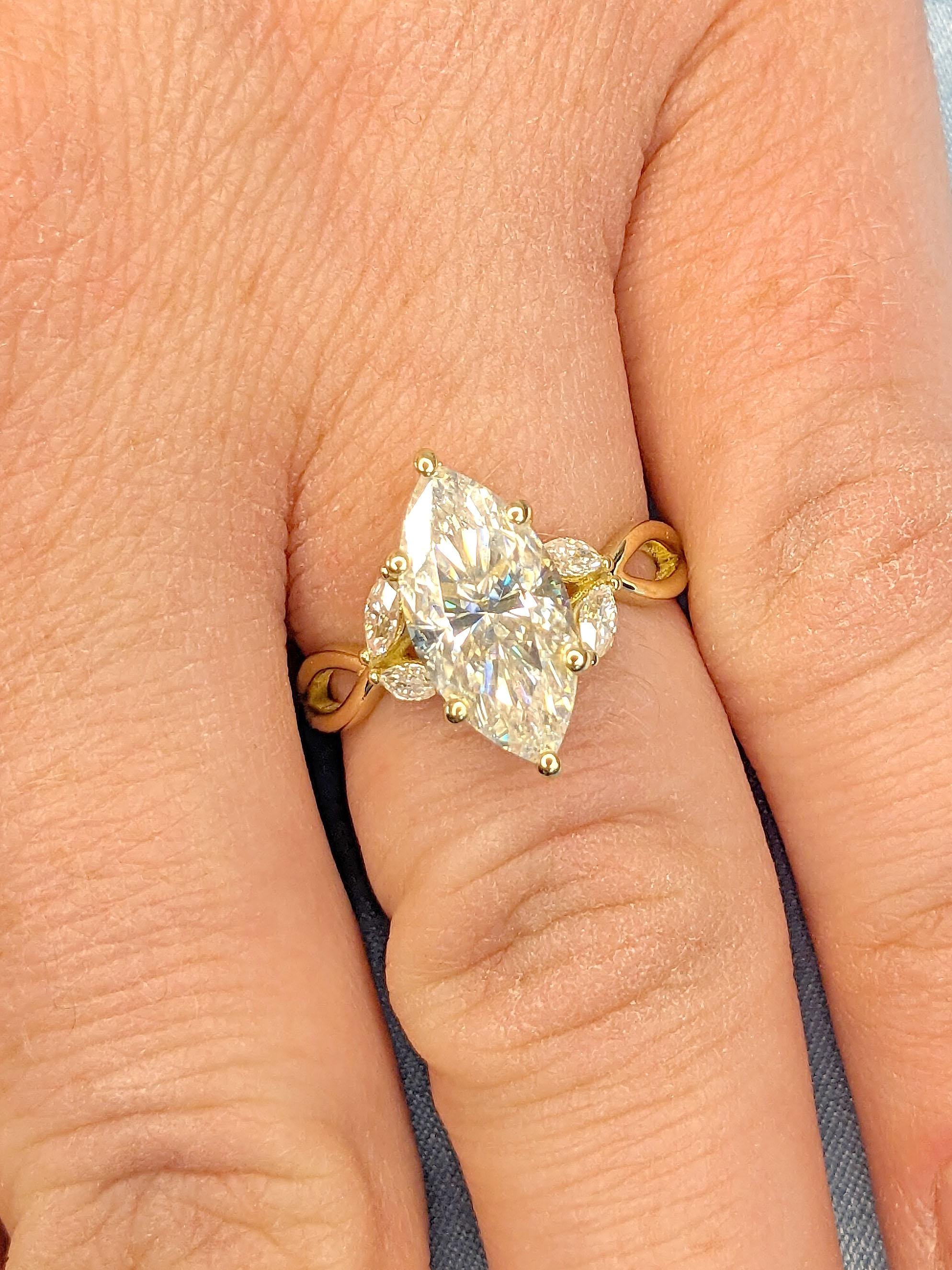 Marquise Engagement Rings for Women | Five Stone Moissanite Ring | 1ct, 2 carat Moissanite Real Gold Ring Trellis Setting Ring, Promise Ring