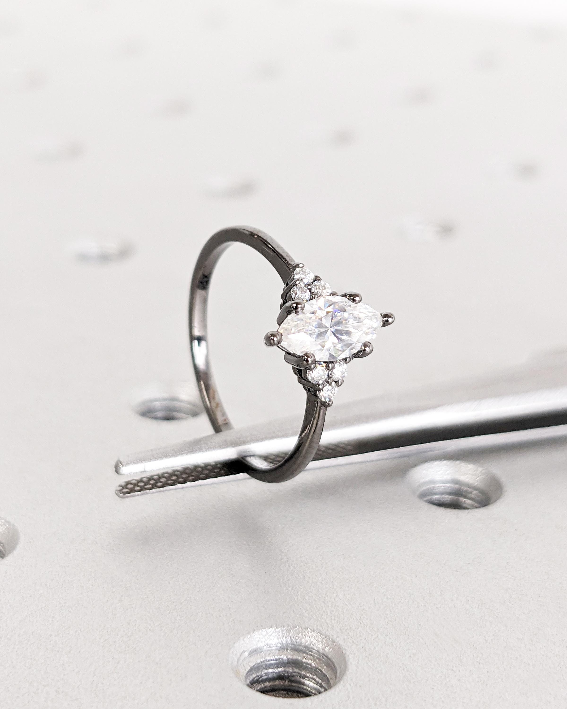 Marquise Lab Diamond Engagement Ring | 14K Black Gold Vintage Marquise Solitaire Ring | Classic Promise Ring | Dainty Bridal Ring for Women
