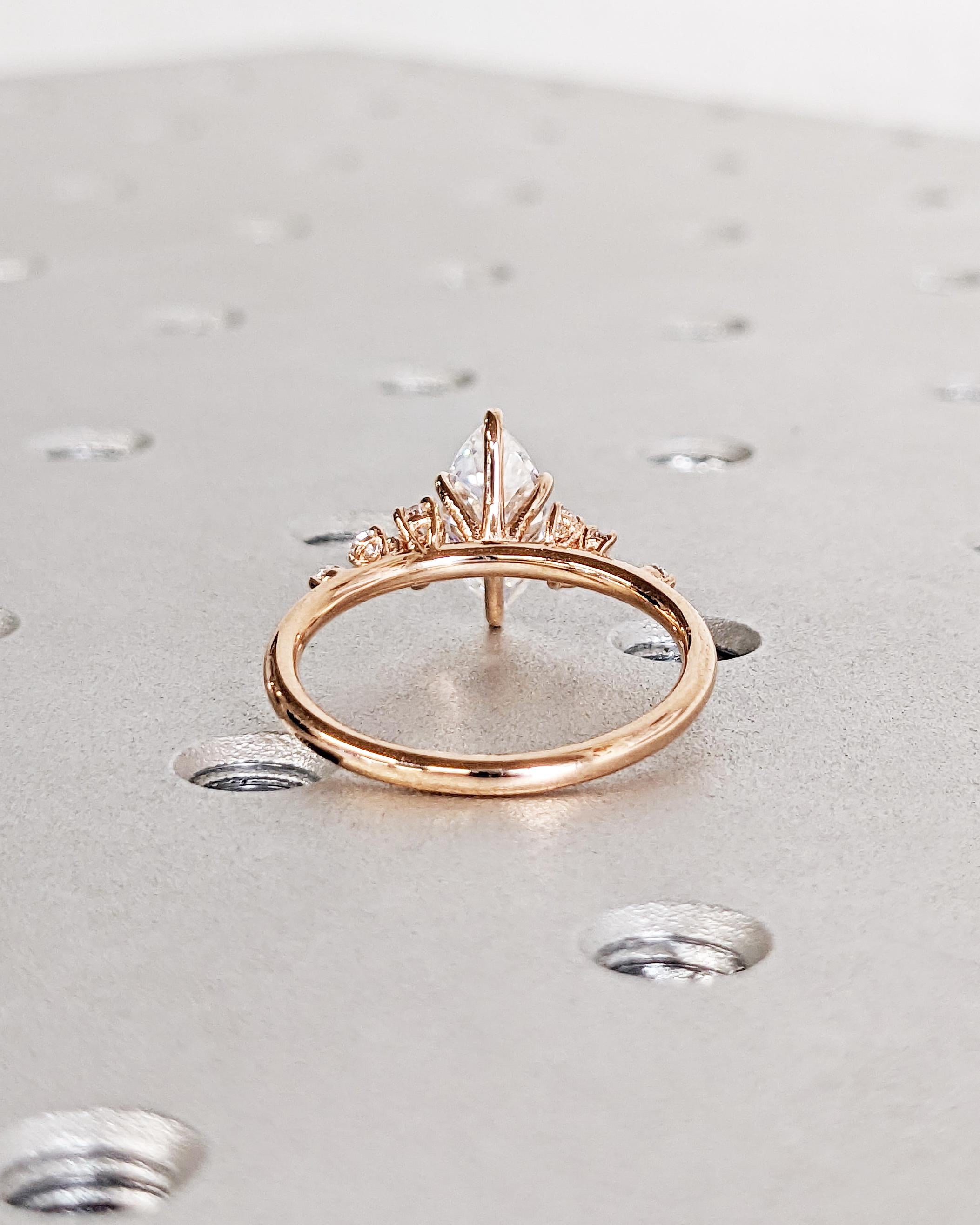 Celebrate the next chapter of your life with our marquise cut Lab Cultured Diamond engagement ring, set with a thin setting. Embraced by delicate snowdrift Diamonds or Moissanites cluster, sparkling like freshly fallen snow. This finely handcrafted ring is the perfect symbol of your forever love.