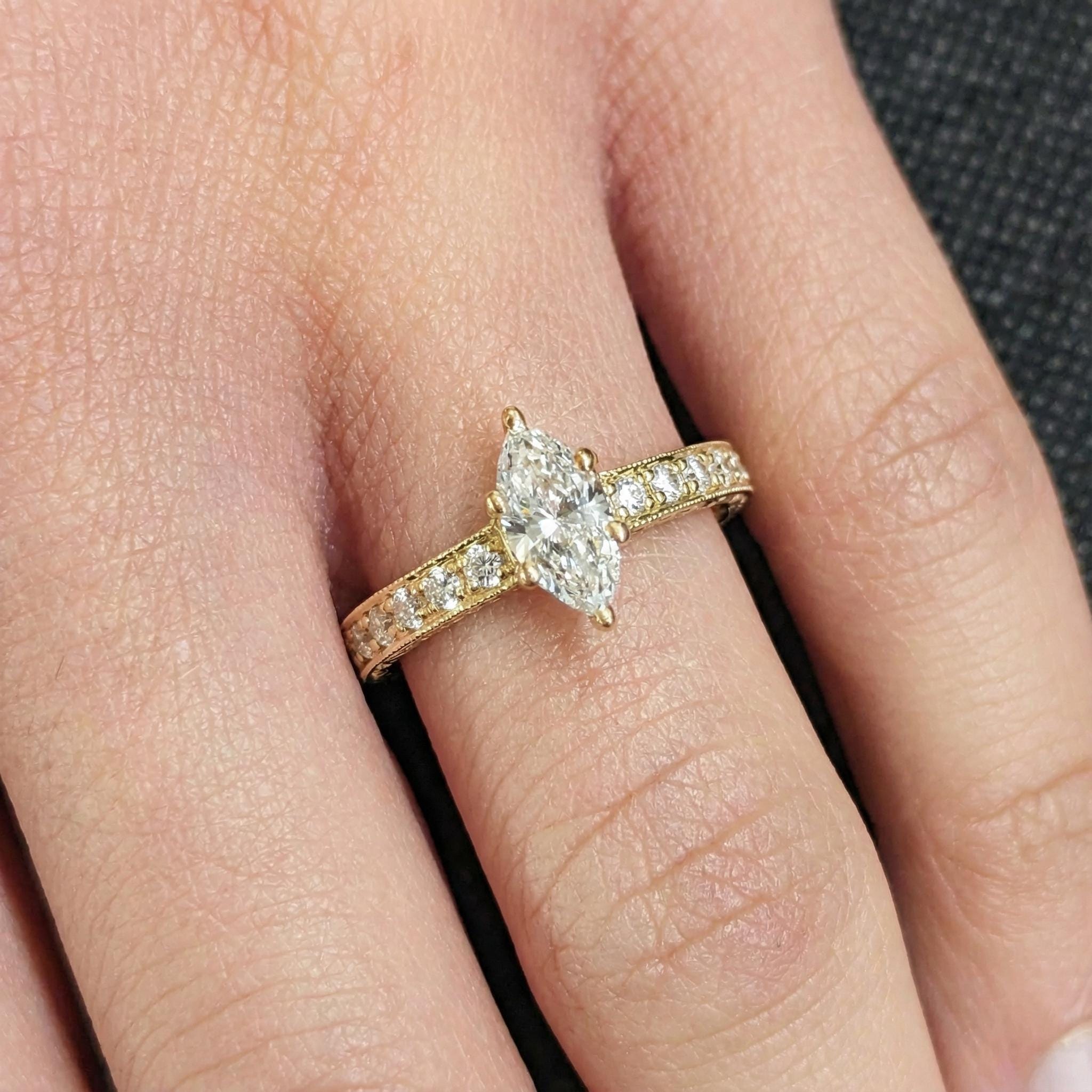 Marquise Ring, Vintage Lab Grown Diamond Engagement Ring, Solid Gold Unique Classic Paved Diamond Filigree Hand Carved Ring, Antique Style