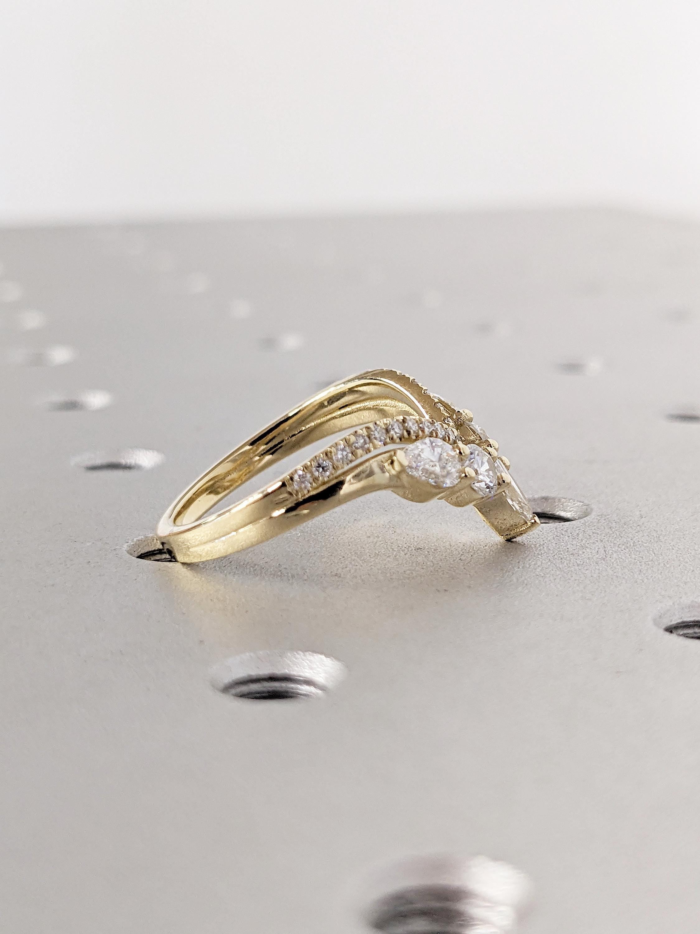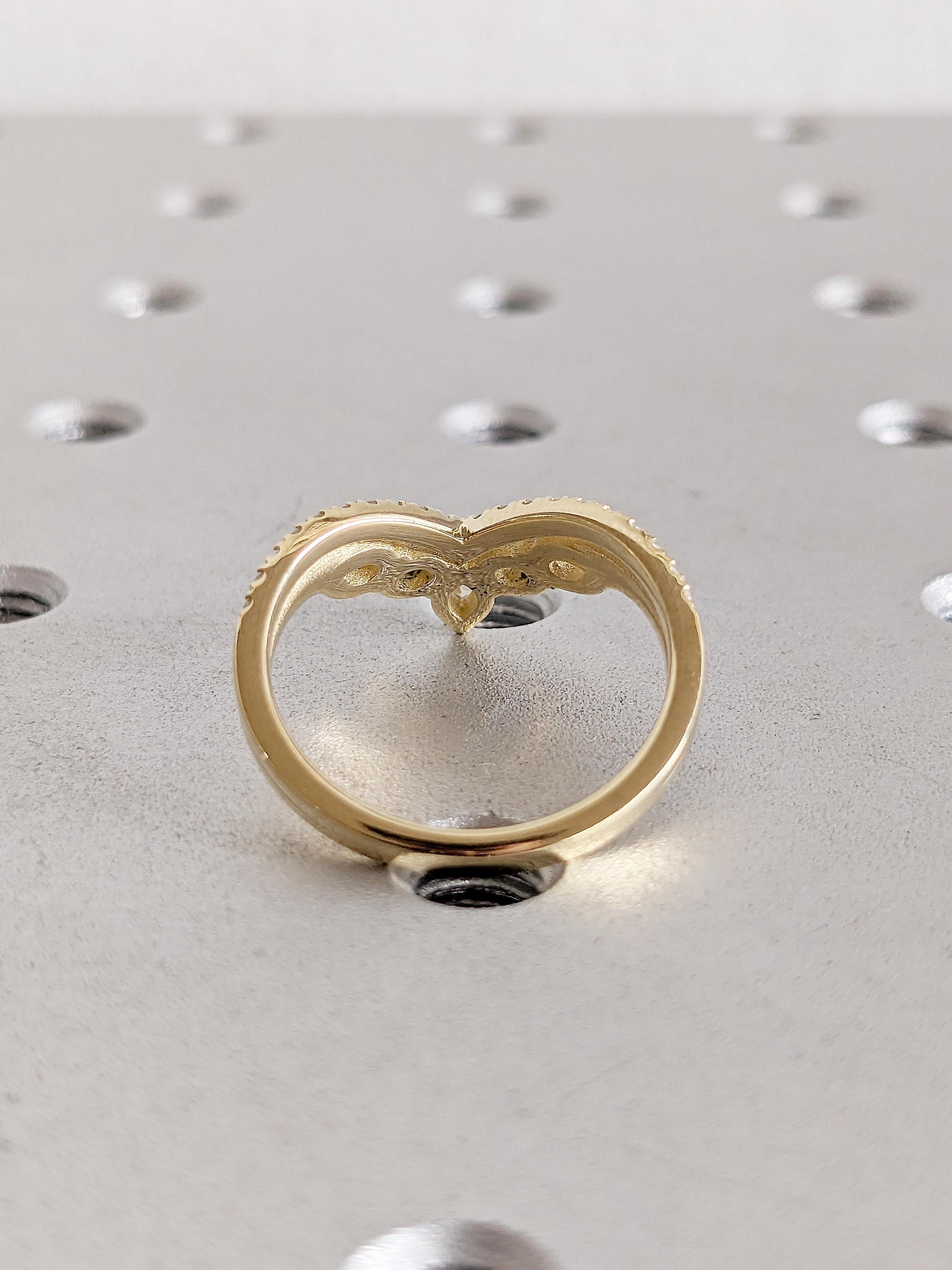 Marquise, Round, Pear Cut Diamond Cluster Ring, Chevron Wedding Band, Moissanite Stackable Ring, 18k/14k Yellow Gold Matching Ring for Women