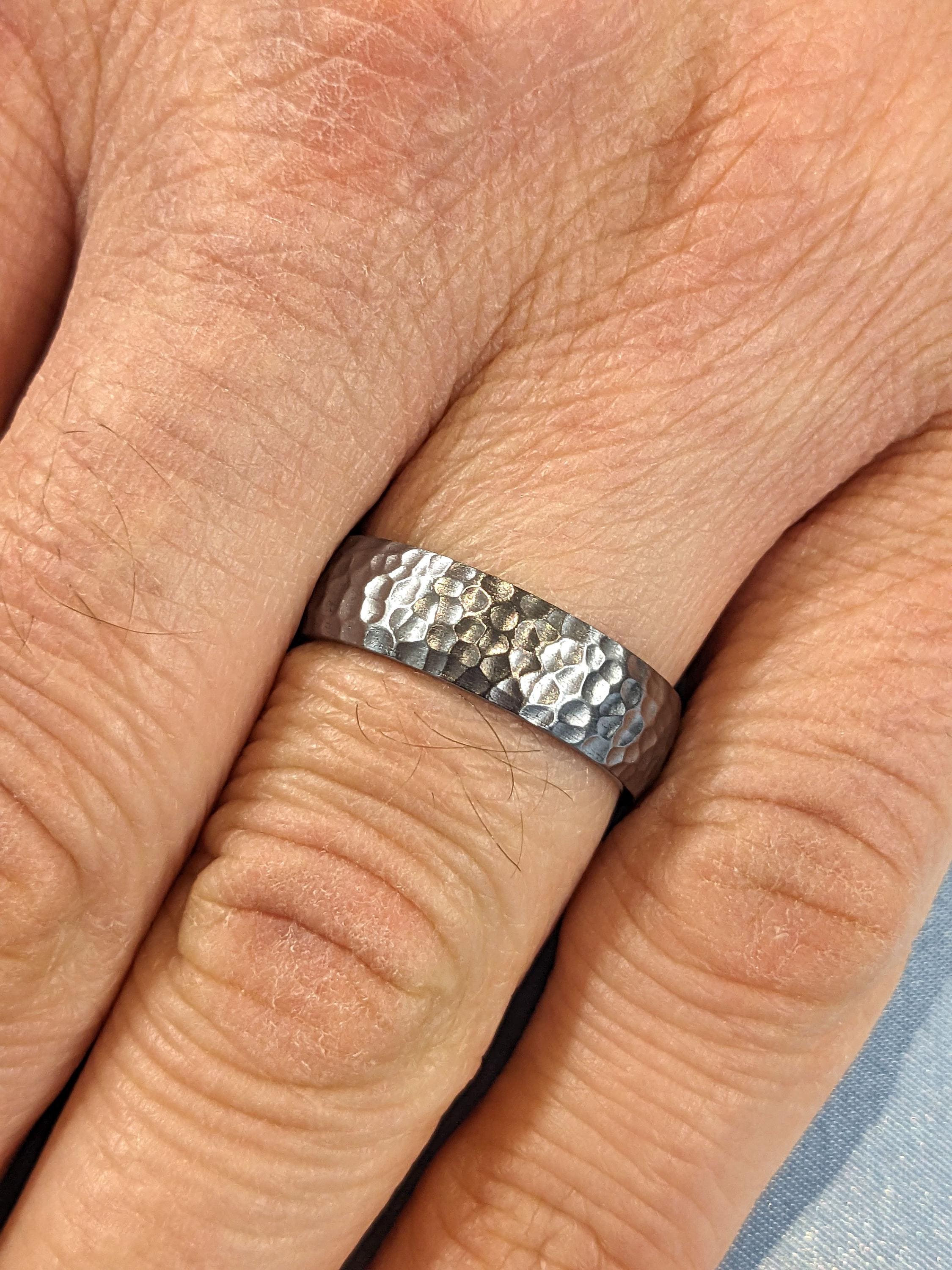 Mens Tantalum Ring | Mens Minimalist Ring | 6mm Comfort Fit Wedding Band | Mens Hammered Ring | Black Mens Ring | Unique Mens Wedding Ring