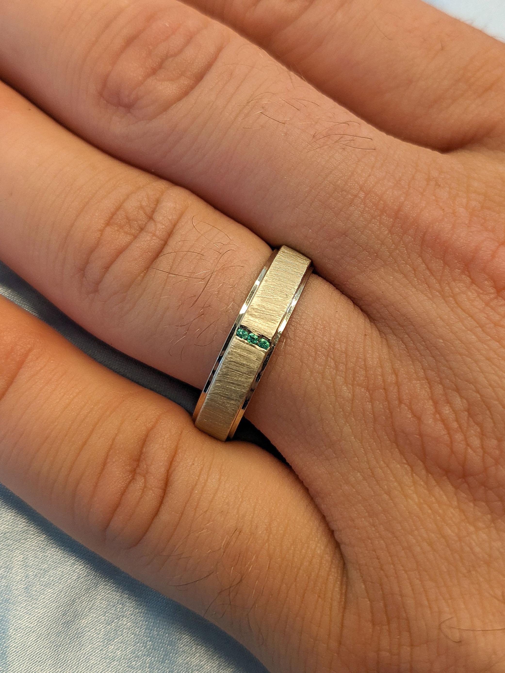Mens Wedding Band | Brushed White Gold Emerald Ring: 5mm Band