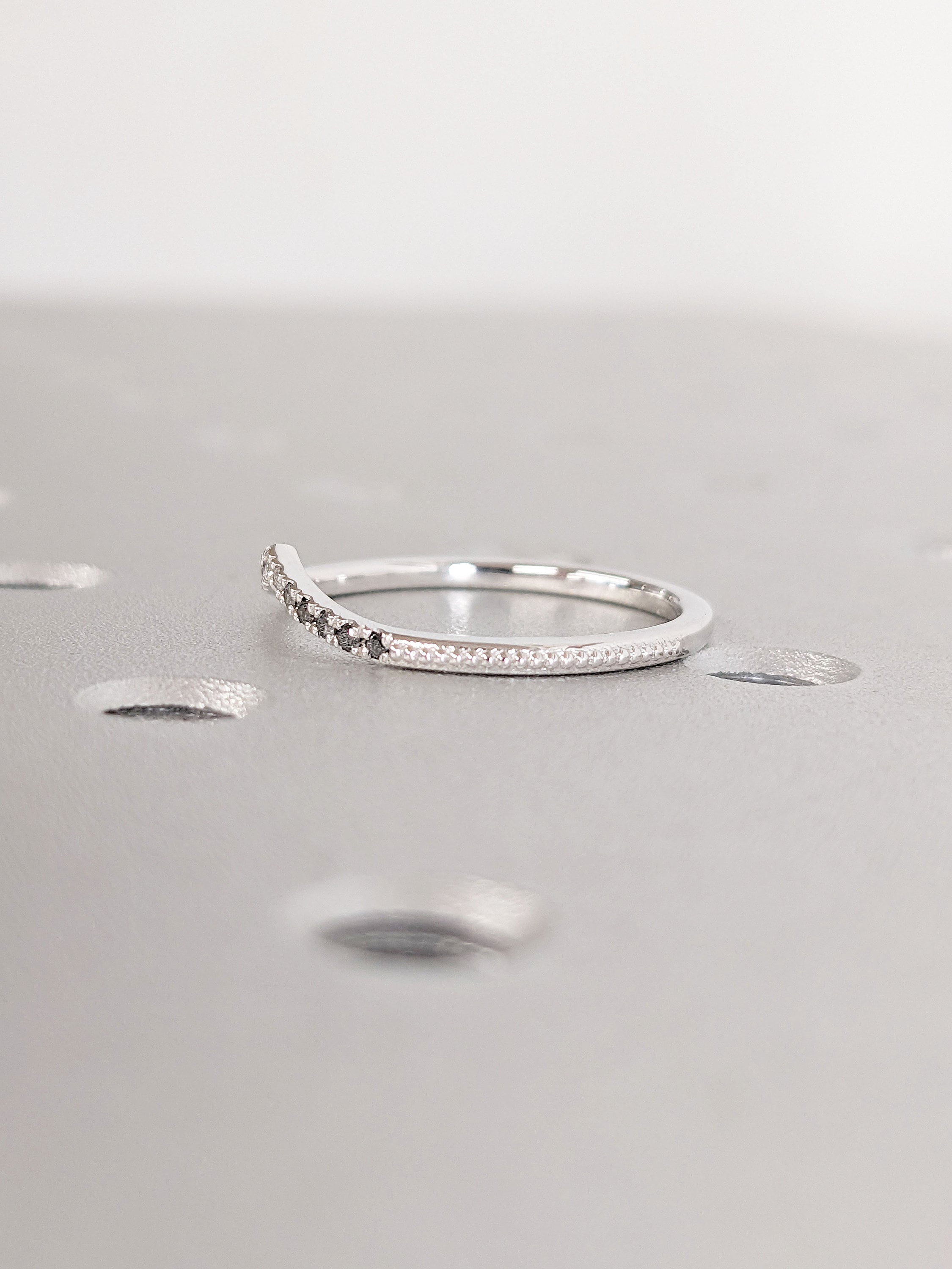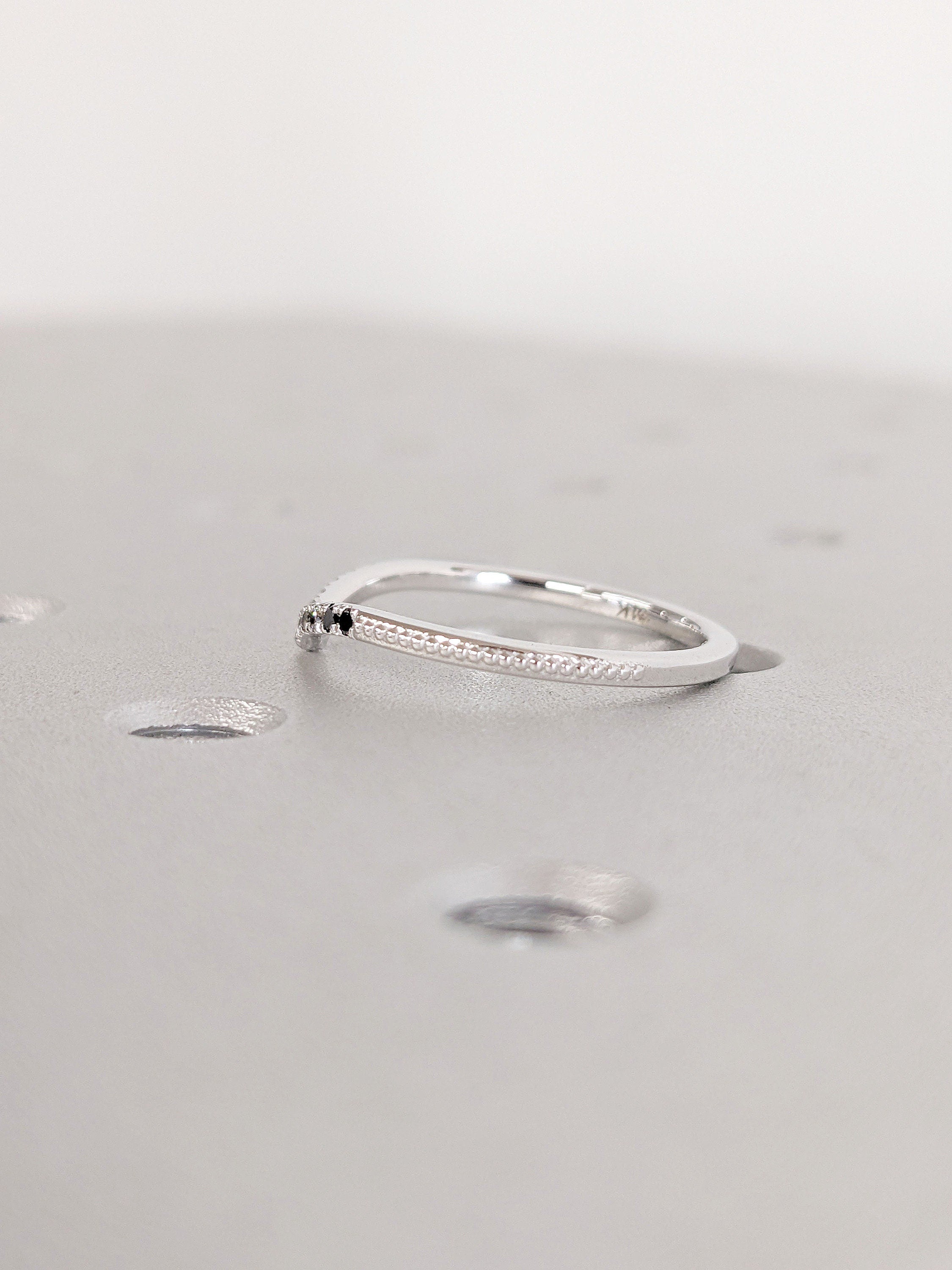 Milgrain Curved Thin Wedding Ring | Minimalist White Gold Diamond Eternity Band