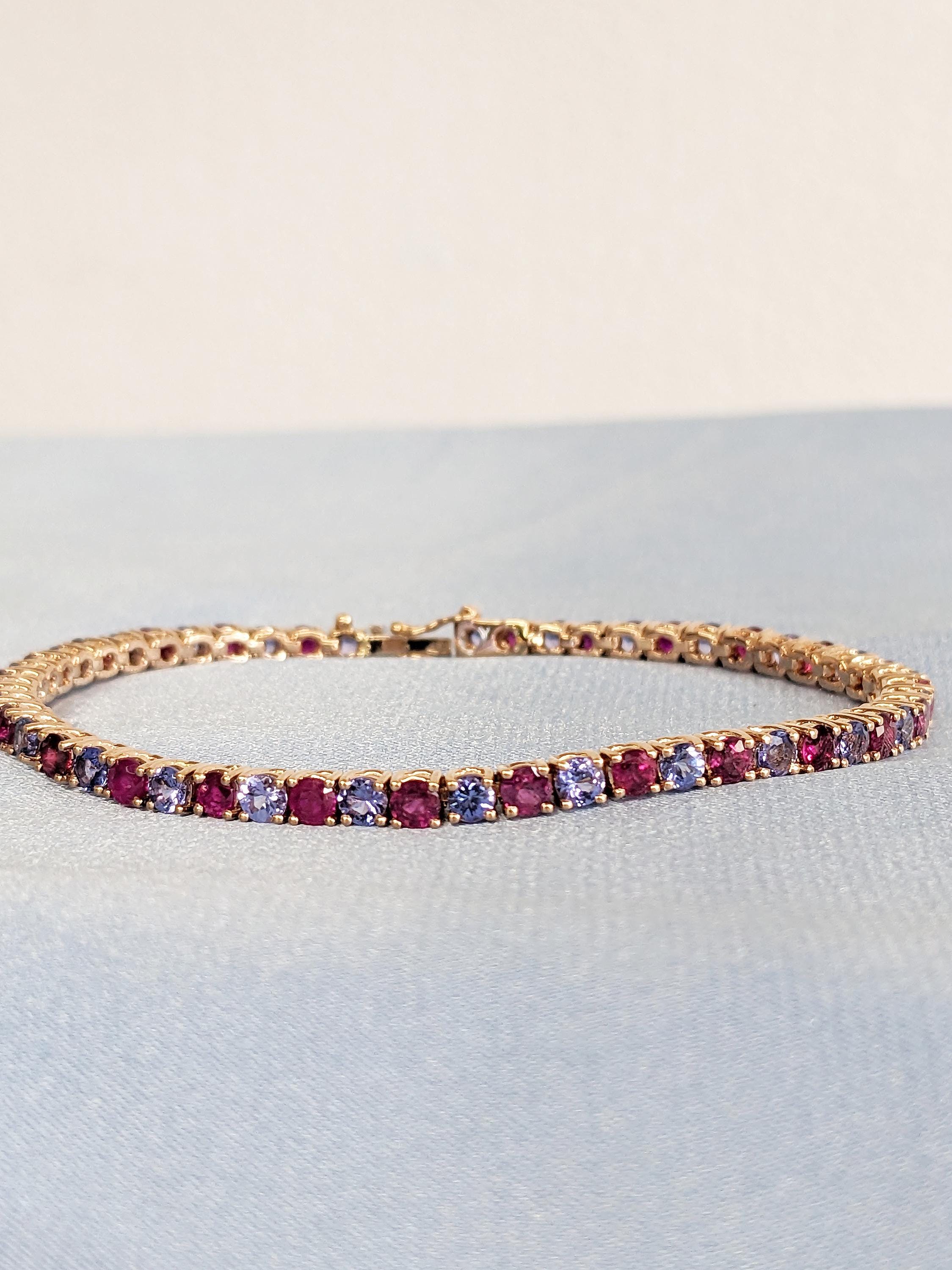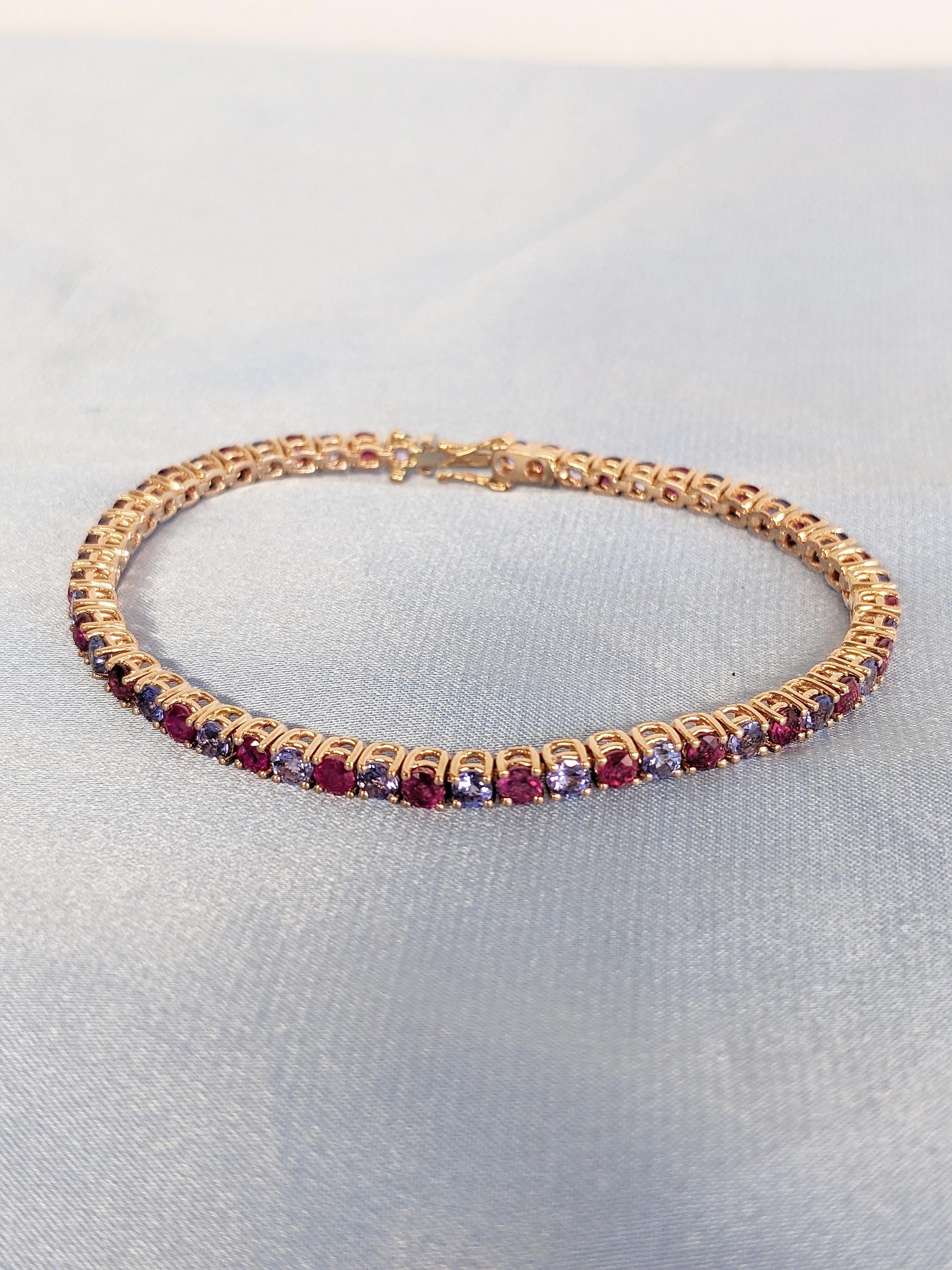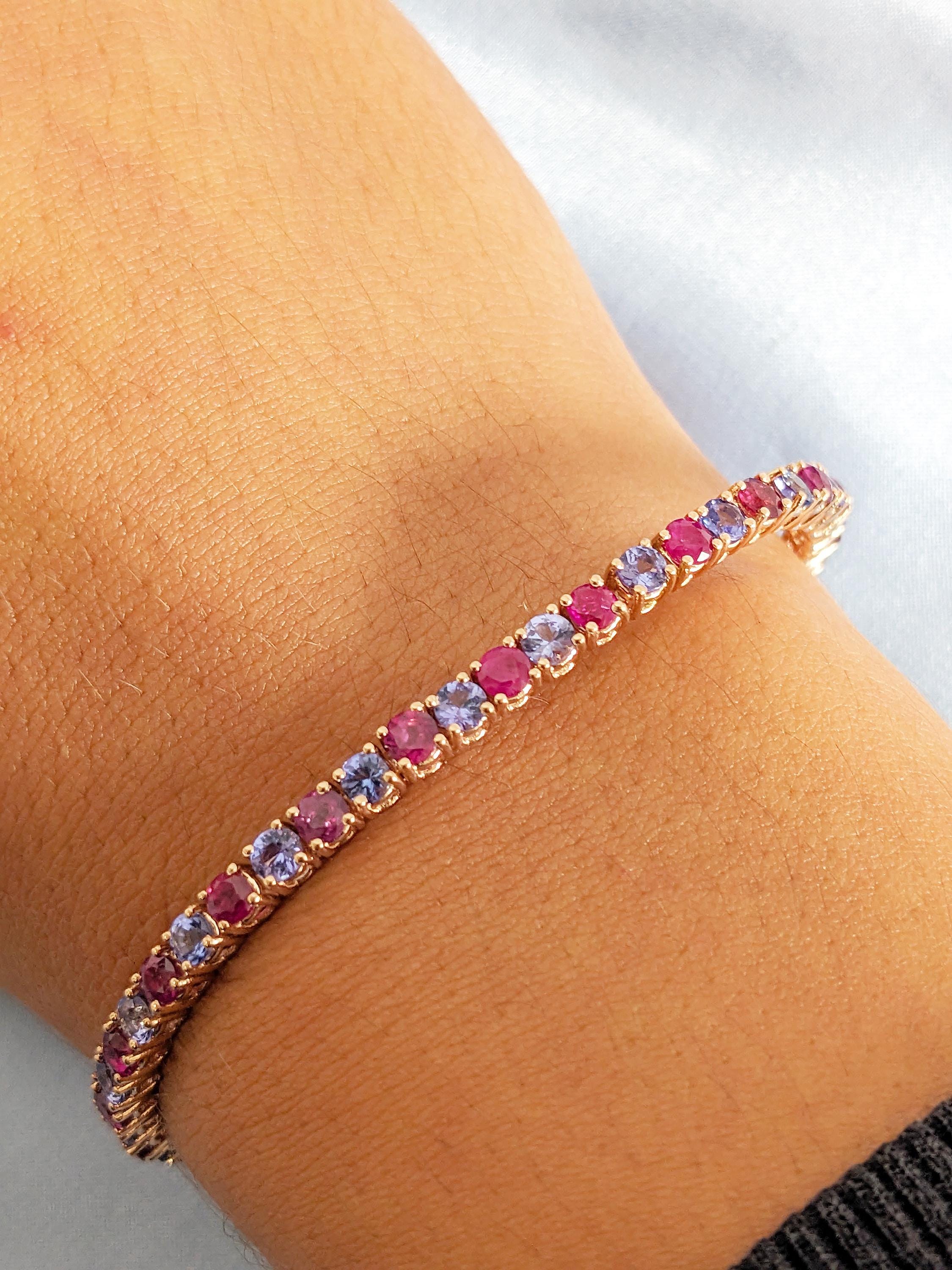 Minimalist 14k Rose Gold Tennis Bracelet, Multicolor 3mm Natural Ruby, Tanzanite Gemstone Bracelet for Women, Vintage Red Ruby Jewelry