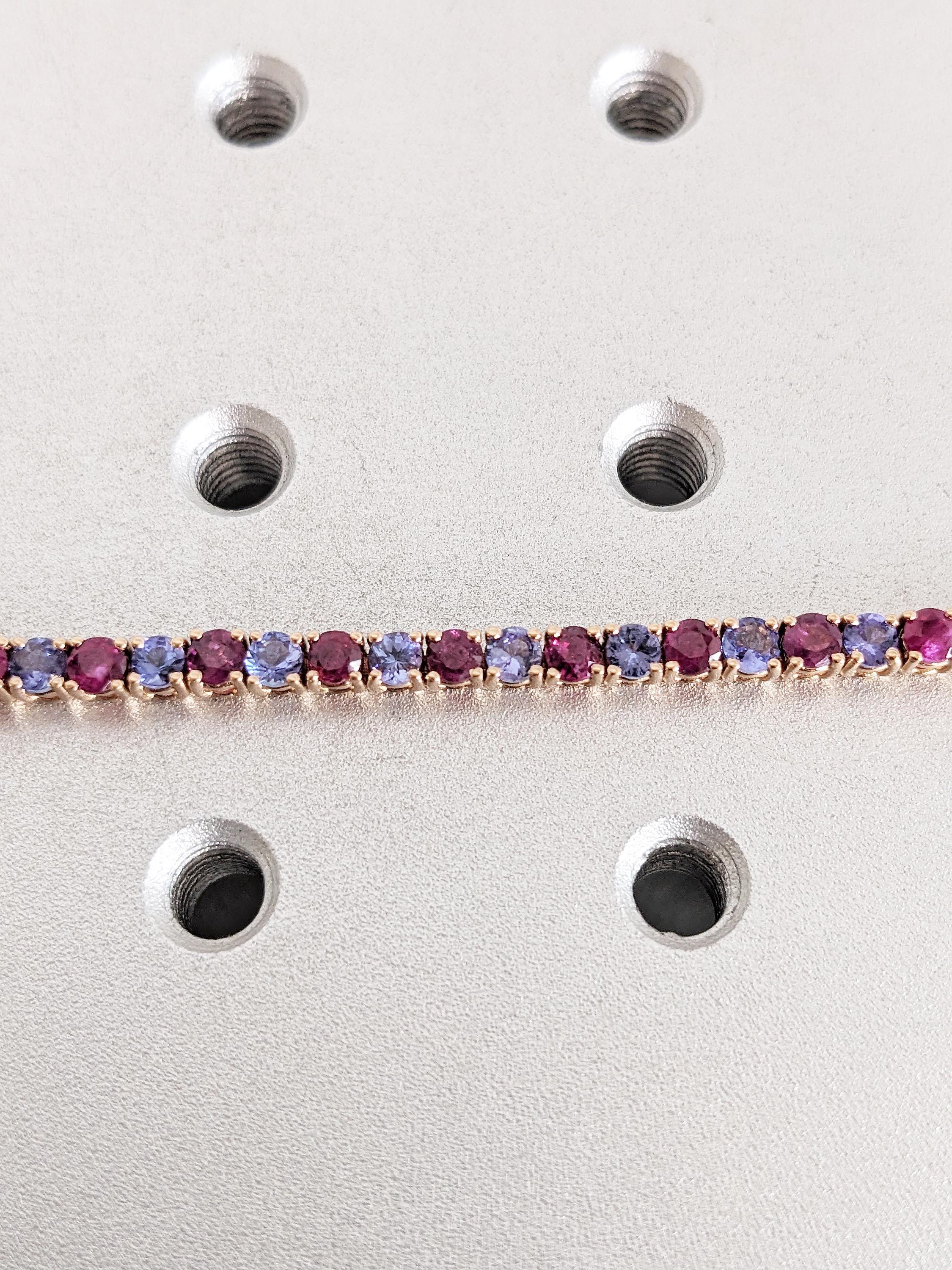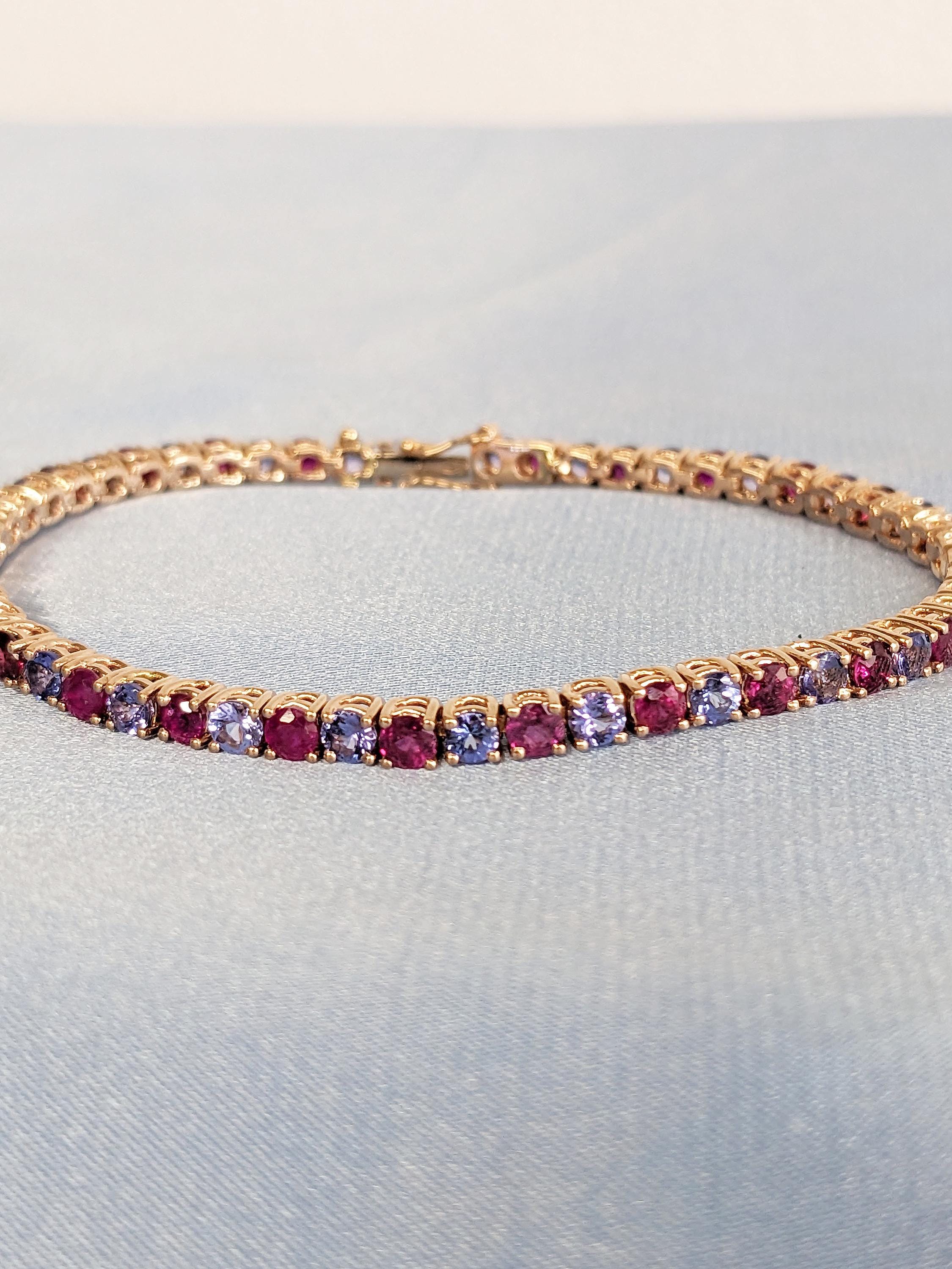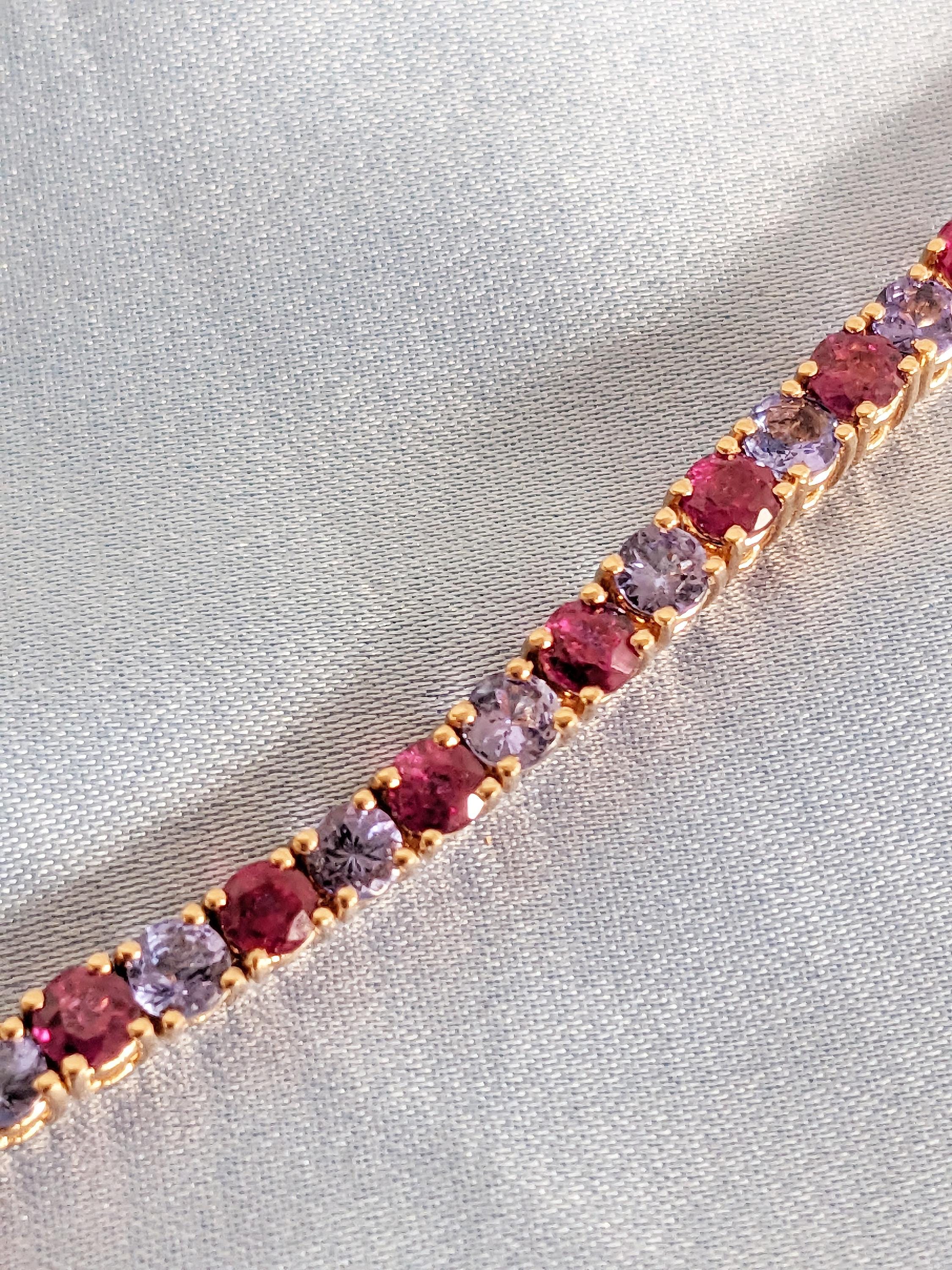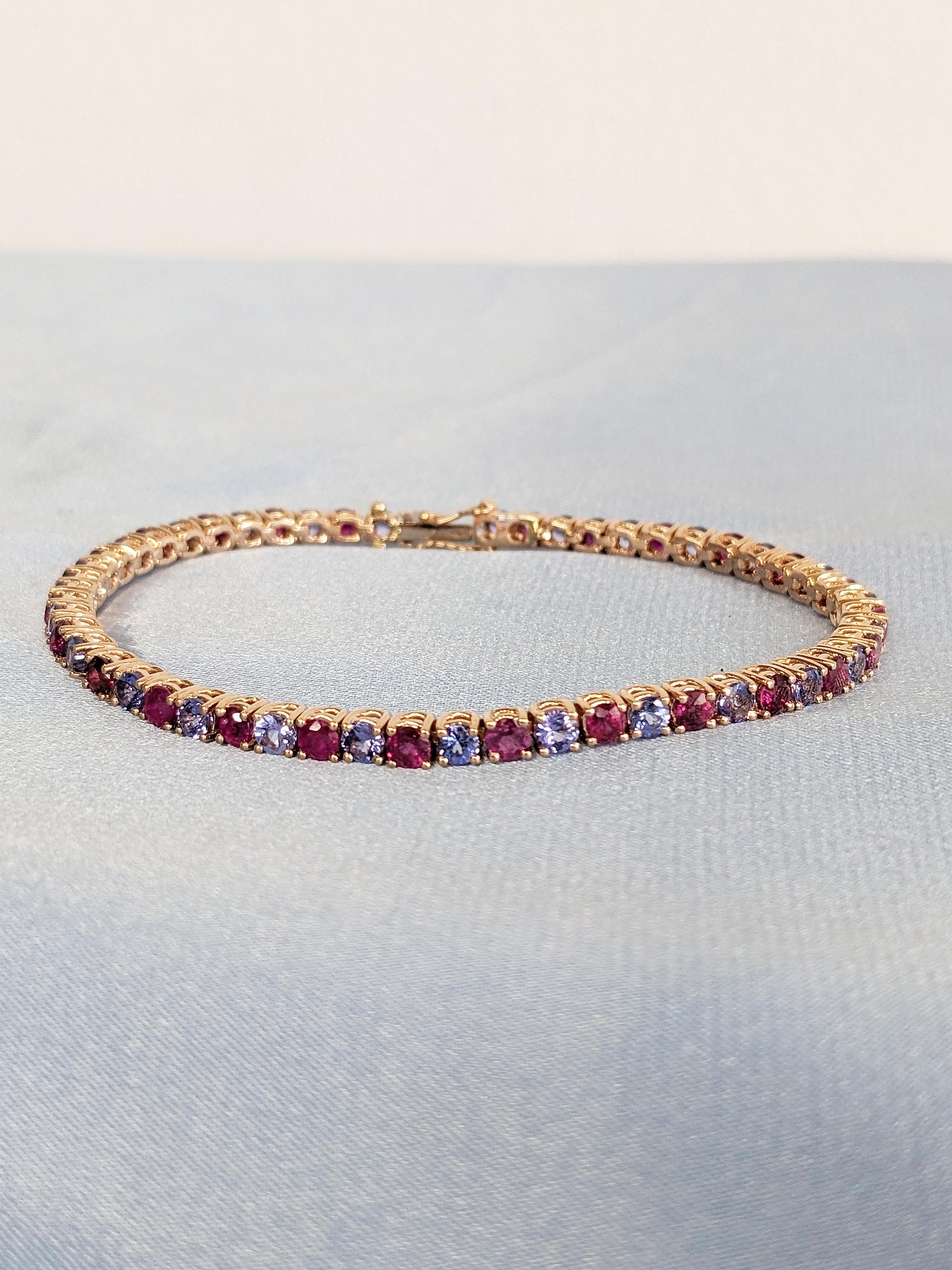 Minimalist 14k Rose Gold Tennis Bracelet, Multicolor 3mm Natural Ruby, Tanzanite Gemstone Bracelet for Women, Vintage Red Ruby Jewelry