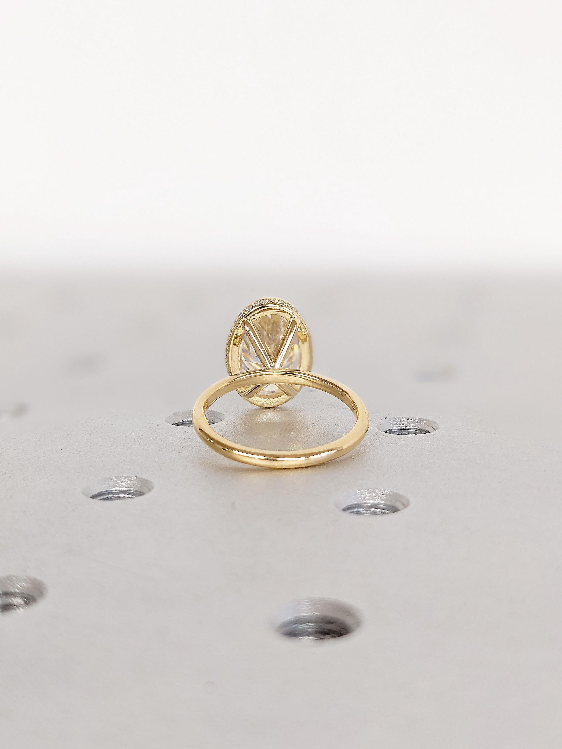 Modern Lab Grown Diamond Solitaire Engagement Ring | 18K Yellow Gold Oval Cut Lab Diamond Wedding Band | Bezel Set Hidden Halo Bridal Ring