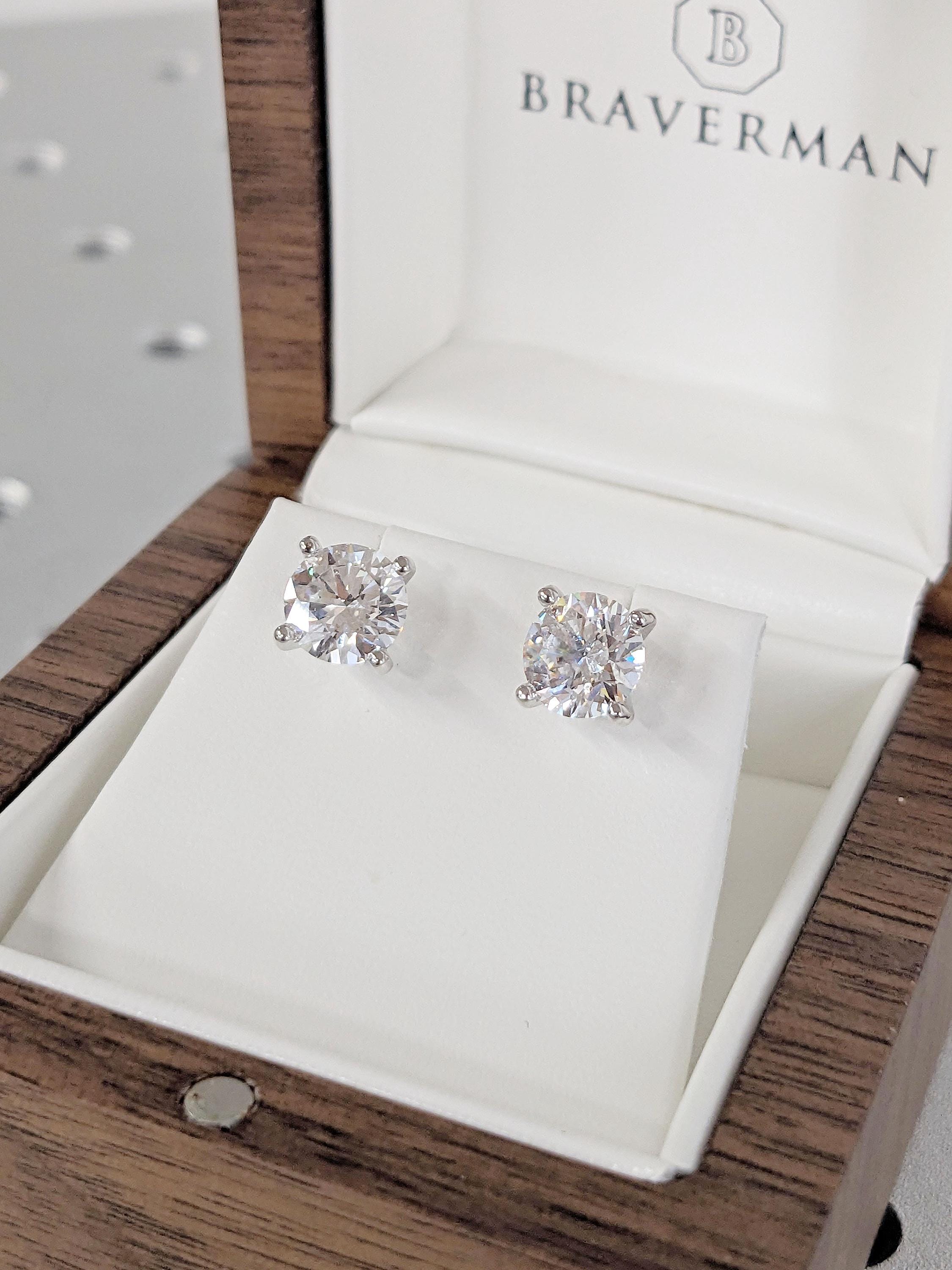 Moissanite Earrings | 1ct, 1.5ct Moissanite | Push Back Round cut Stud Earrings Solitaire | 14k Yellow / White / Rose Gold, Platinum Earring