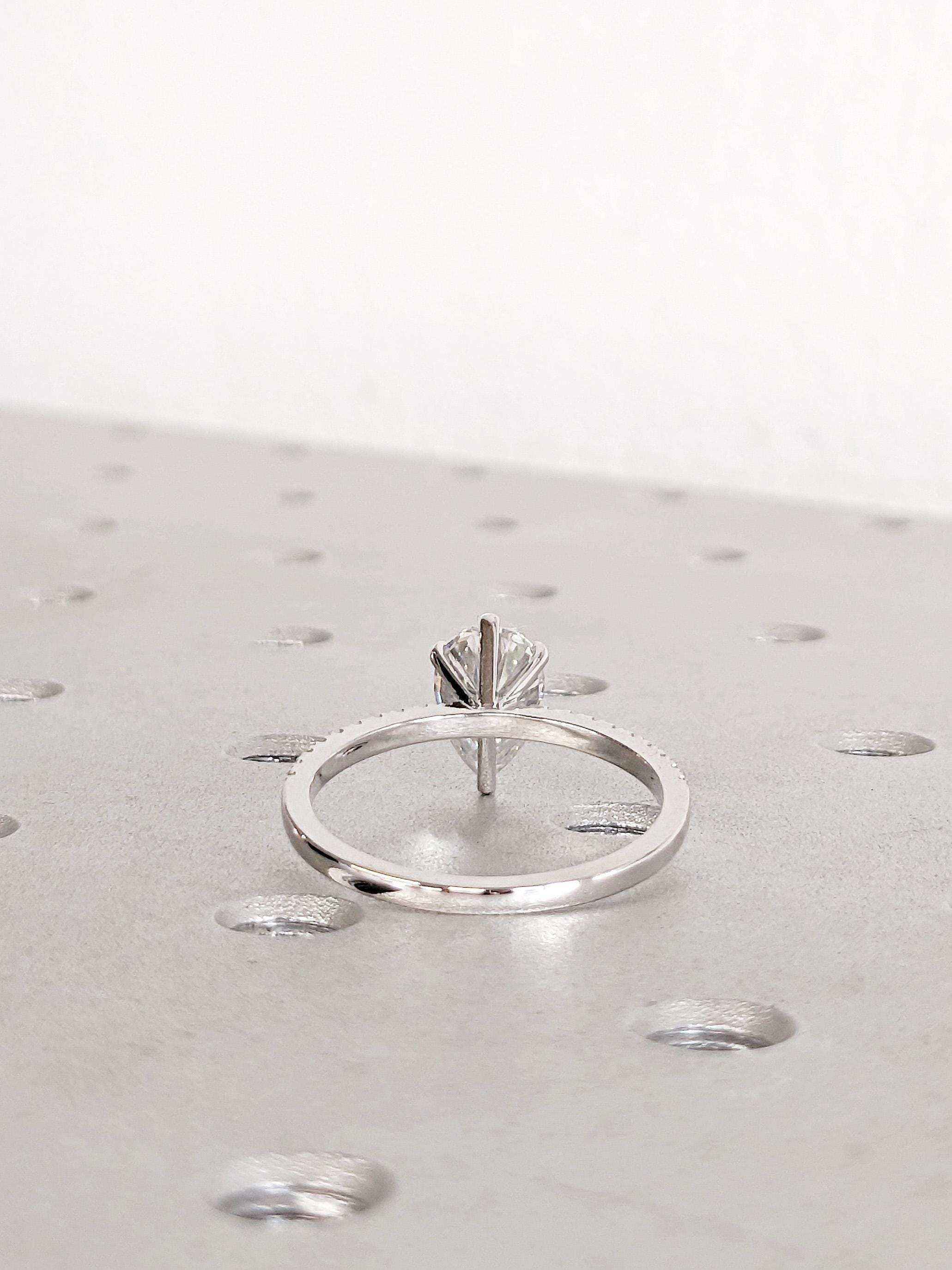 This Pear Moissanite Engagement Ring brings a bright Moissanite main stone in a prong setting, paired with Round side stones in a clean pave row that can be Natural Diamond or Moissanite for soft, even sparkle. Its elegant look makes it ideal for engagement, bridal wear, anniversary, or a loving gift, adding a graceful shine to any moment.