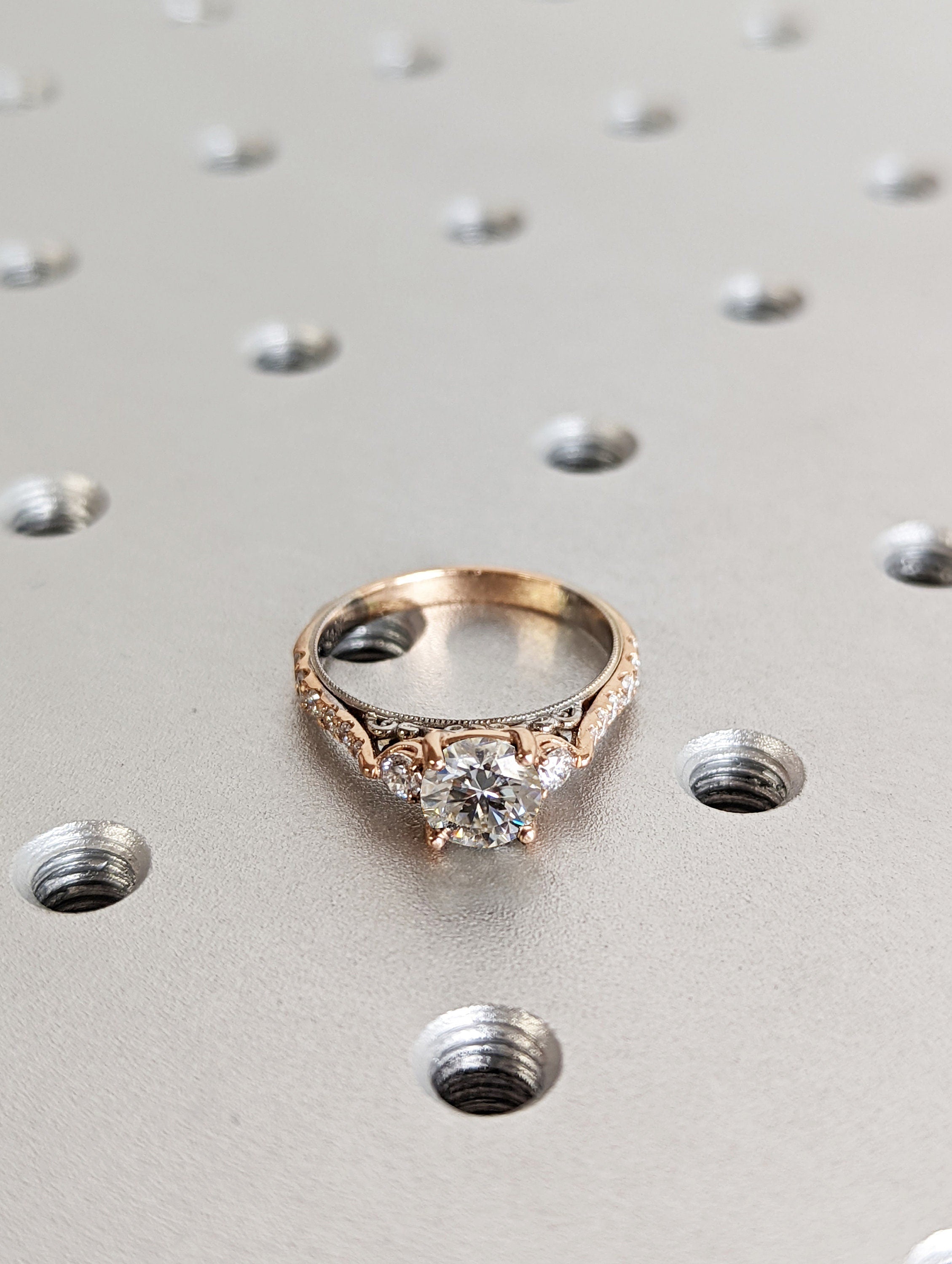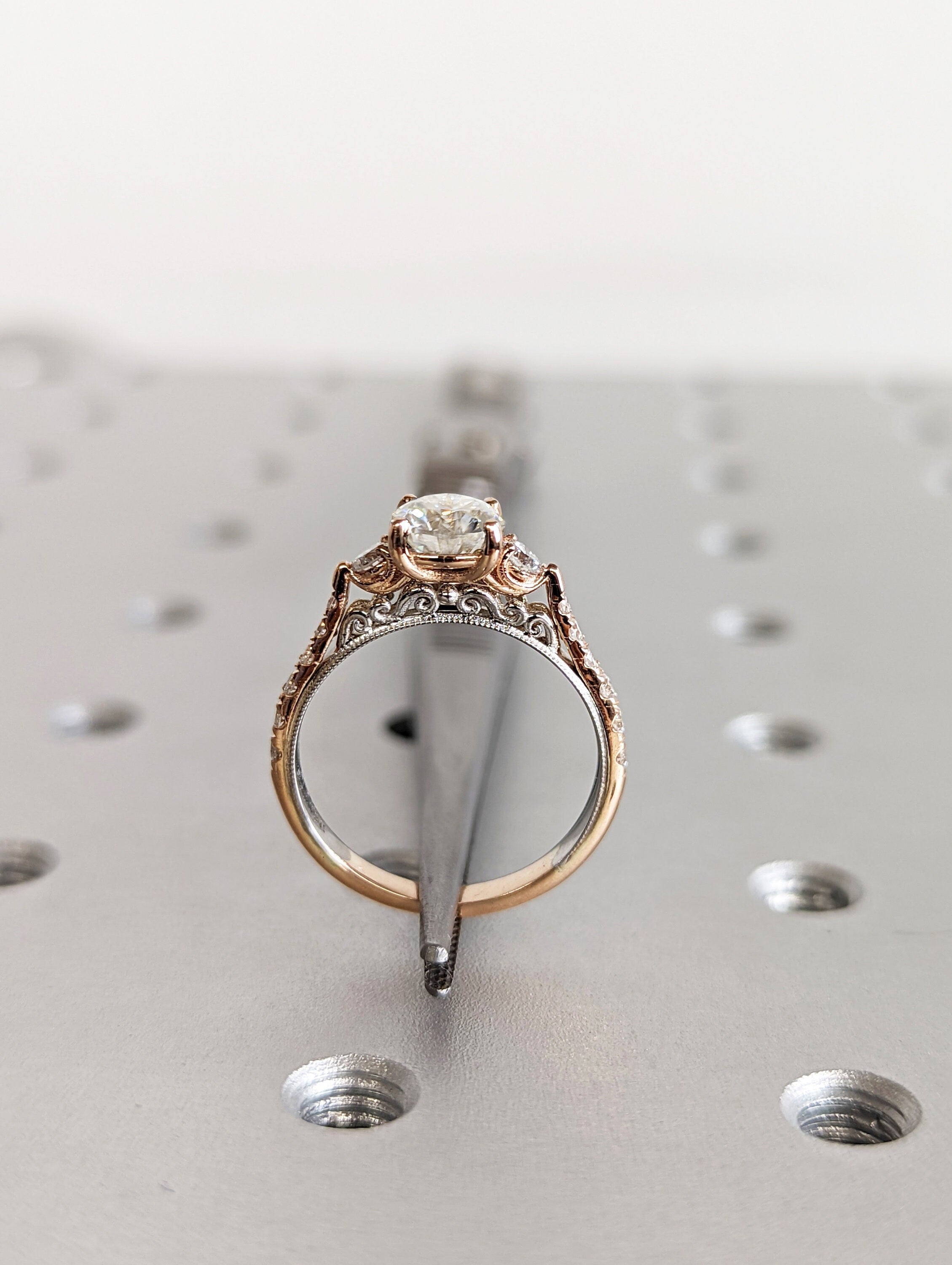 Moissanite engagement ring round cut vintage engagement ring prong set ring moissanite ring two tone anniversary ring rose & white gold