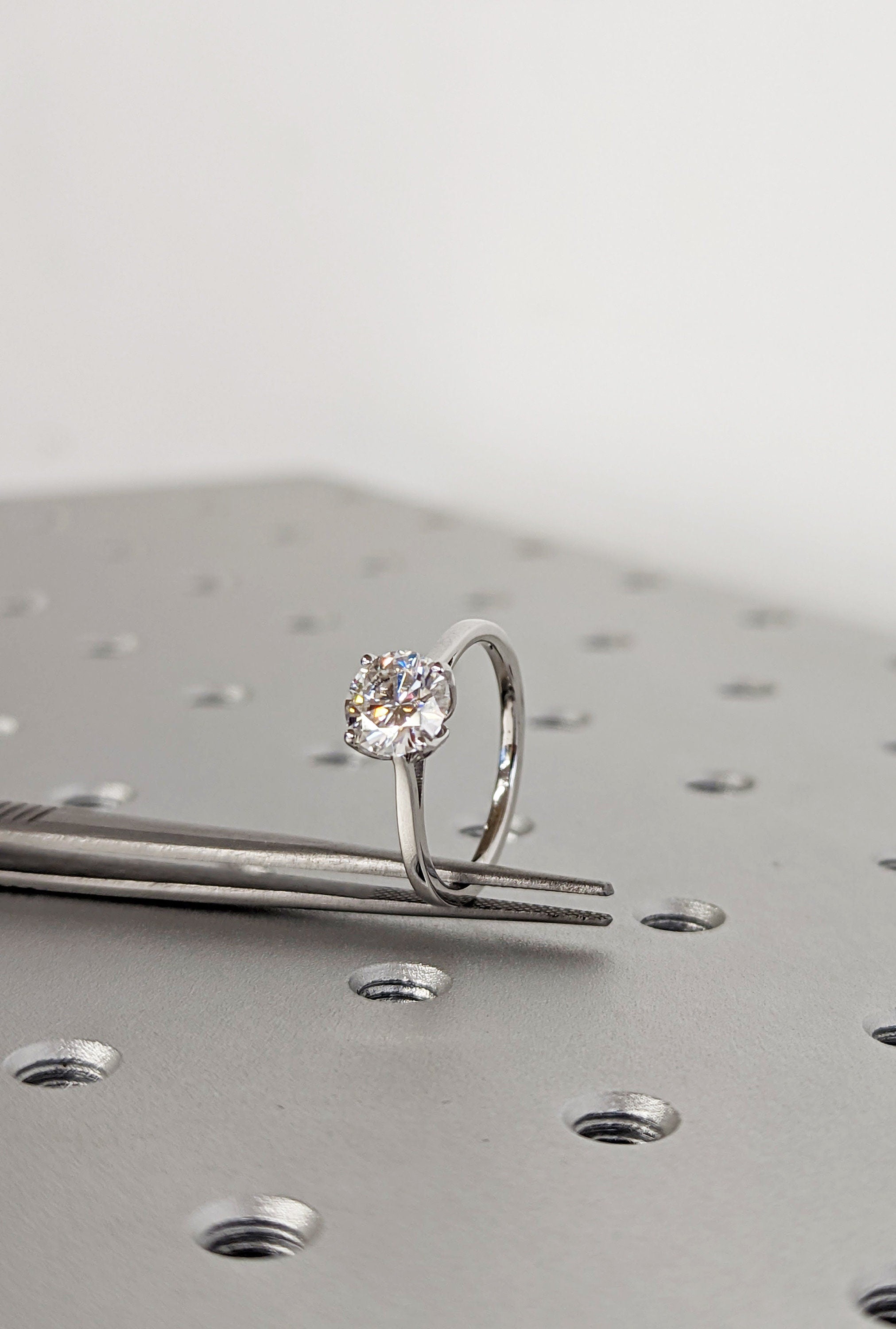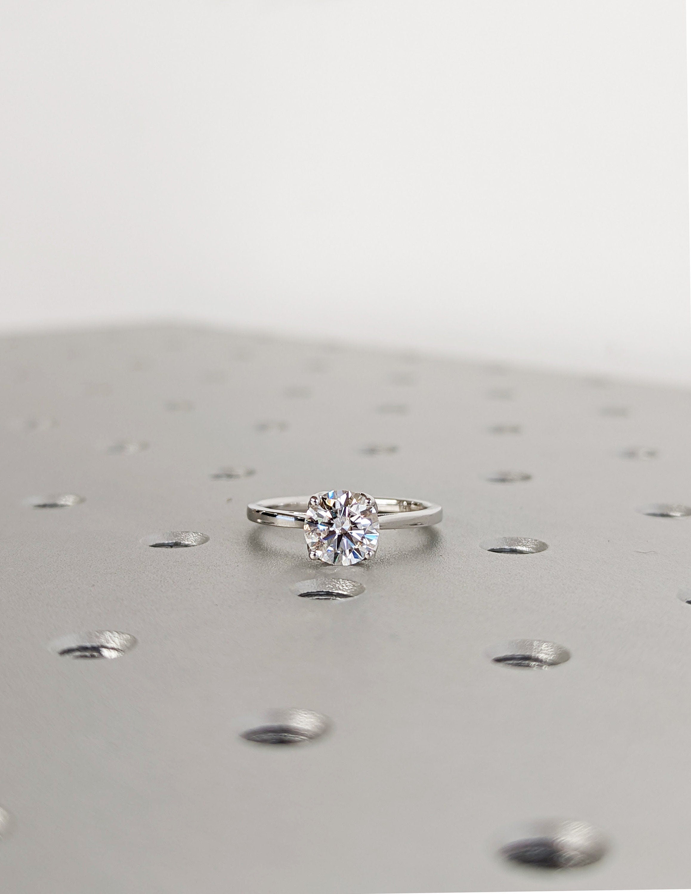 Moissanite Engagement Ring Tulip Solitaire Ring, Vintage Moissanite engagement ring art deco 14k White Gold Moissanite Ring Anniversary ring