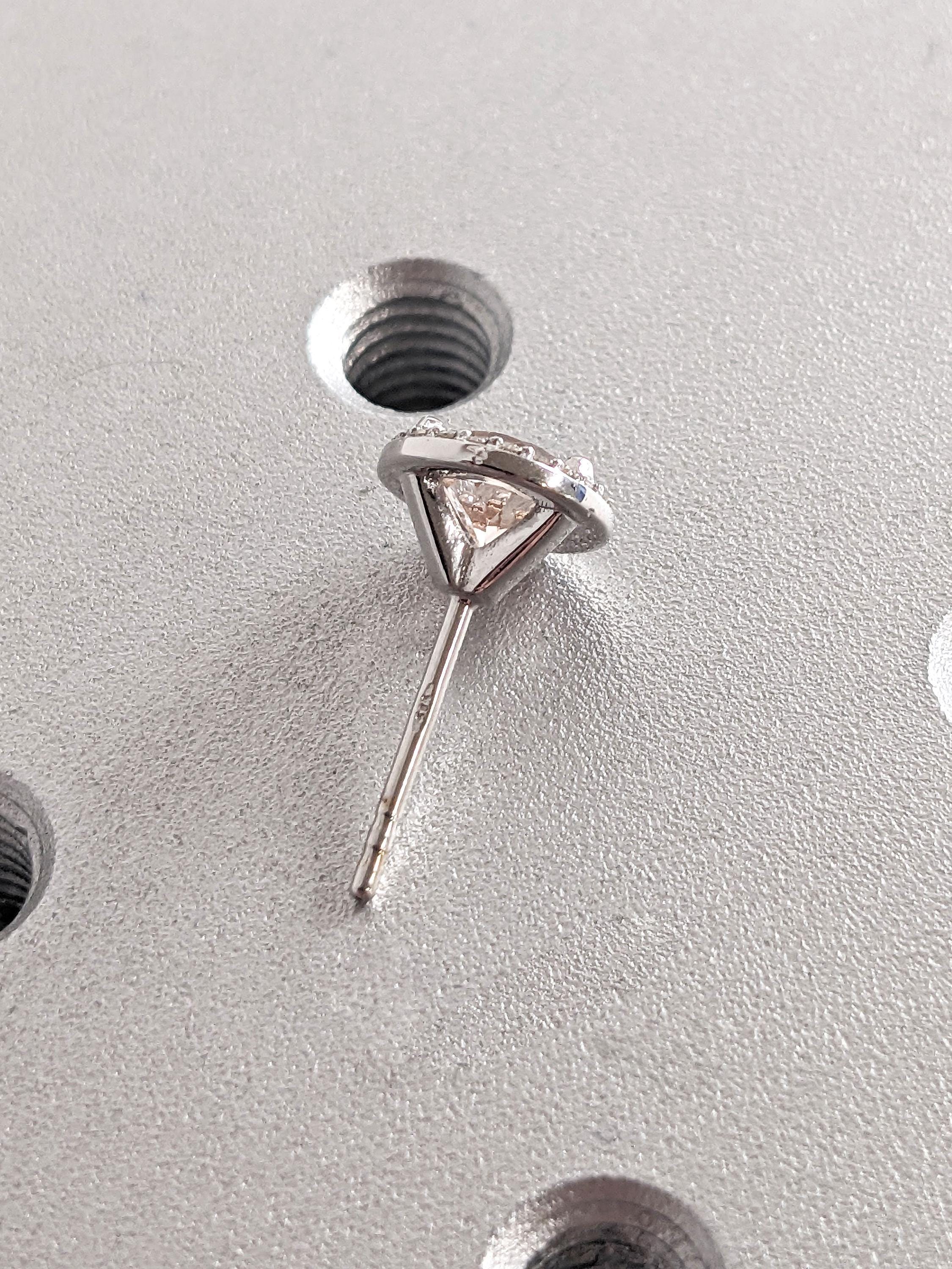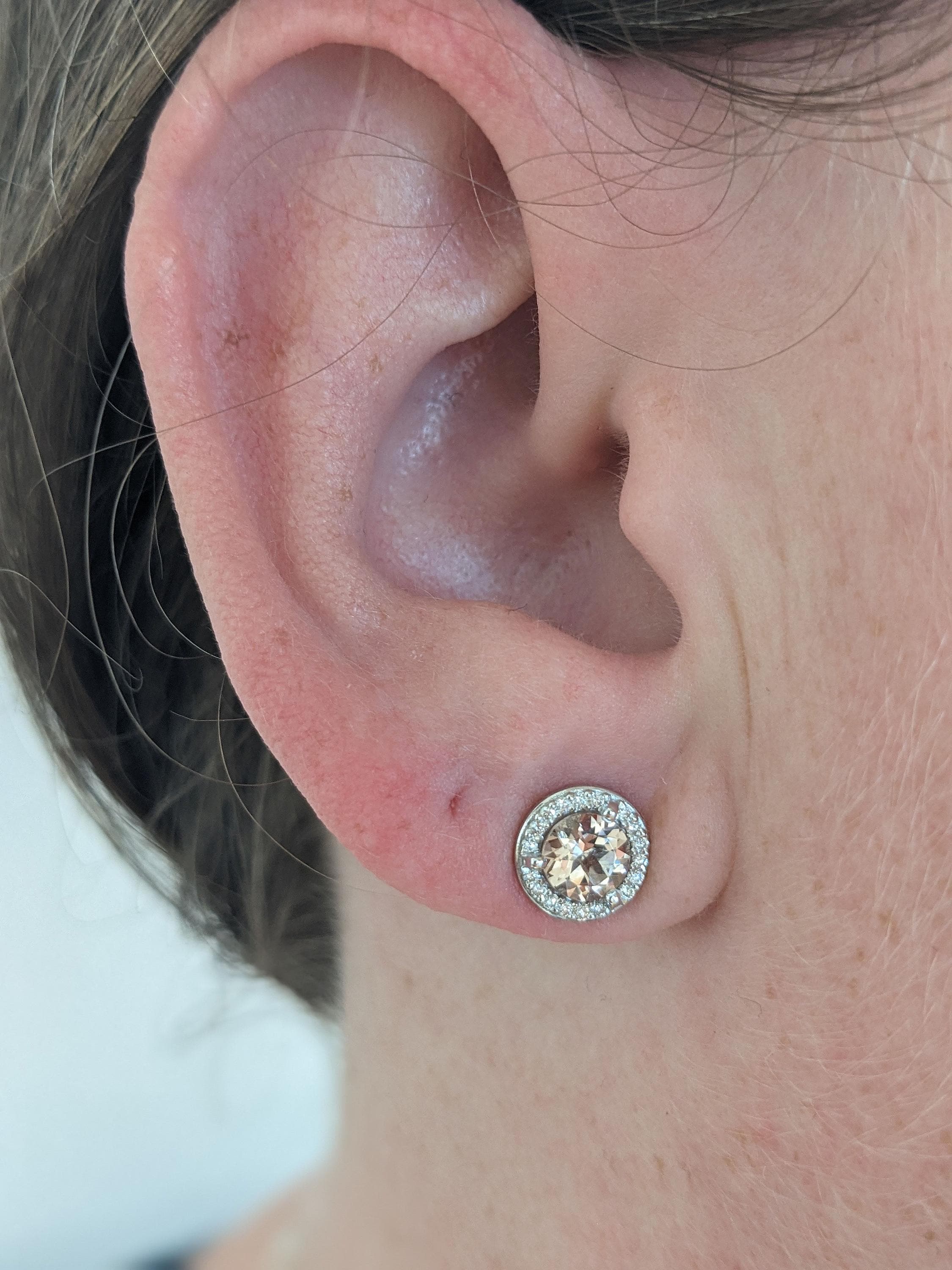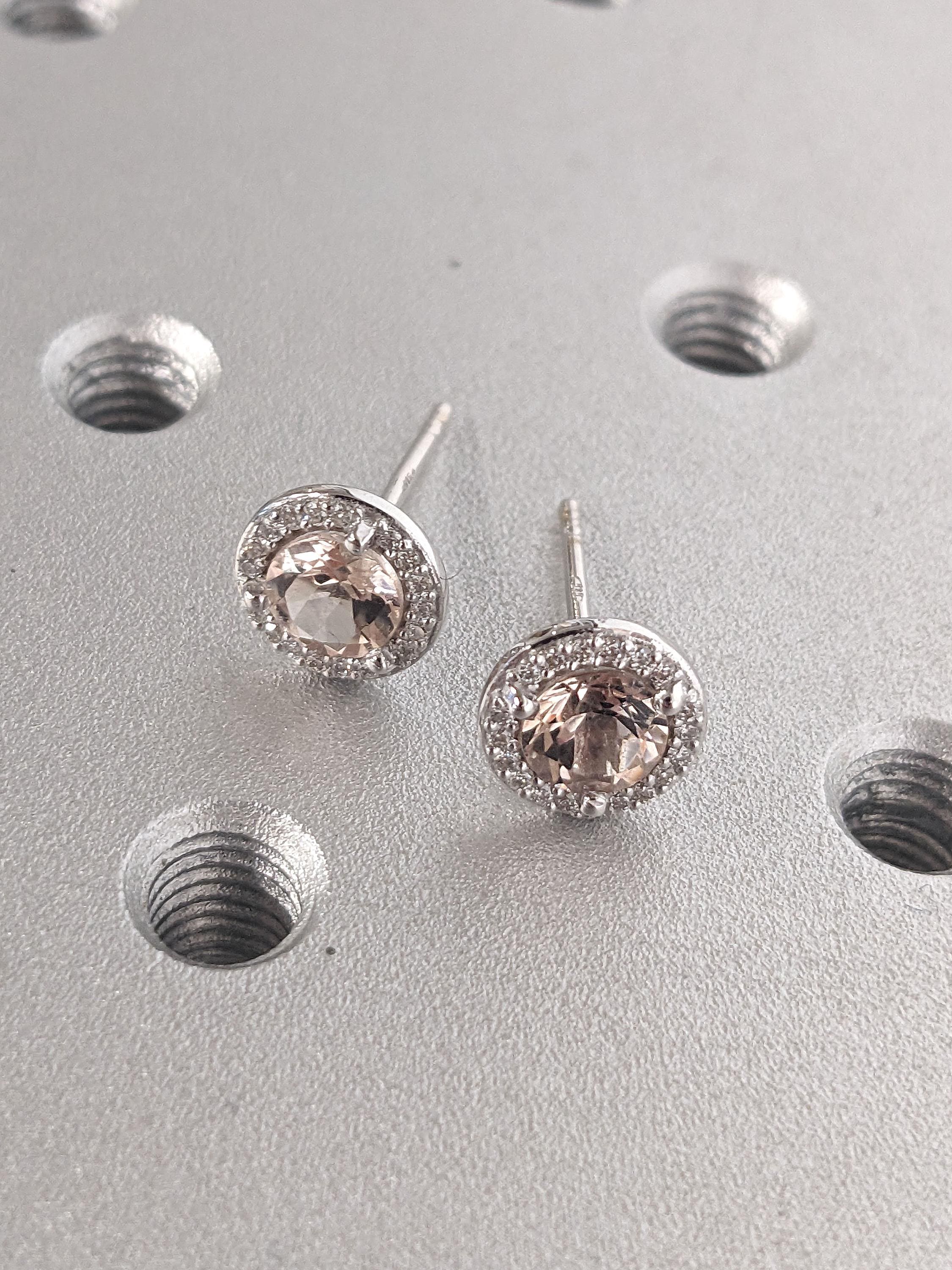 Moissanite Halo Solid Gold Women Earrings | Round Morganite Studs Earrings | Eco Friendly Earrings