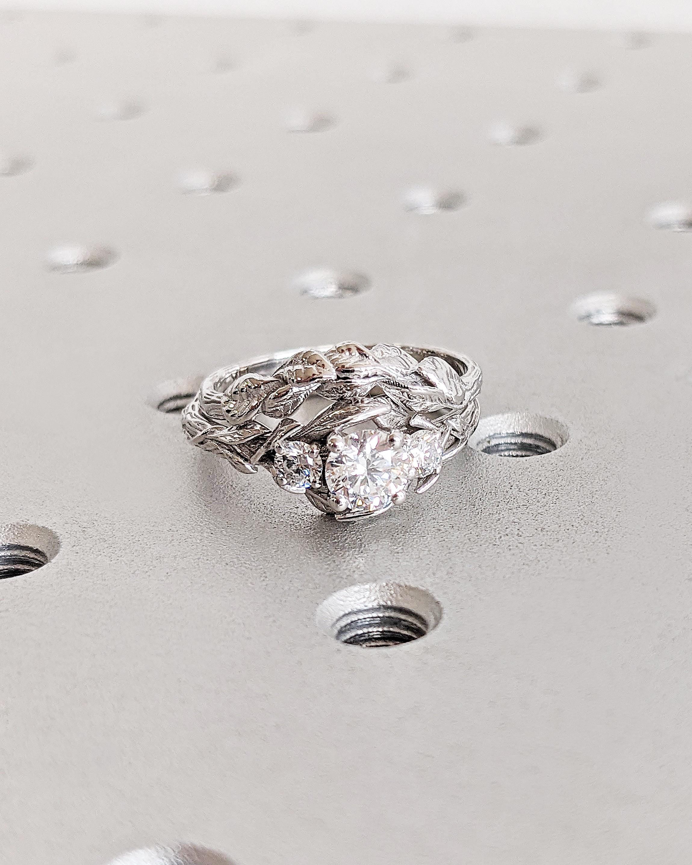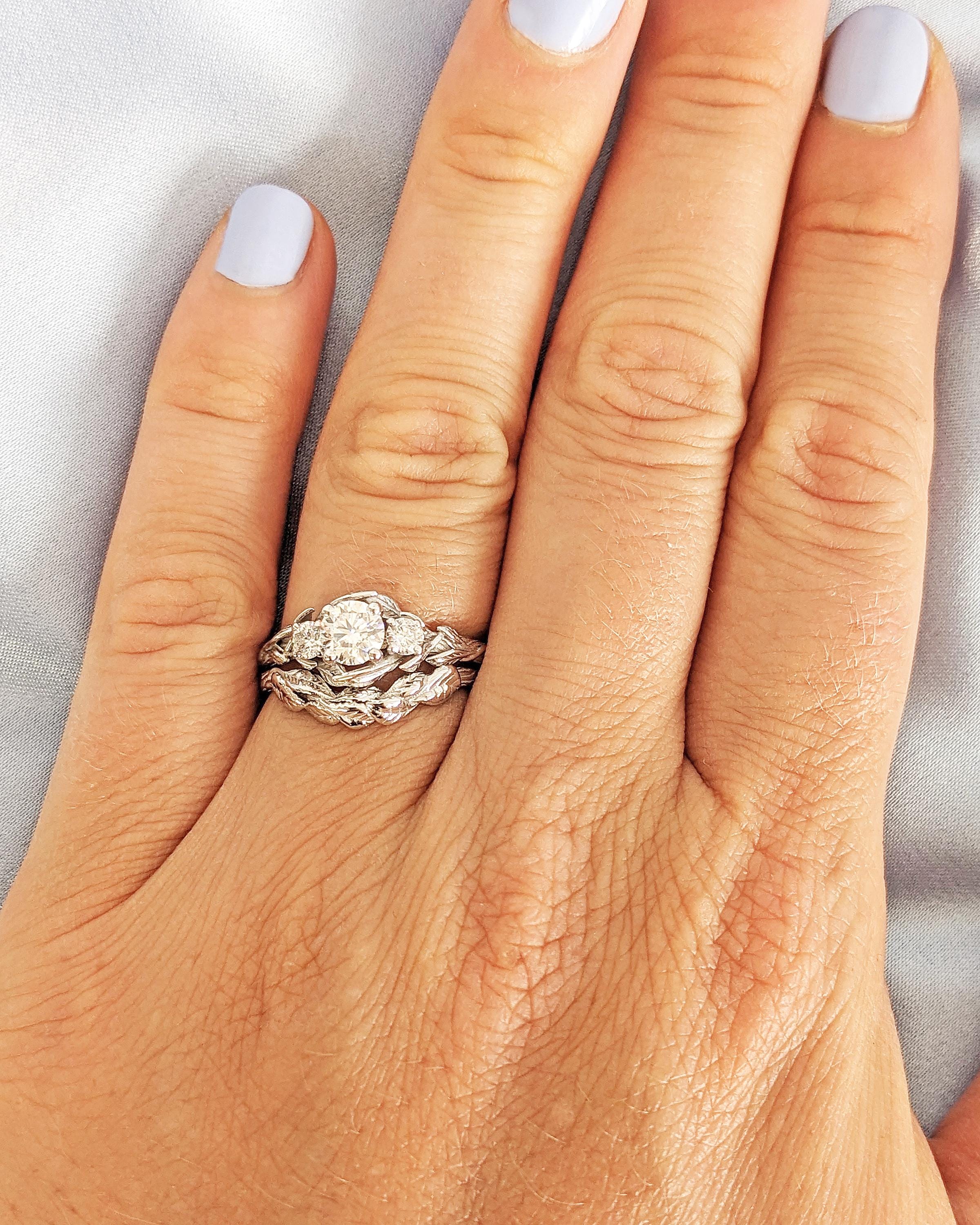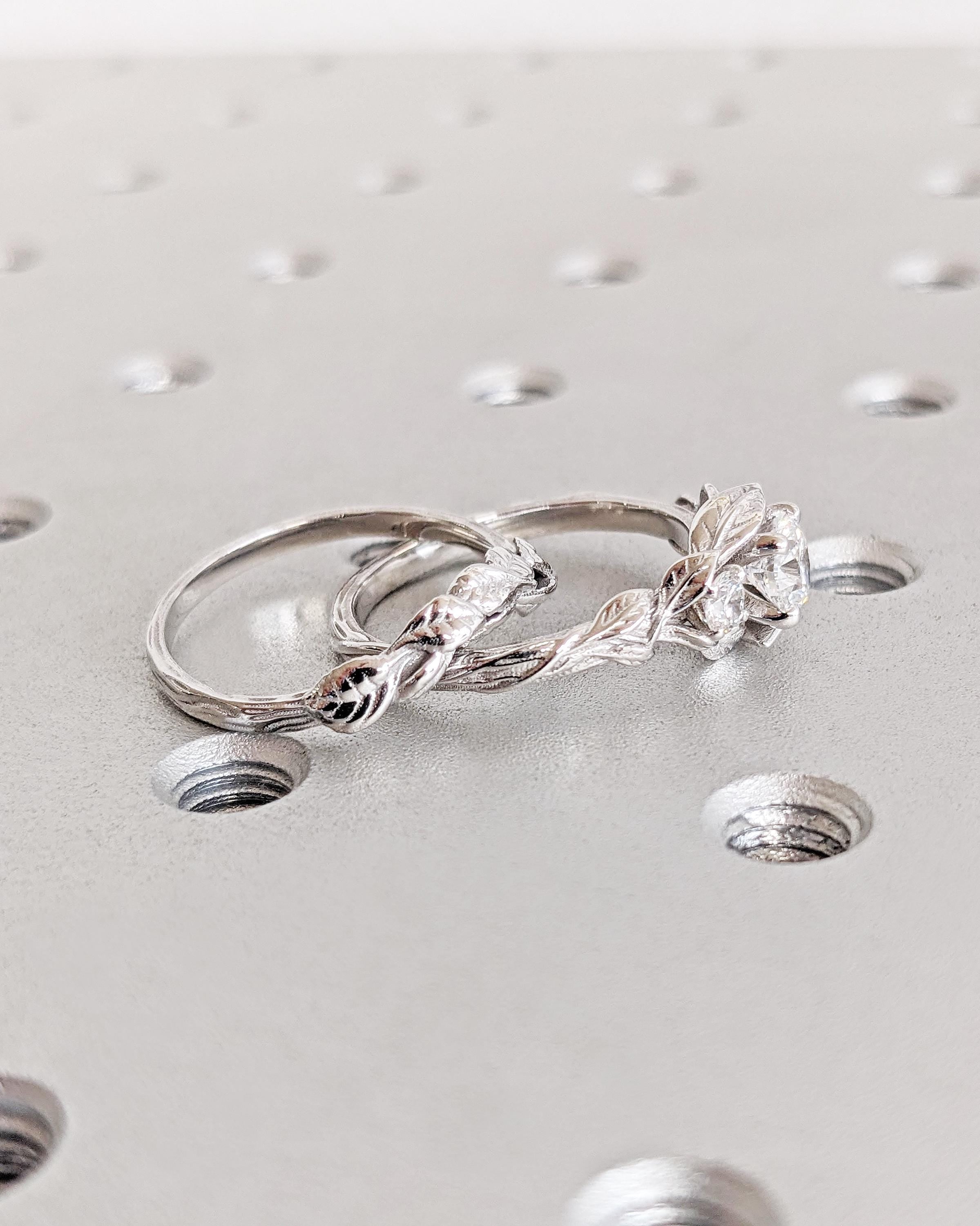 Moissanite Nature Engagement Ring Set, Leaf Tree Branch Wedding Ring Set, 14K White Gold Nature Promise Ring Set, Anniversary Ring for Women