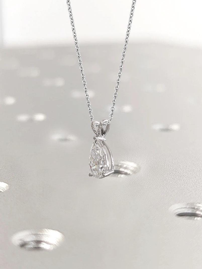 Moissanite Necklace Pear Pendant For Ladies | 1-2CT Pear cut Moissanite Pendant 14K Gold Necklace | Teardrop Shape Dainty Everyday Necklace