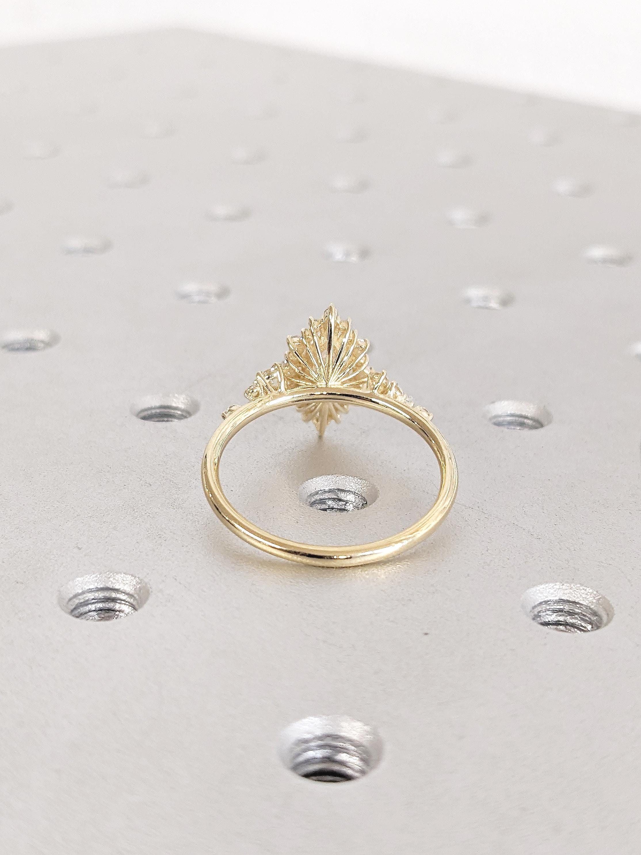 Moissanite Ring, 14K Solid Gold Engagement Ring, Marquise Moissanite Halo Ring, Personalized Statement Ring, Diamond Cluster Promise Ring