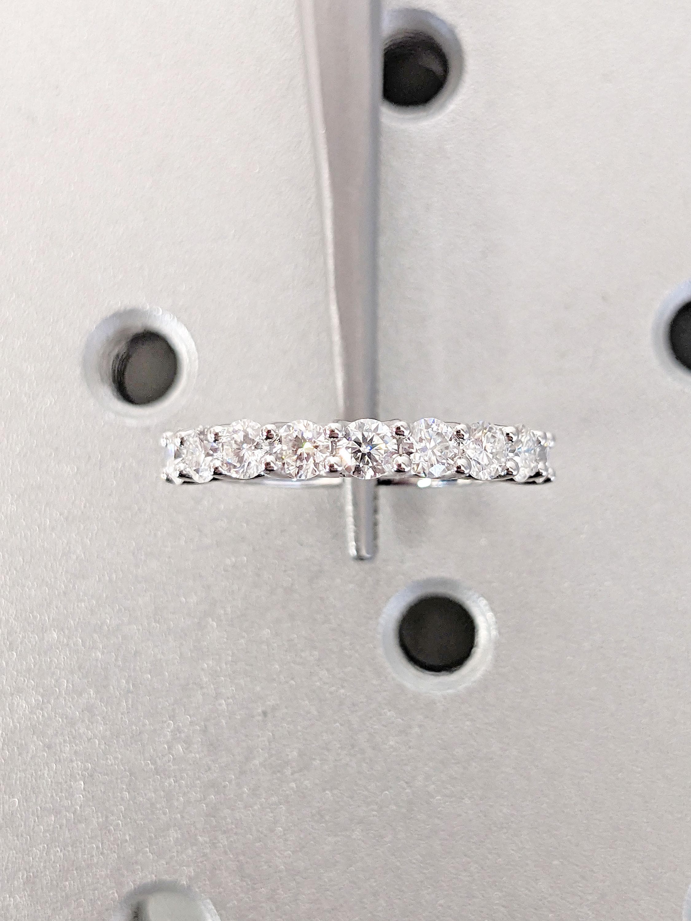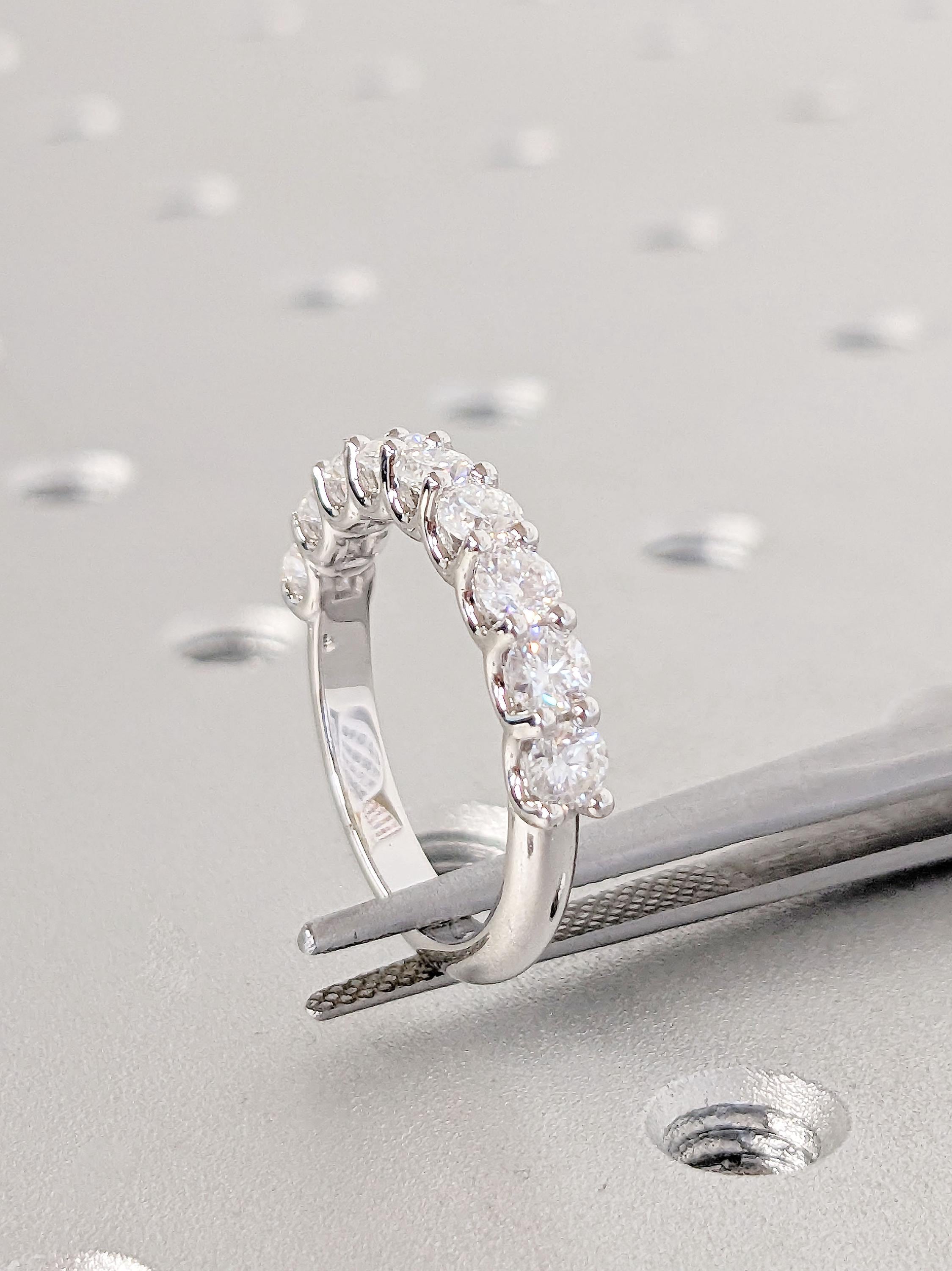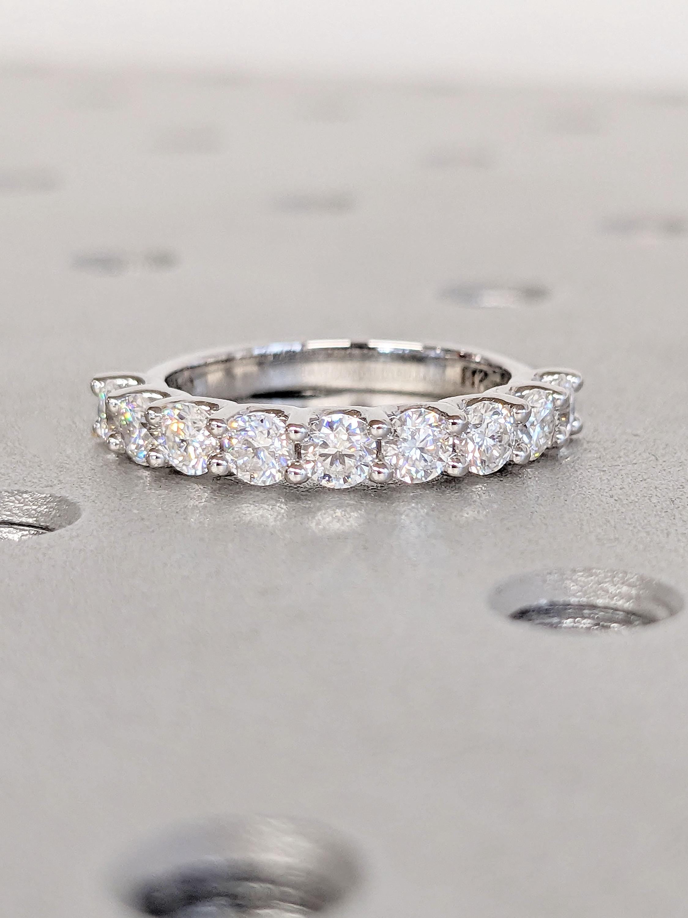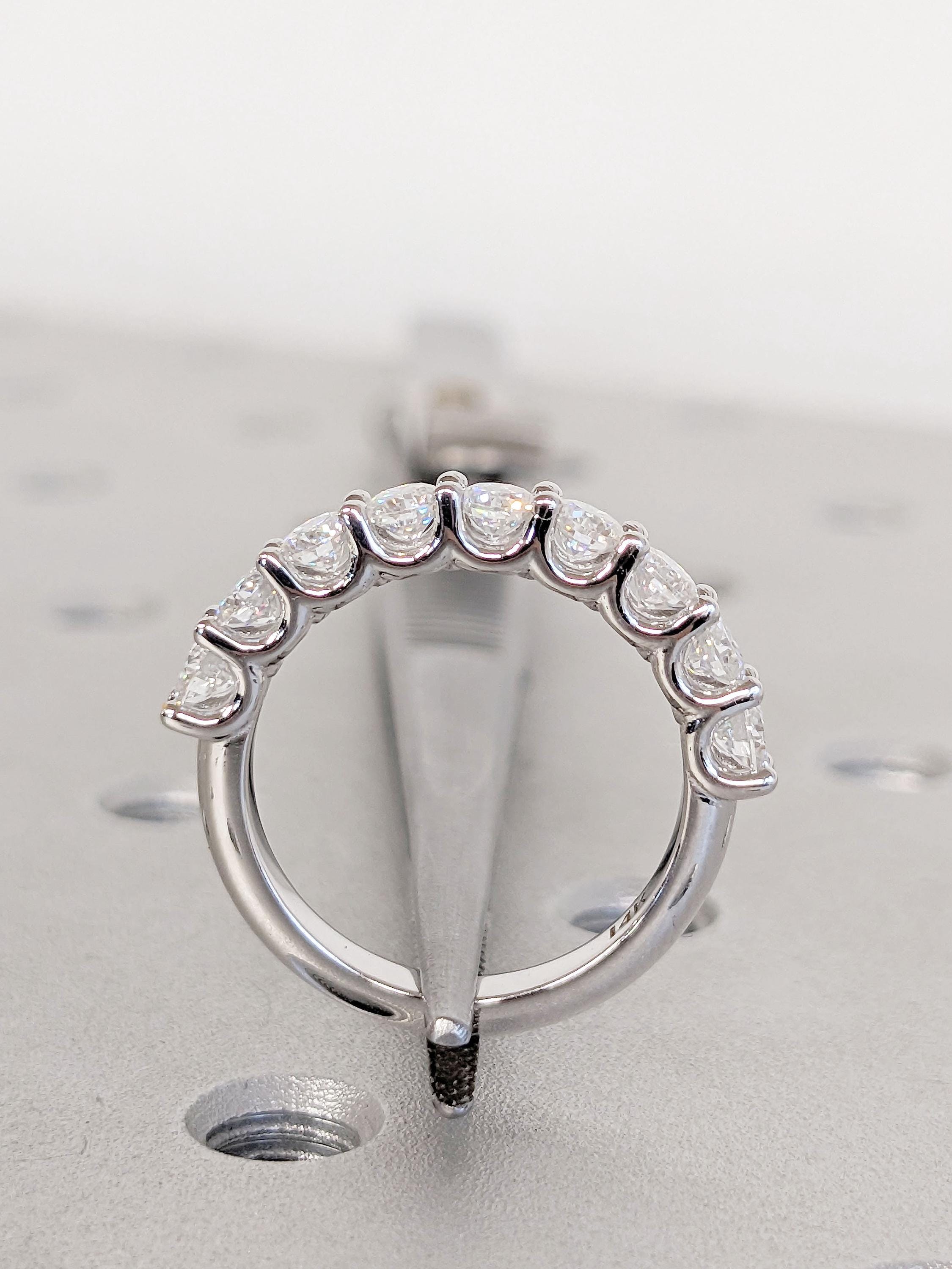 An elegant prong set nine stone ring, features a row of round cut gemstones in your choice of natural diamonds, lab diamonds or moissanites. Minimalist and luxurious, the perfect gift for birthday or wedding anniversary.