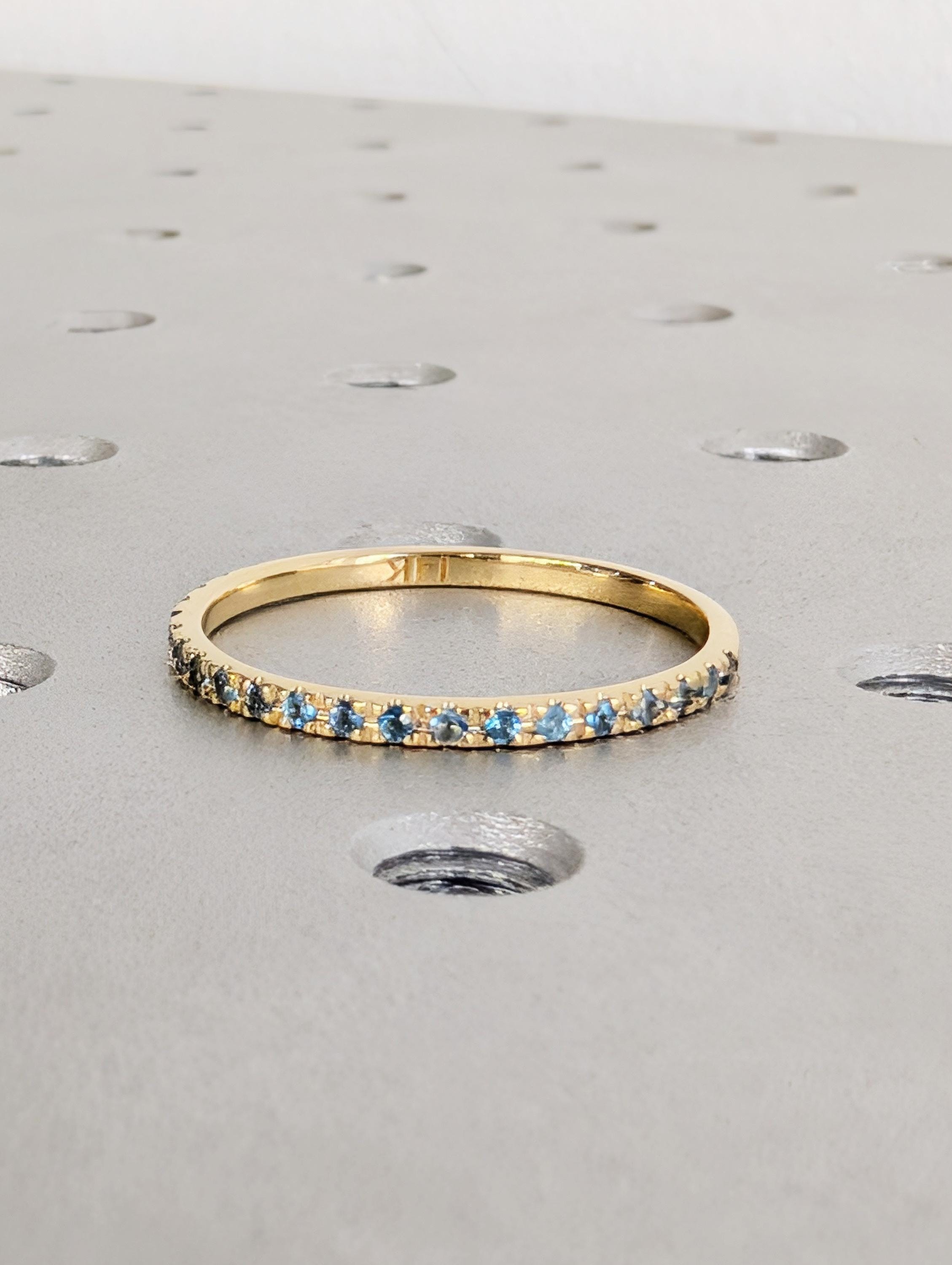 Natural Blue Topaz Wedding Band, Dainty 14K Yellow Gold Eternity Matching Ring, Sagittarius Birthstone Jewelry