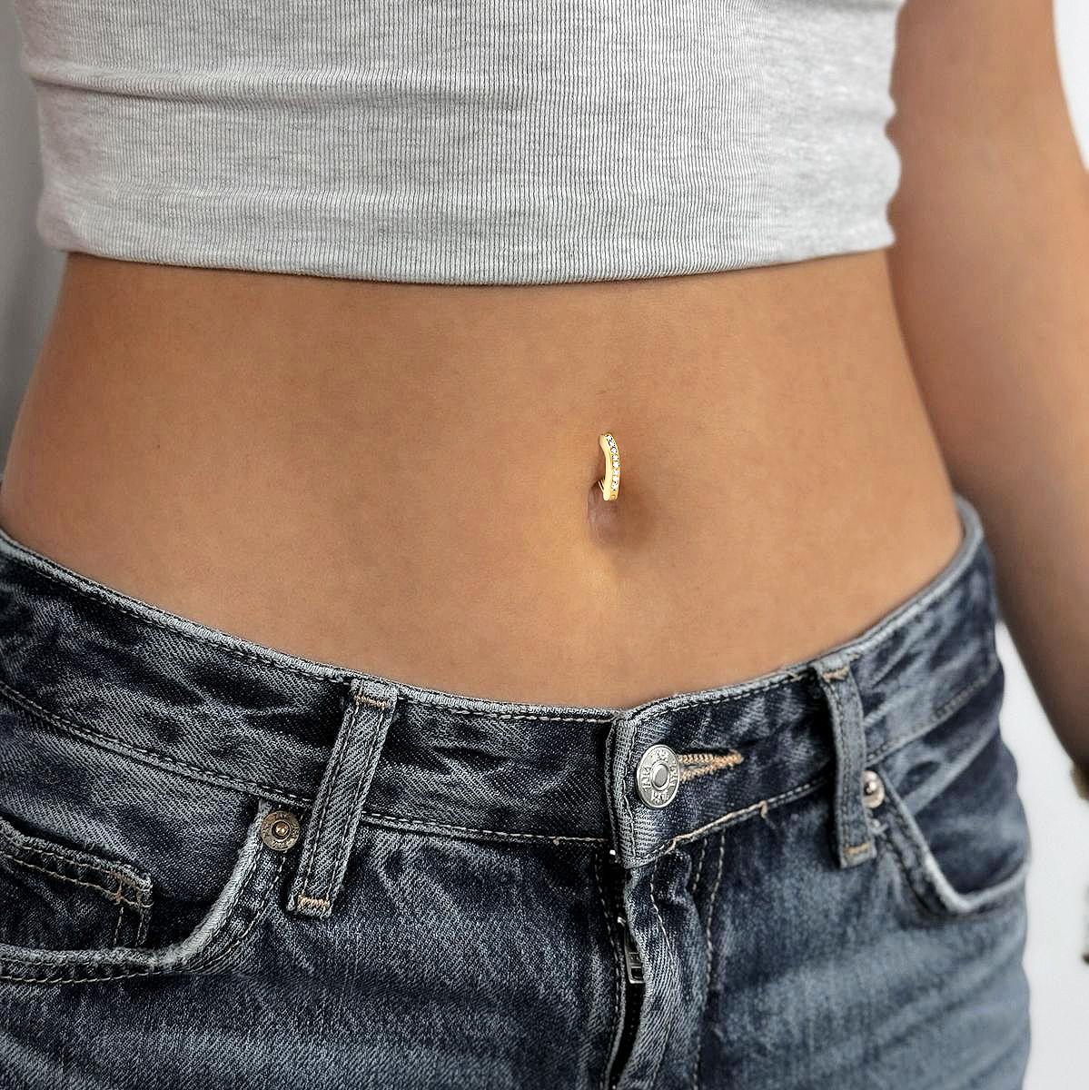 Natural Diamond Navel Ring, 18K Solid Gold Belly Button Diamond Piercing, Curved Belly Ring, Diamond Clicker, Body Jewelry