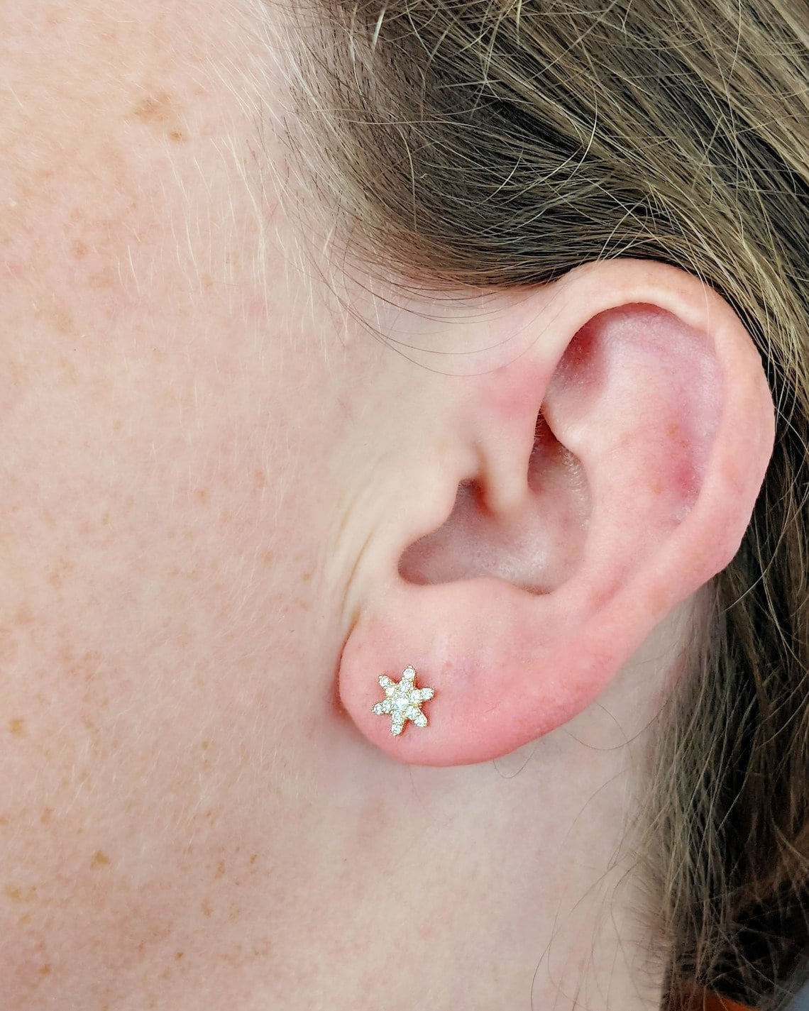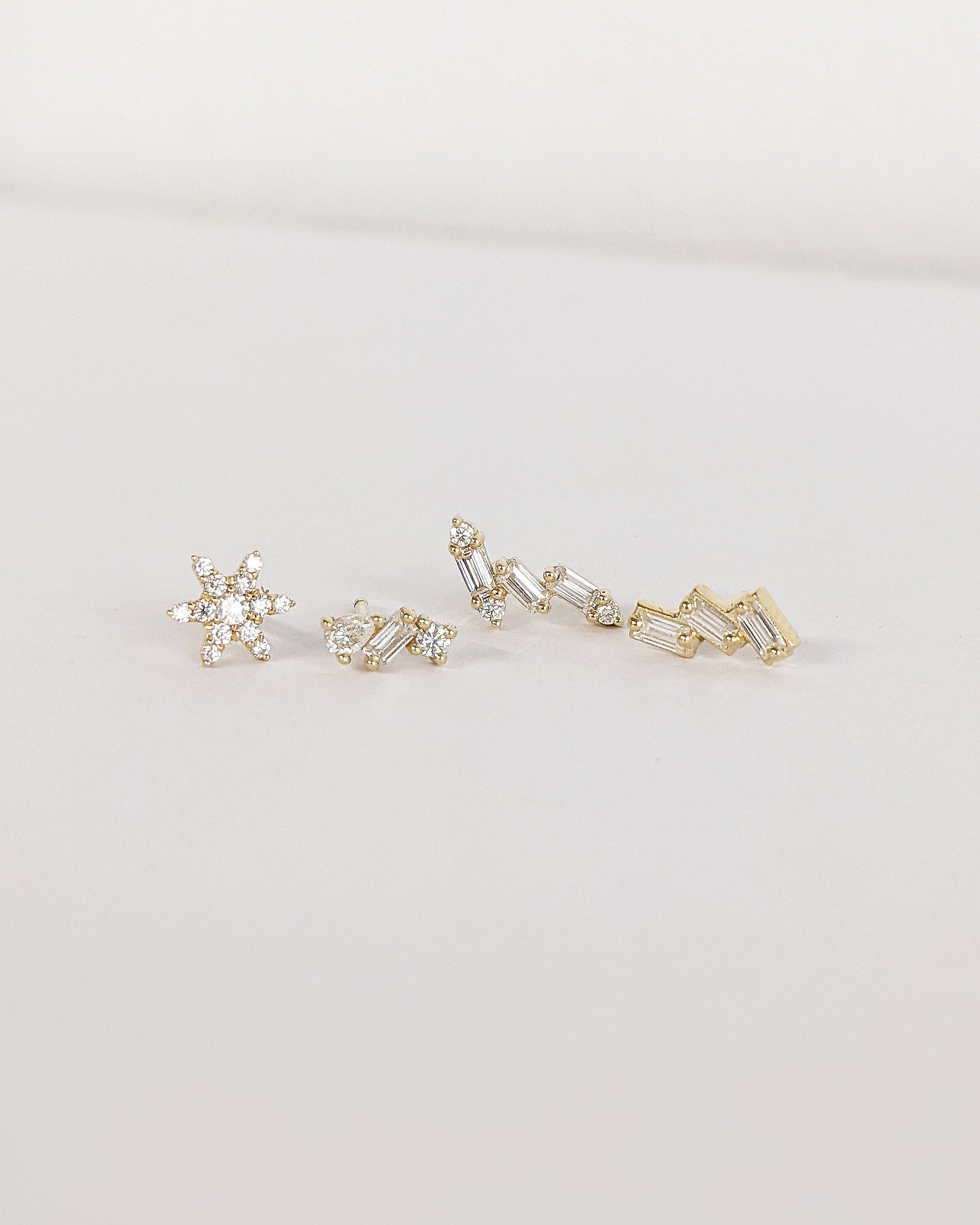 Natural Diamond Set Earrings for Her | Solid Gold Screw Back Stud Earrings Collection | Modern Minimalist Everyday Floral Trellis Jewelry