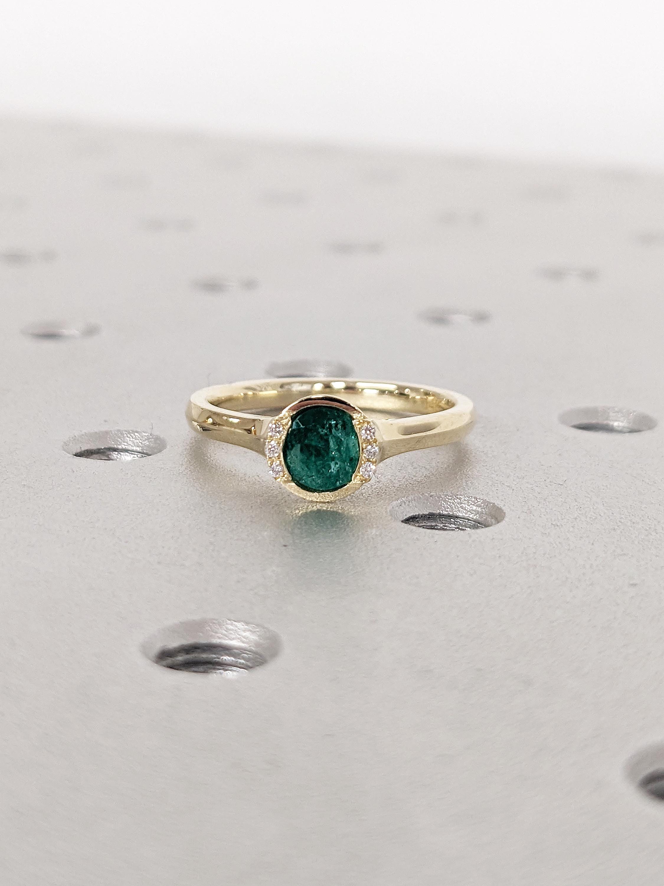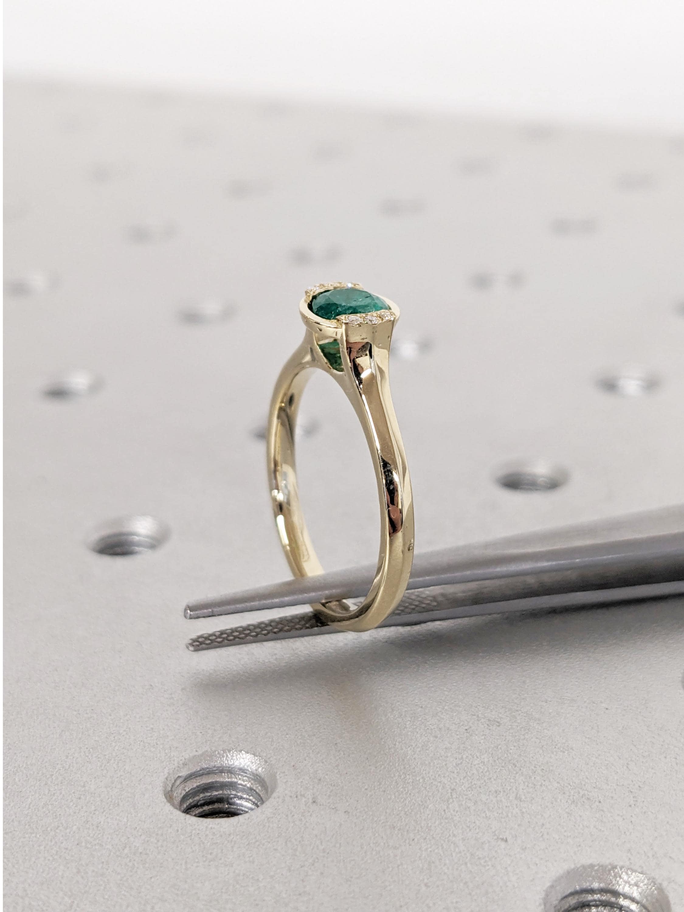 Natural Emerald Ring, Dainty 14k Solid Gold Wedding Ring, Bezel Set Ring with Diamond or Moissanite, Anniversary Ring, Green Gemstone Ring