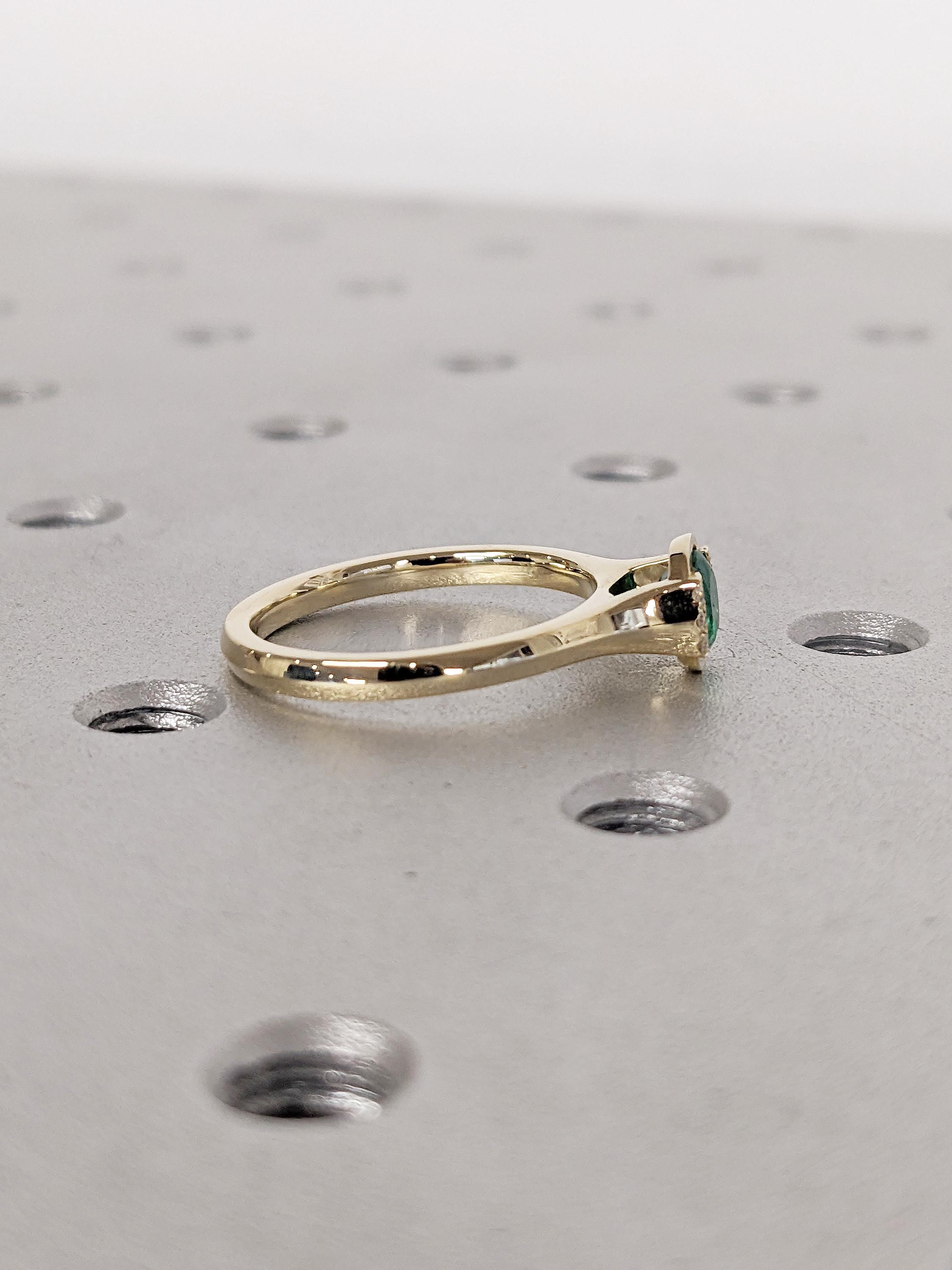 Celebrate your love with this stunning engagement ring, featuring a round cut Natural Emerald at its center, cradled in a sleek and secure bezel setting. The bezel setting is elegantly accented with three shimmering stones on each side, available in your choice of Natural Diamonds, Lab Grown Diamonds, or Moissanite, adding brilliance and sophistication. Crafted for timeless beauty and durability, this ring is the perfect anniversary gift for your wife. It serves as a symbol of your everlasting devotion and the radiant journey you share together.