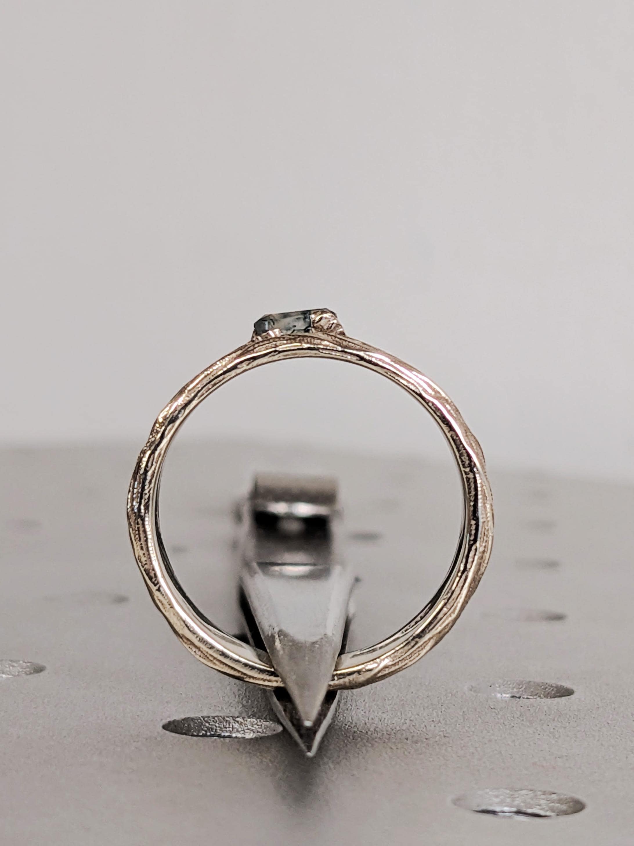 This men's ring features a bold and intricate design. The band is decorated with detailed engravings inspired by natural foliage, giving it an organic, earthy charm. At the center, a vibrant oval Moss Agate is securely set, creating a striking contrast against the engraved band. With its sturdy craftsmanship and refined detailing, this ring perfectly balances rugged sophistication.