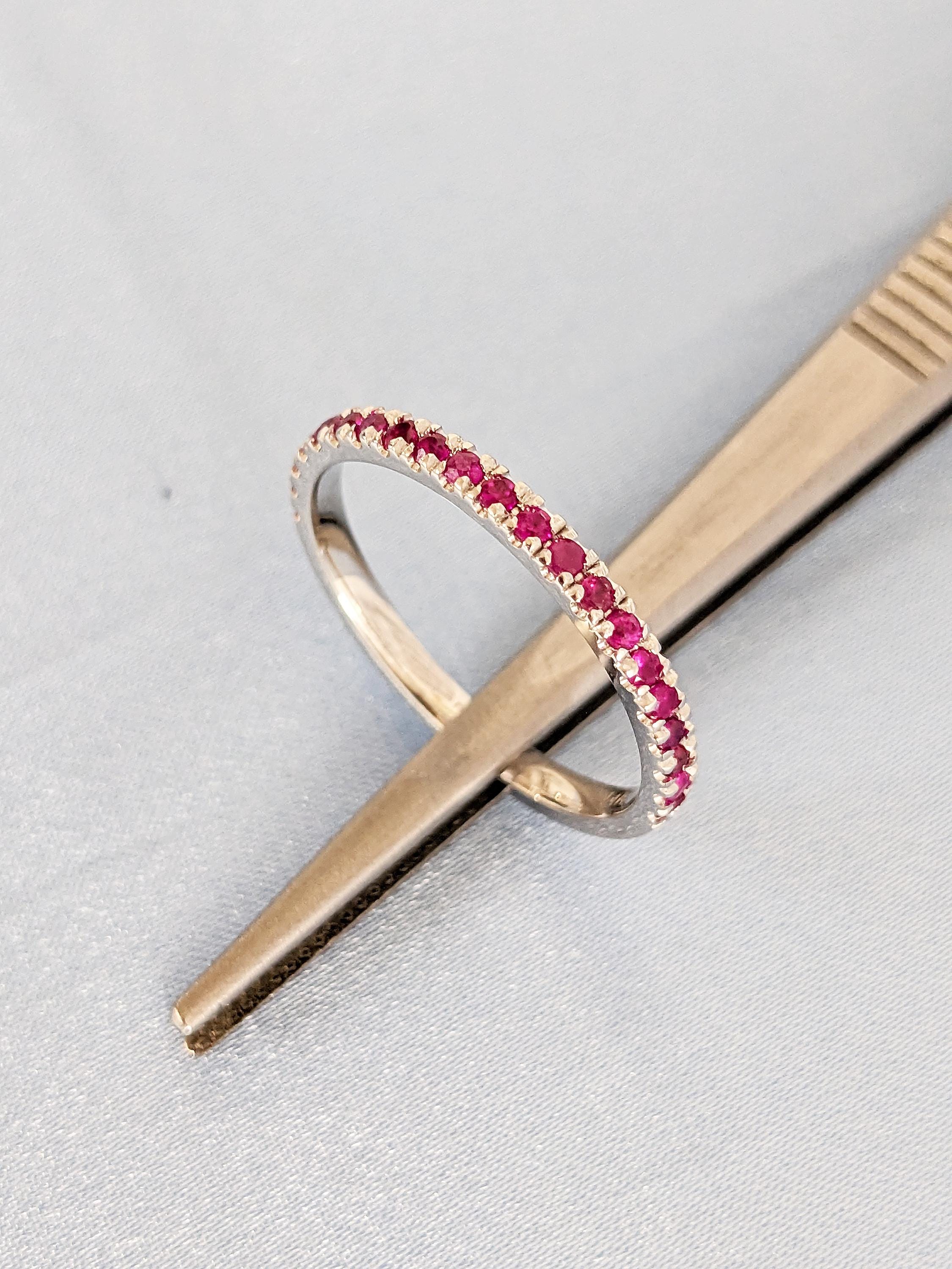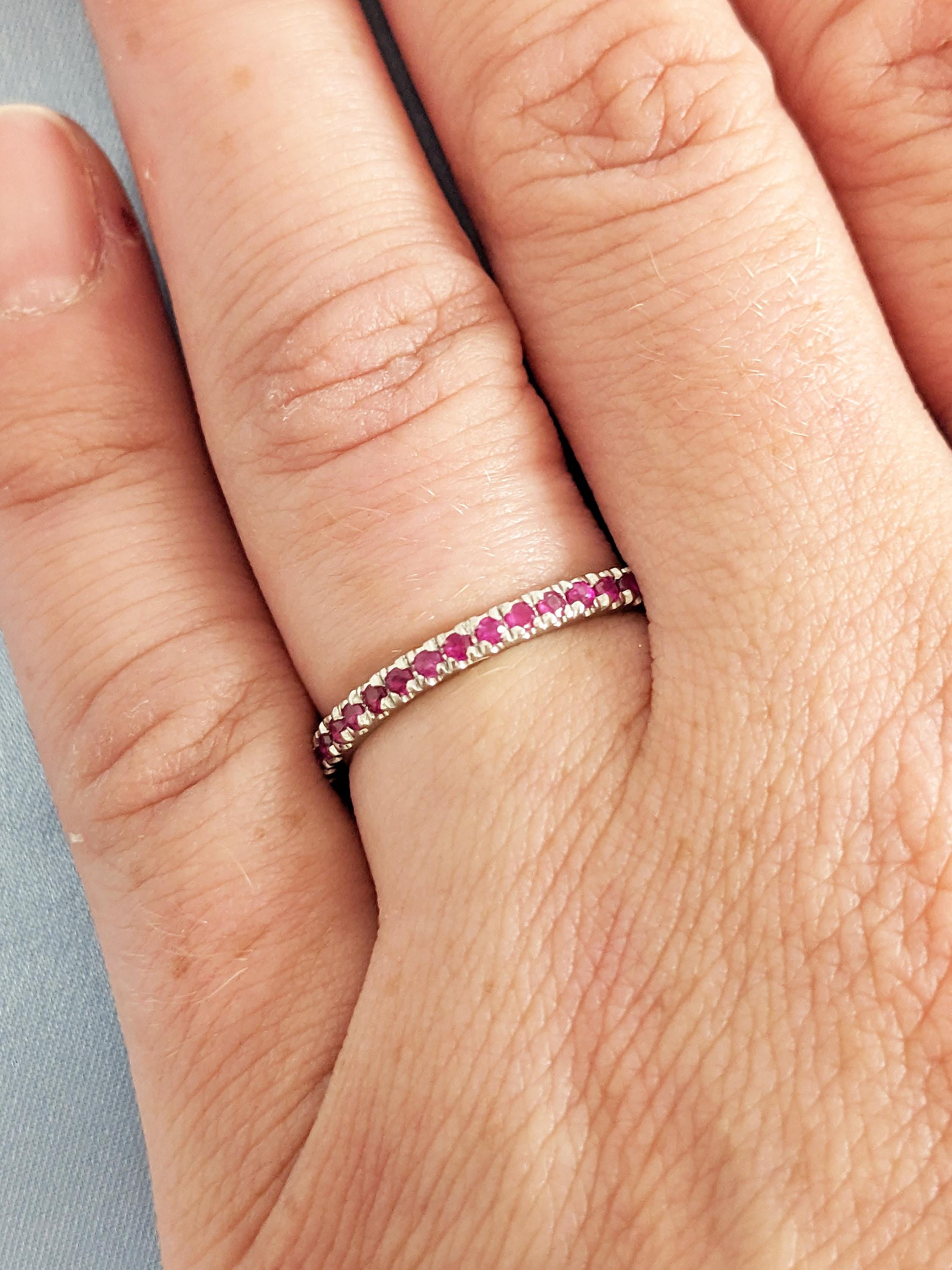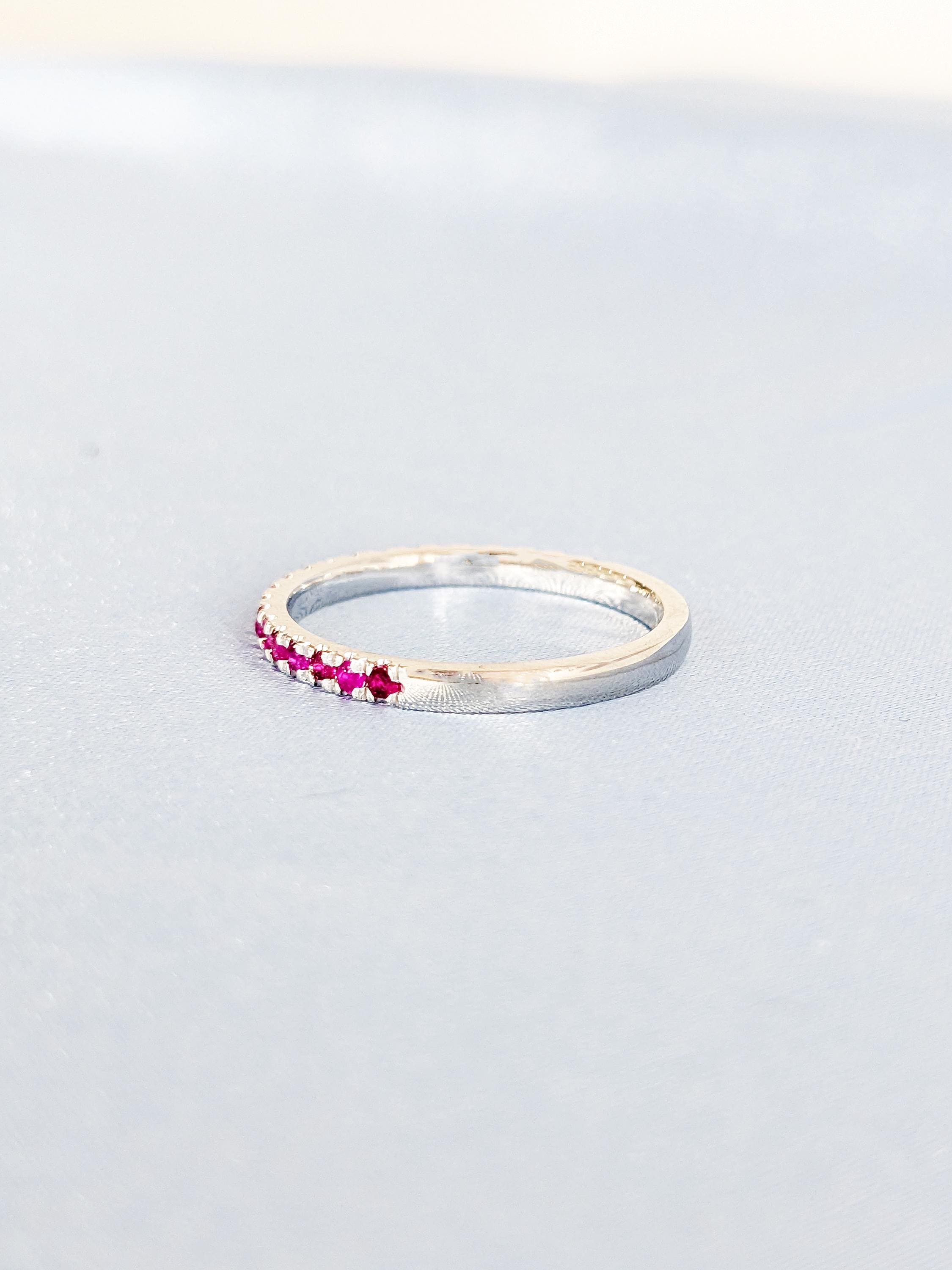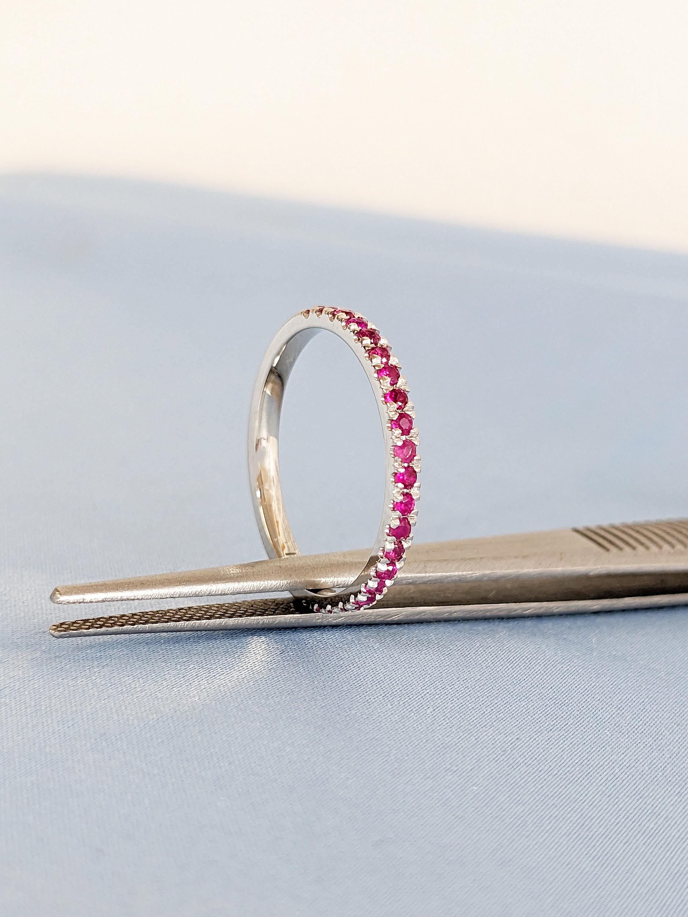 Natural Ruby Ring, Dainty 14k White Gold Wedding Band, Vintage Matching Ring, Red Ruby Stackable Ring, July Birthstone Ring, Gemstone Ring