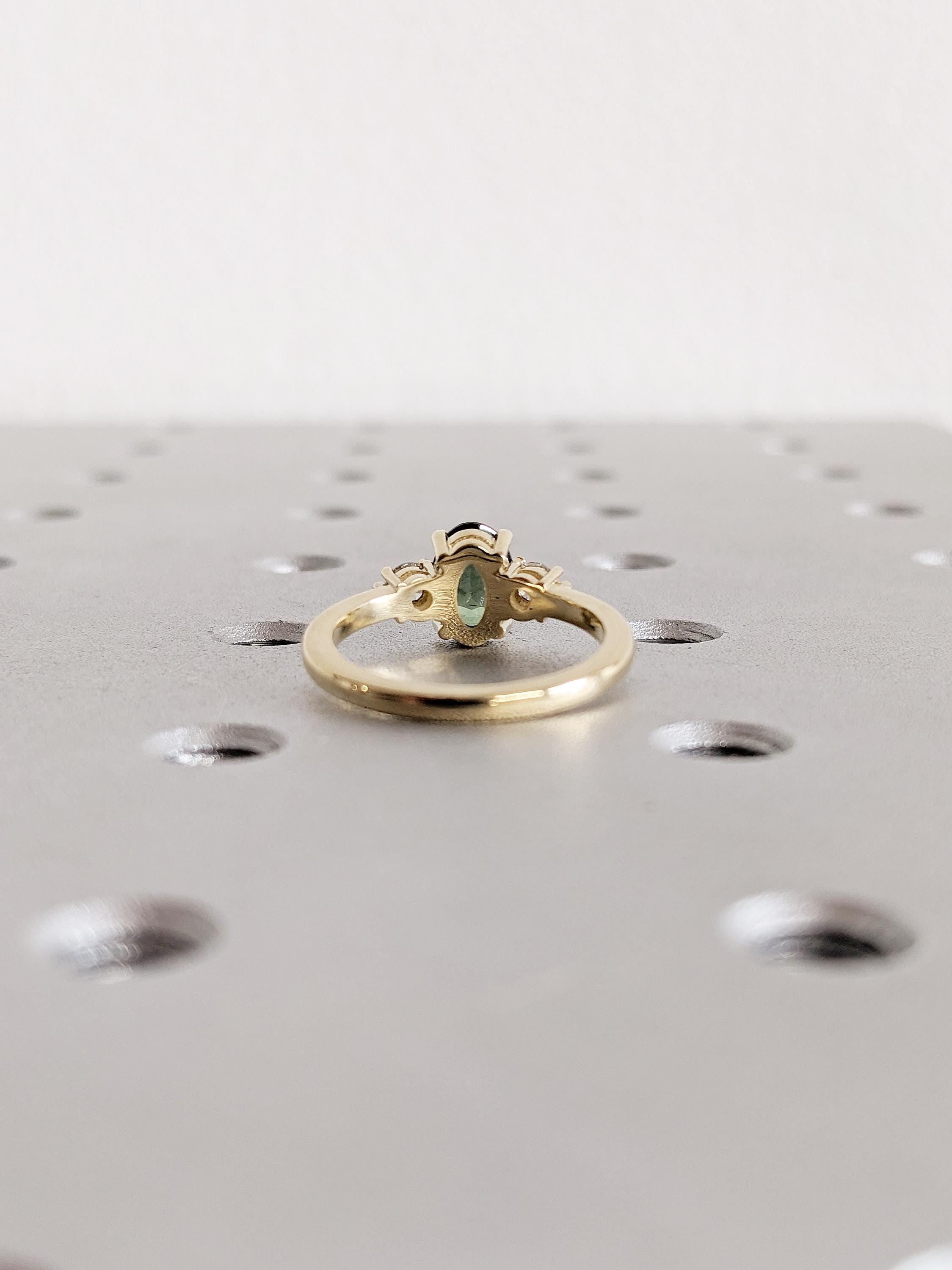 Natural Sapphire Engagement Ring, 14k Solid Gold Ring, Diamond and Green Sapphire Ring