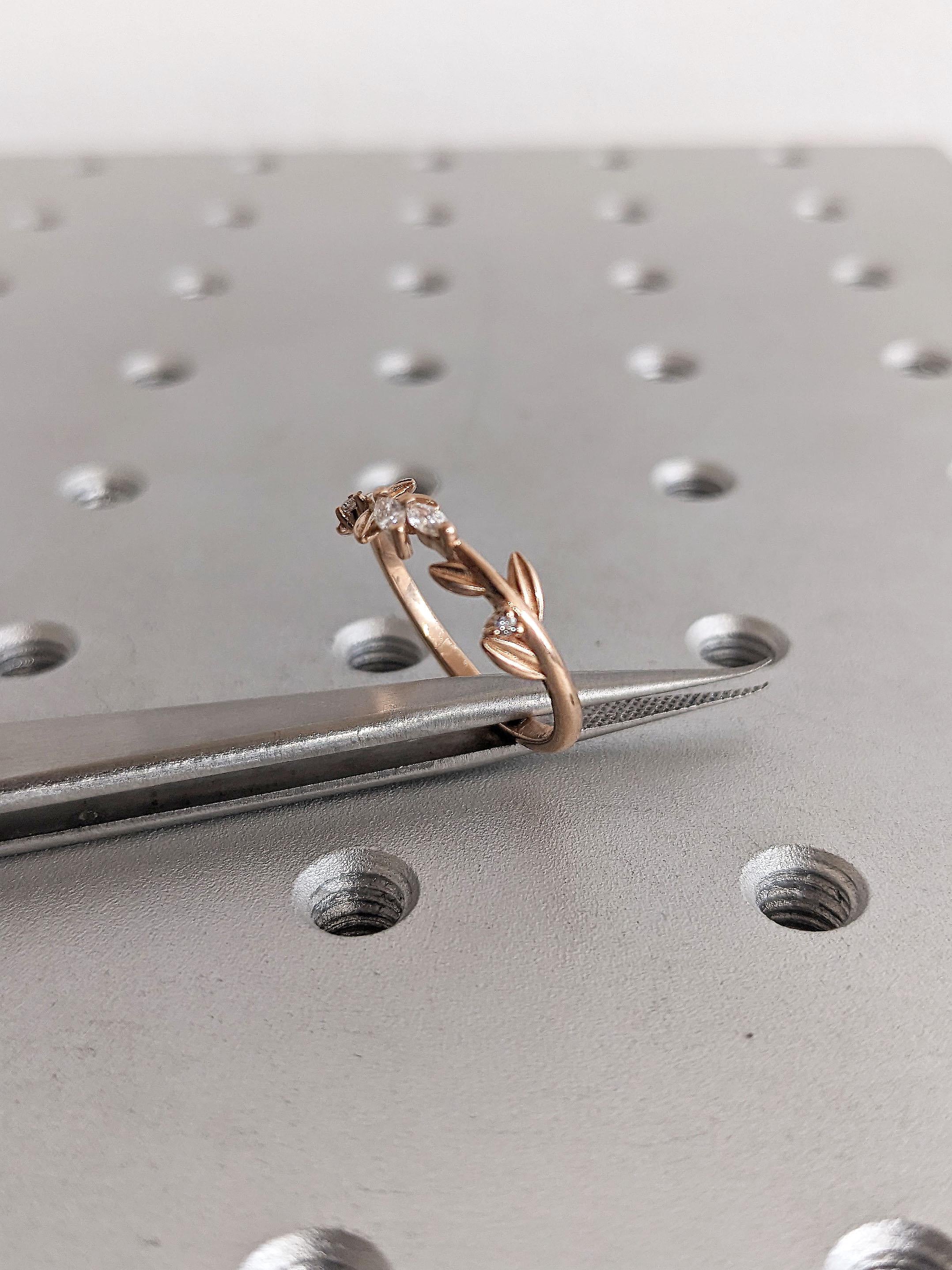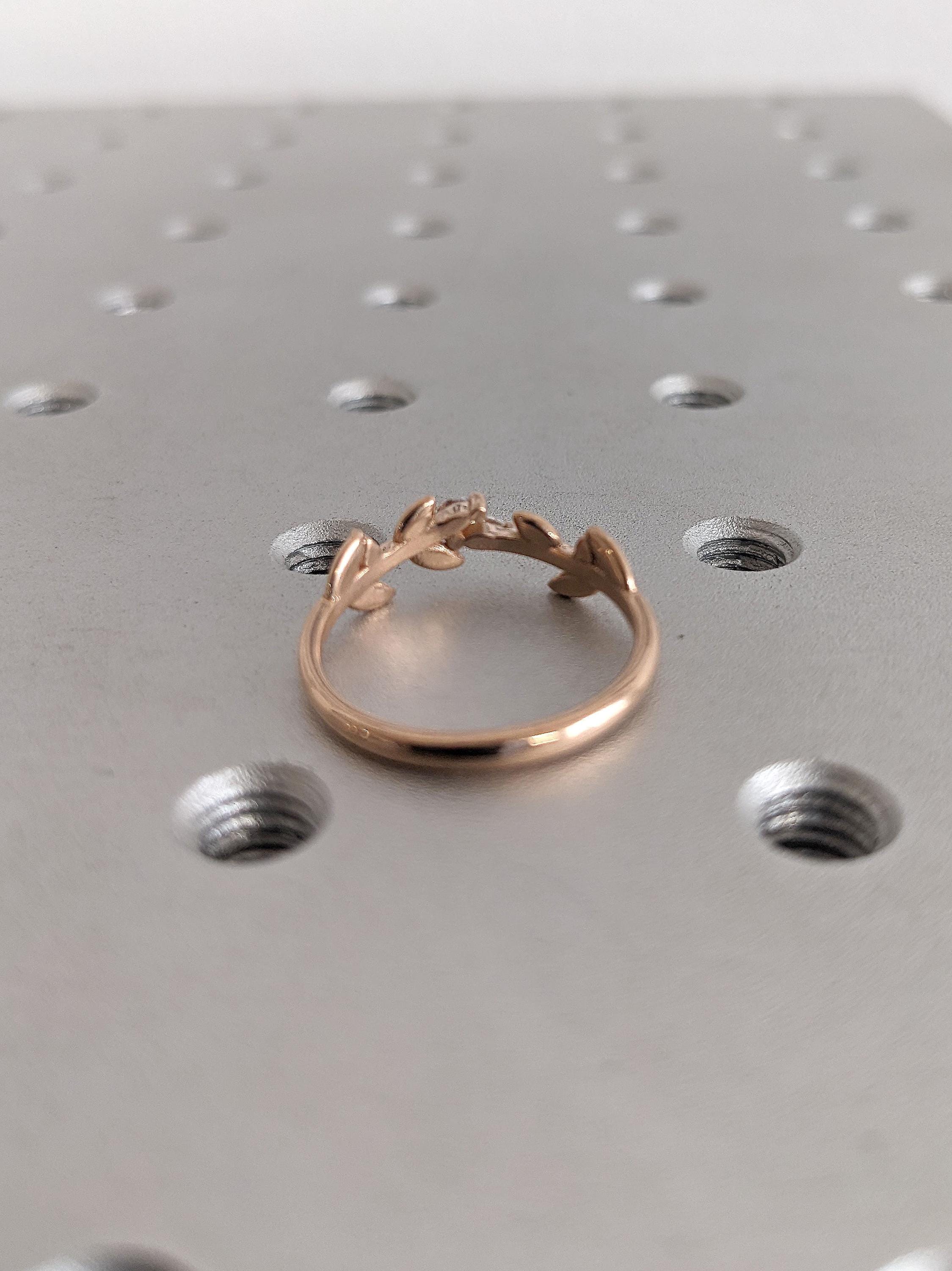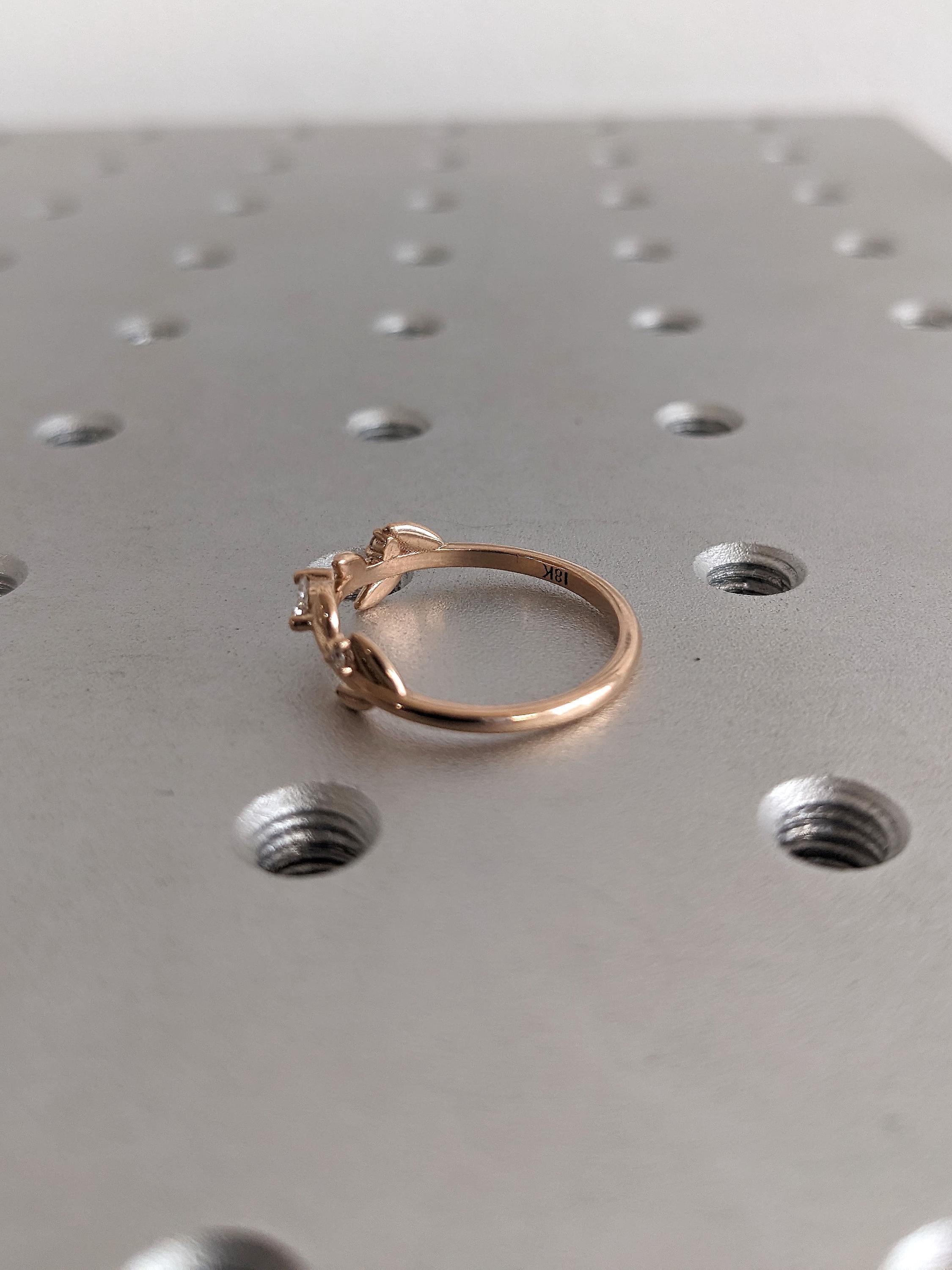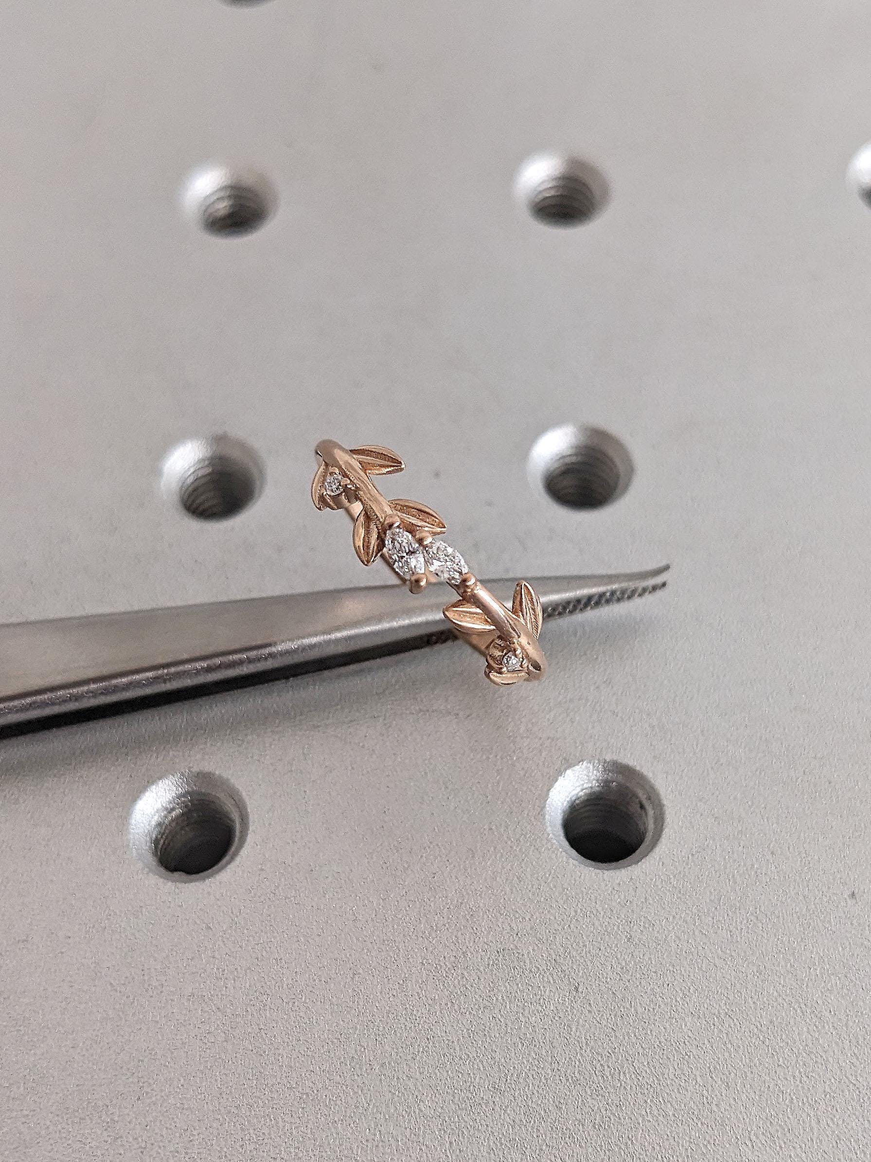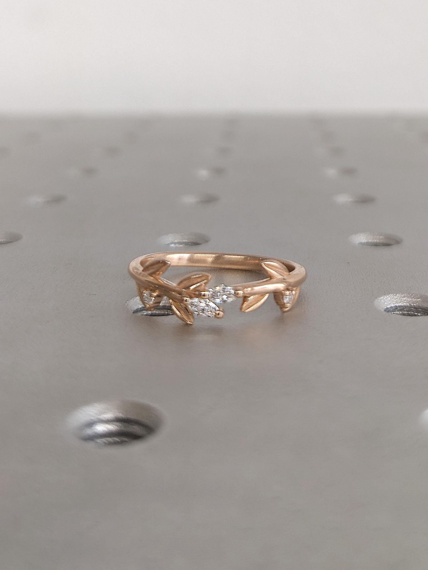 Nature Inspired 18k Rose Gold Rings for Women | Dainty Natural Diamond Stacking Ring | Handmade Jewelry | Rustic Engagement | Organic Ring