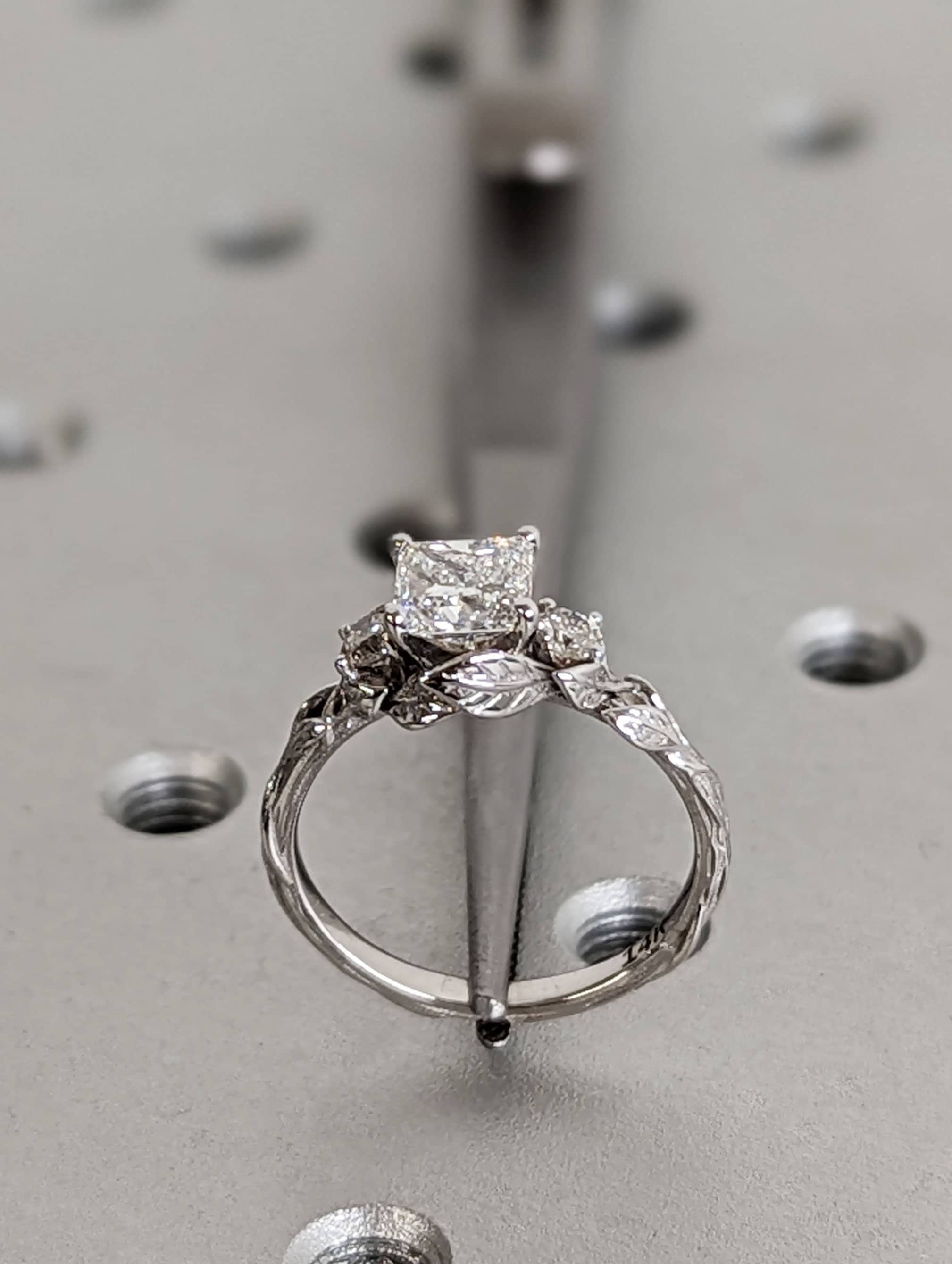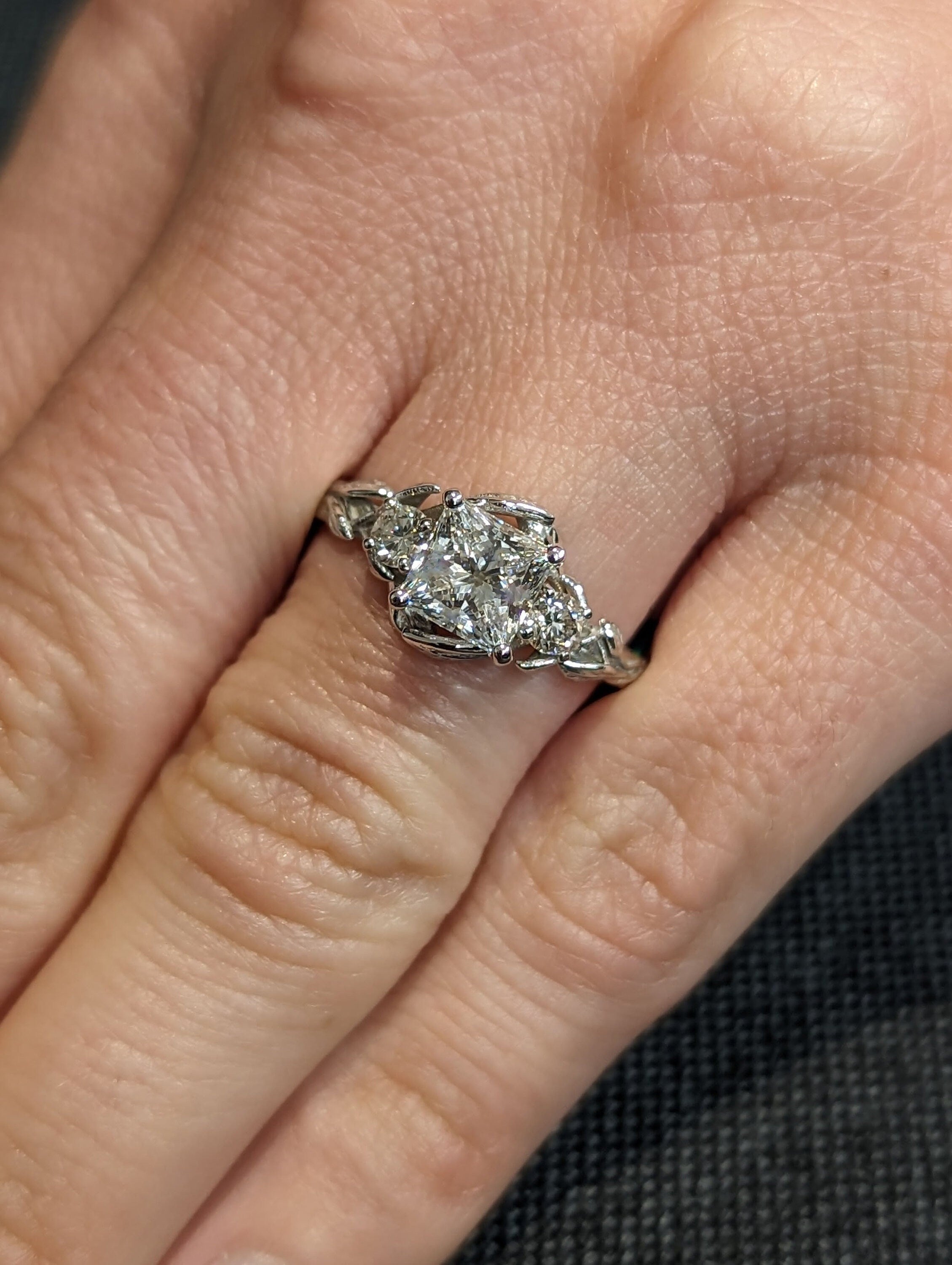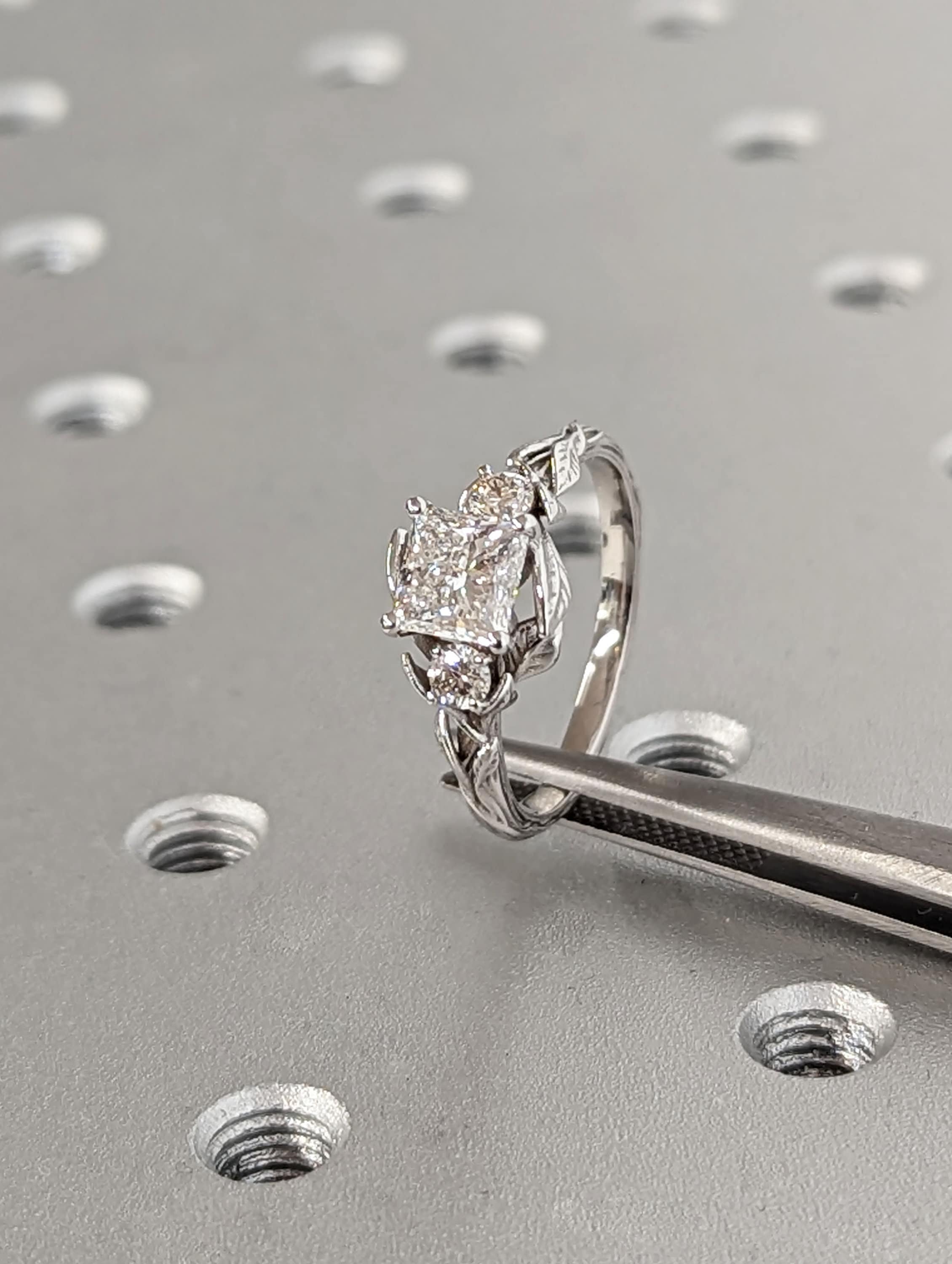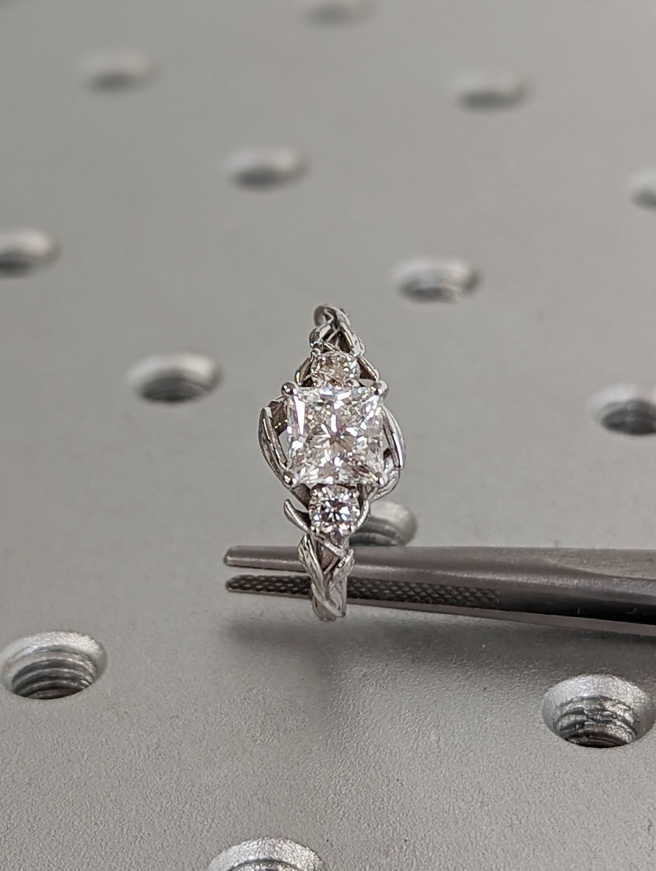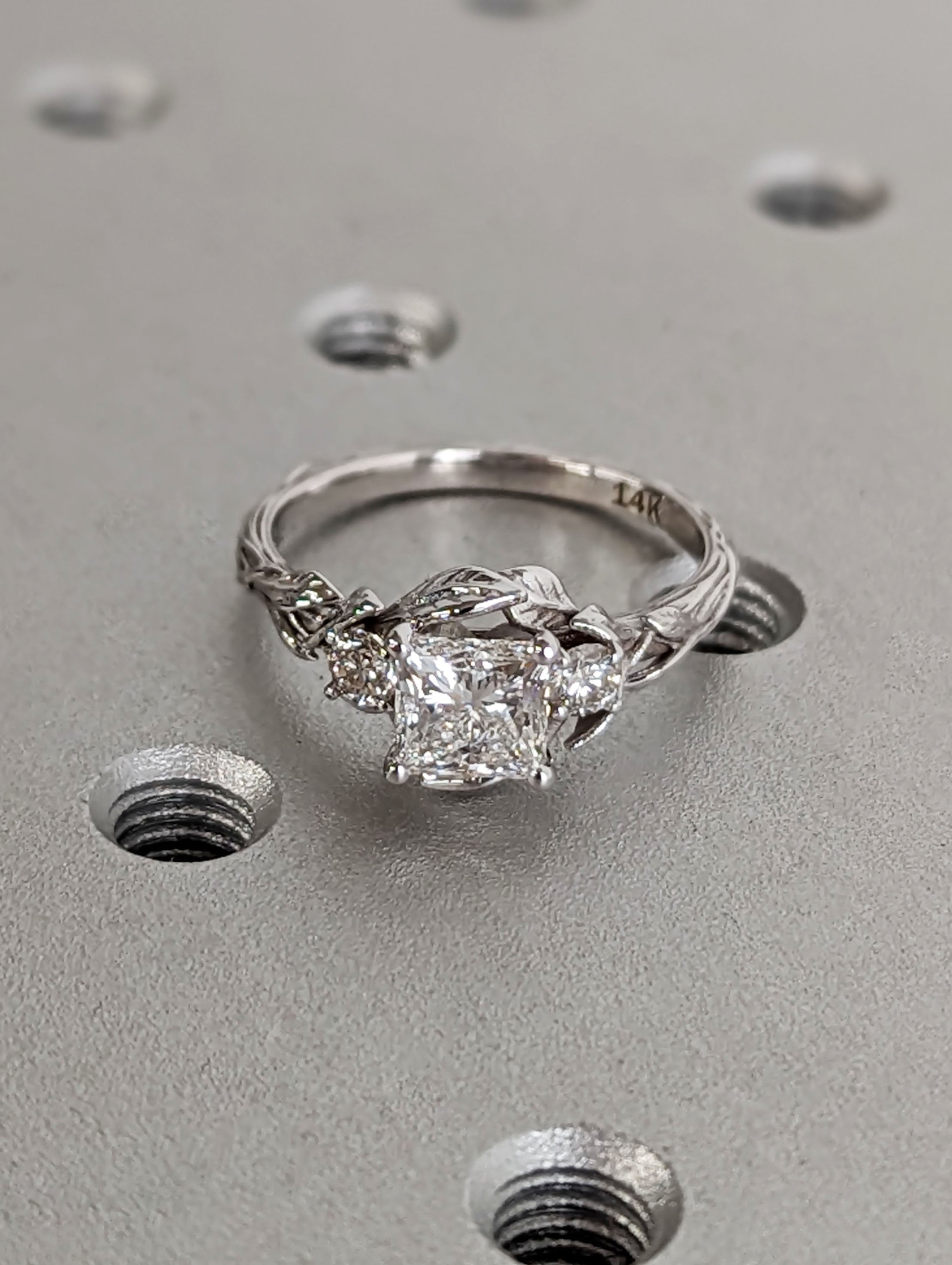 Nature Inspired 1ct Princess Cut Moissanite Wedding Anniversary Ring | Unique 14K White Gold Leaf Motifs Promise Ring | Twig Art Deco Ring