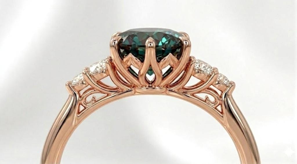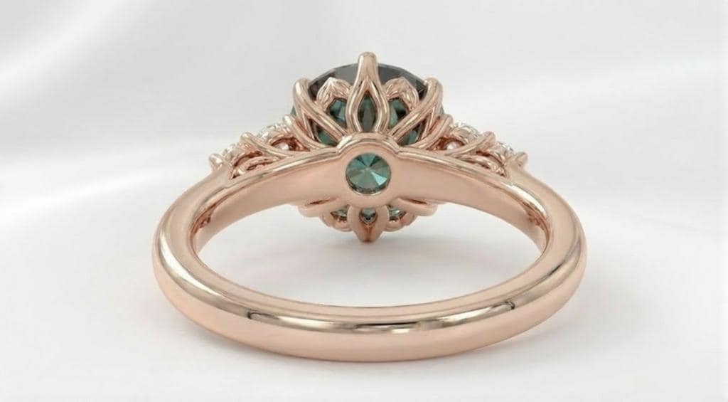 Nature Inspired Flower Petal Ring: 0.5ct Round cut Natural Sapphire, Solid Rose Gold with Round Diamond/Moissanite Side Stones