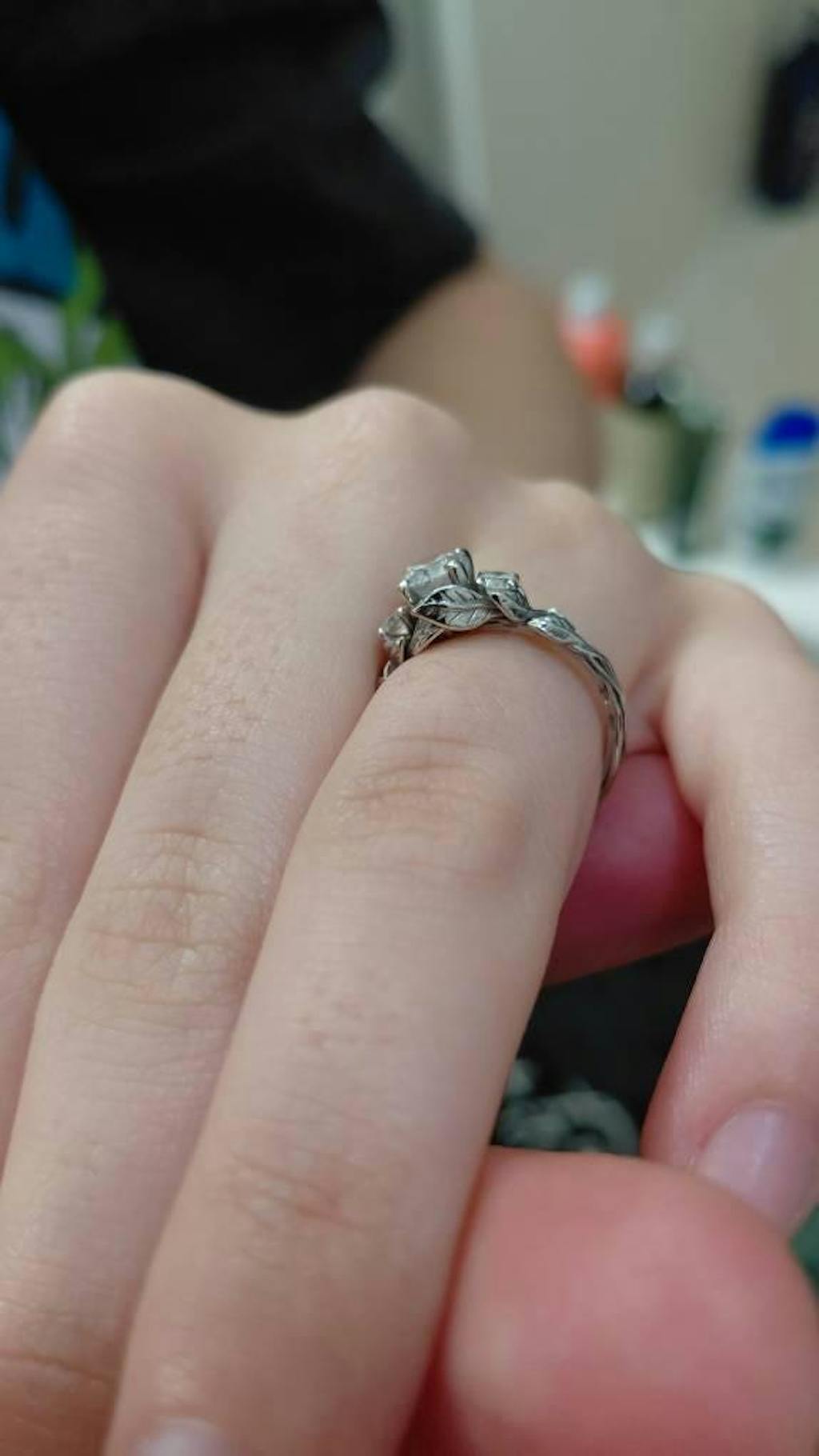 Nature Inspired Lab Grown Diamond Engagement Ring Leaves Band Round Lab Diamond Wedding Ring Leaf Vine Branch Alternative Engagement Ring