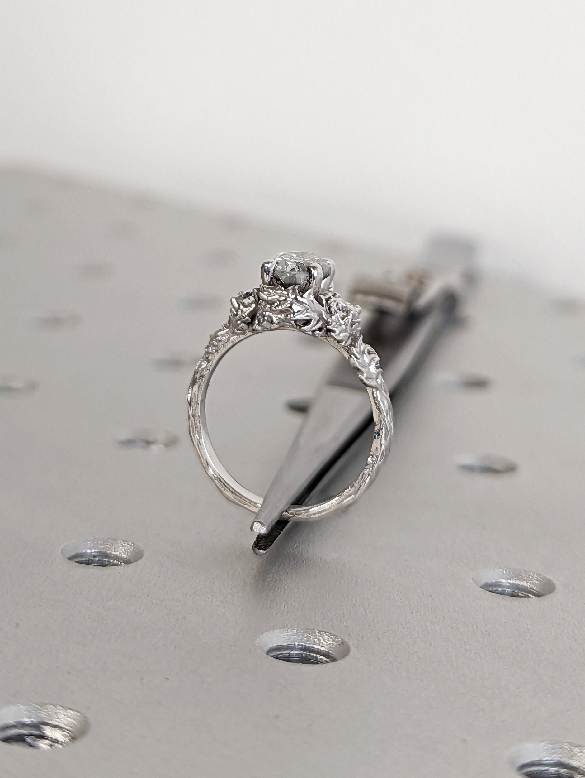 Nature inspired lab grown diamond bridal ring / Branch diamond engagement ring / Twig diamond engagement ring / Twig and Thistle Leaf Ring