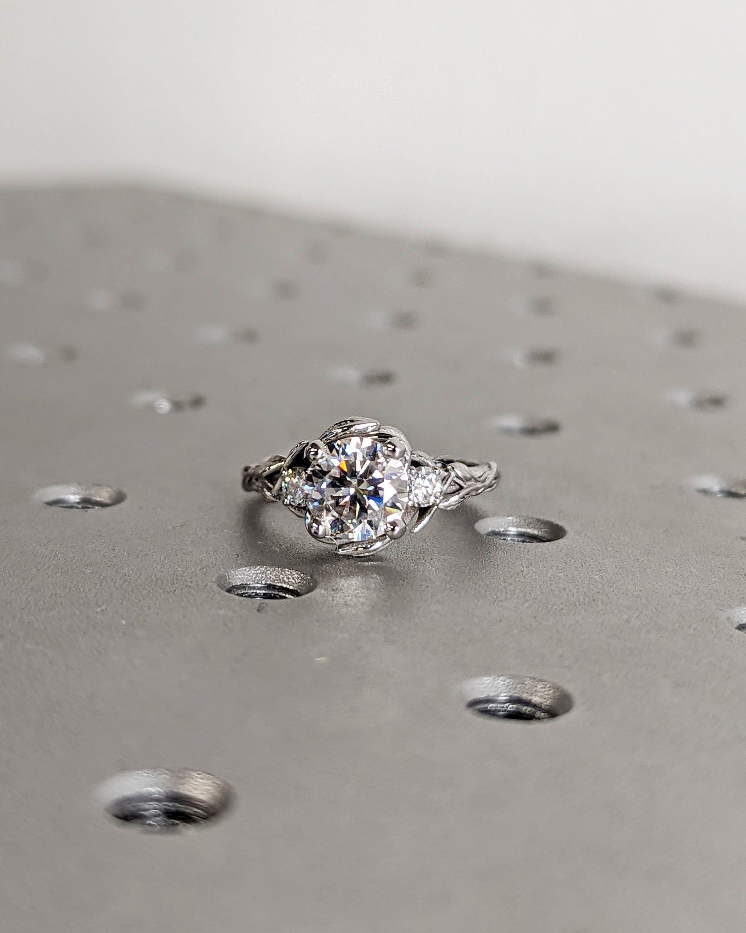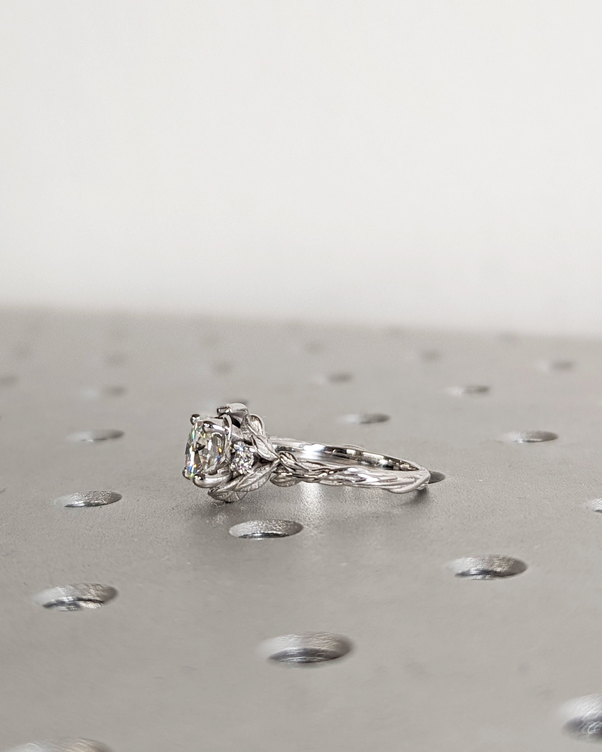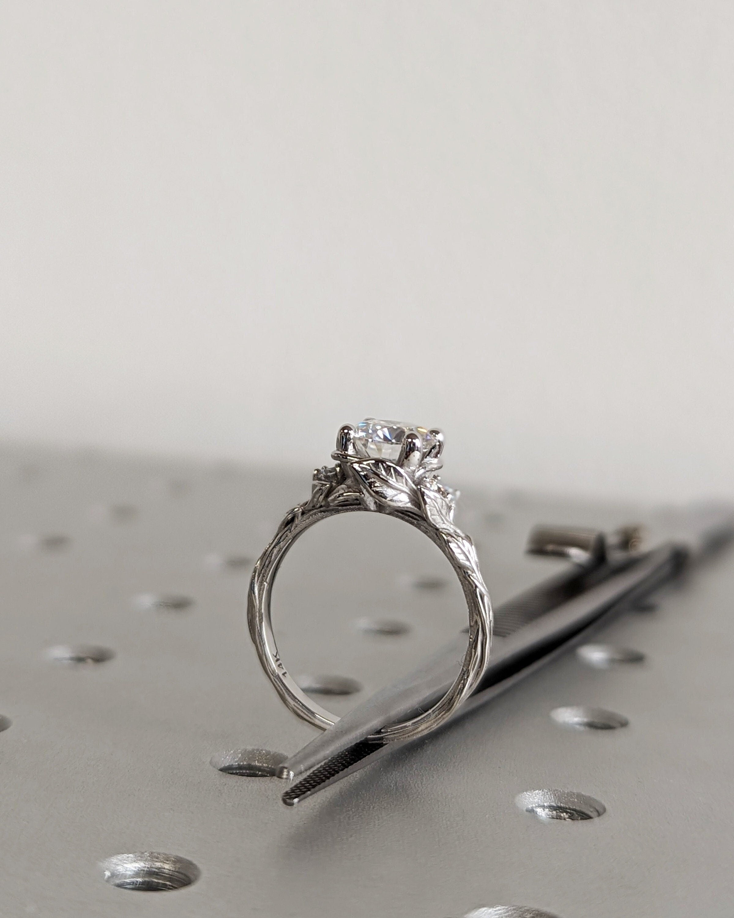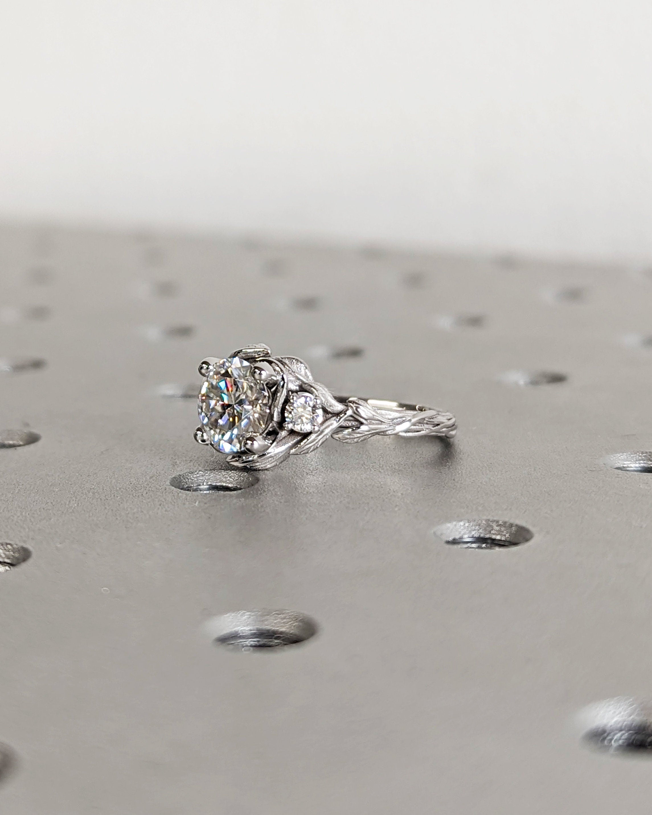 Nature Inspired Moissanite Engagement Ring Leaves Band Round Moissanite Diamond Wedding Ring Leaf Vine Branch Alternative Engagement Ring