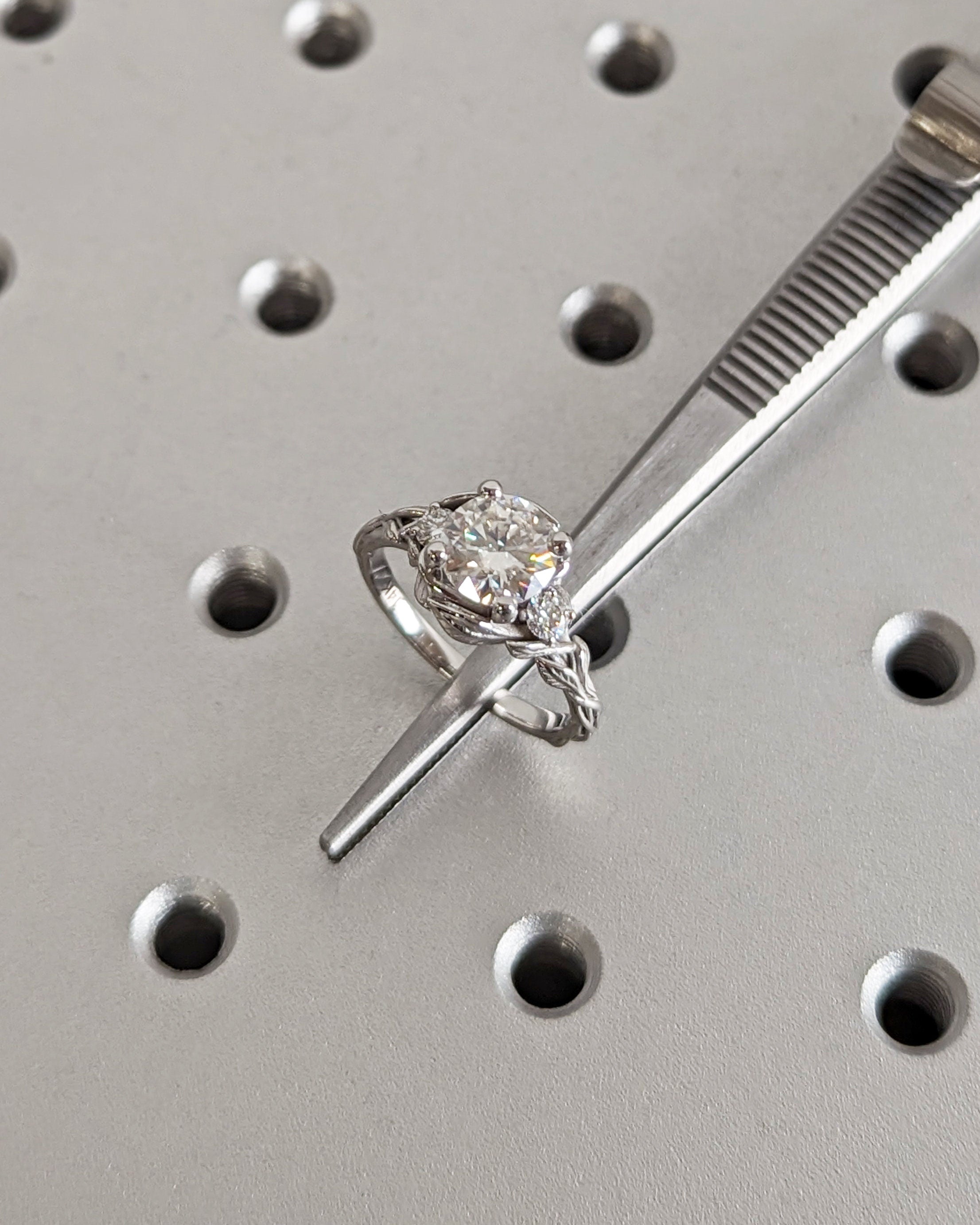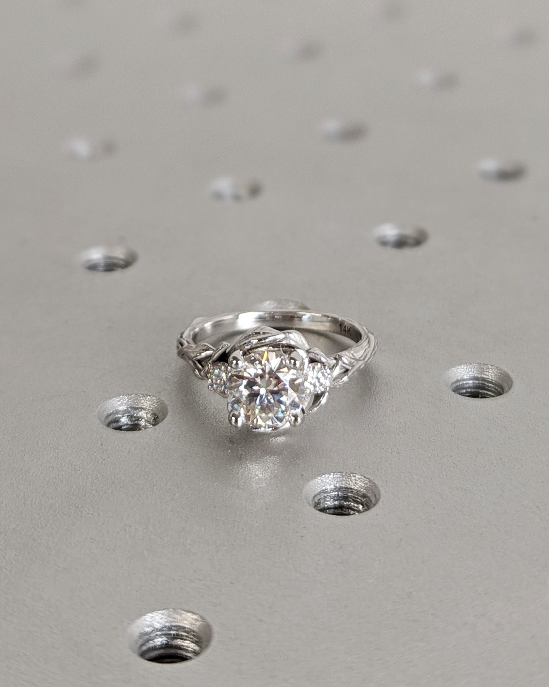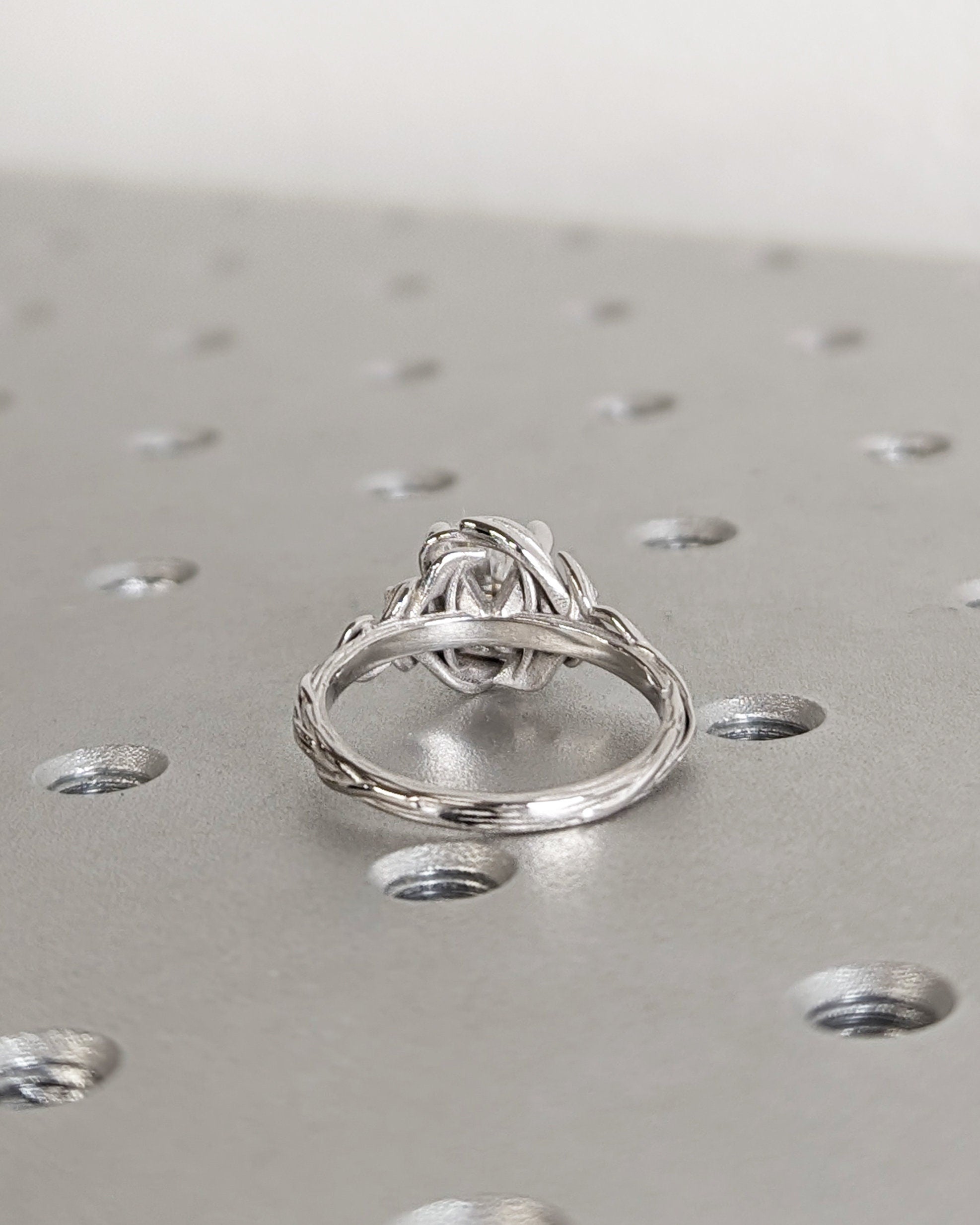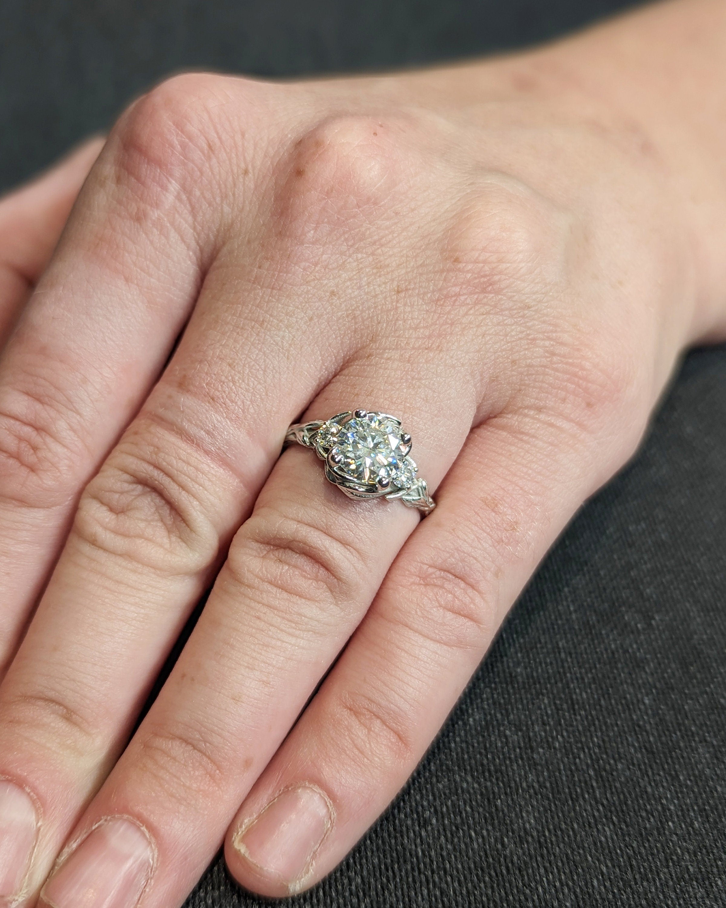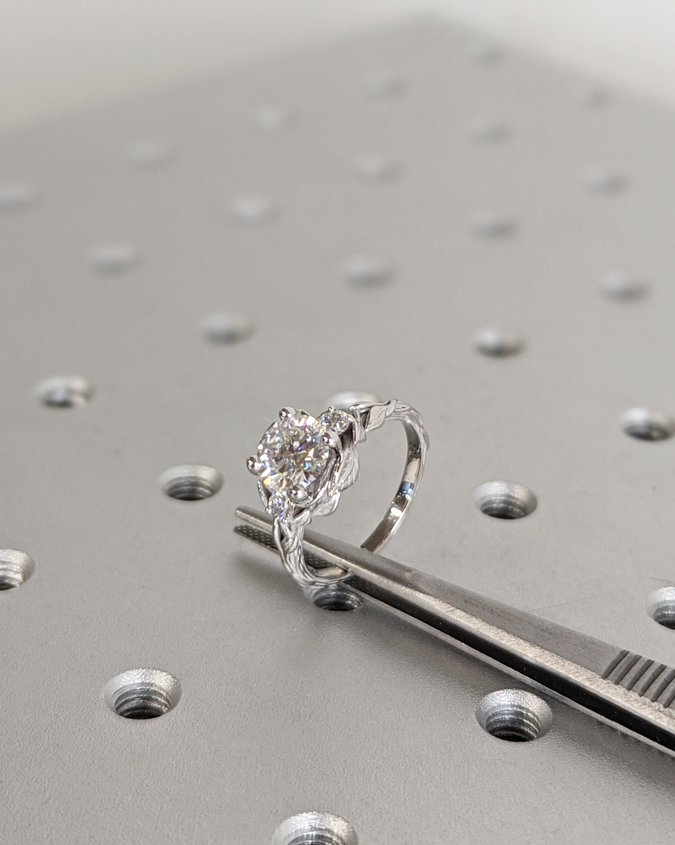 Nature Inspired Moissanite Engagement Ring Leaves Band Round Moissanite Diamond Wedding Ring Leaf Vine Branch Alternative Engagement Ring