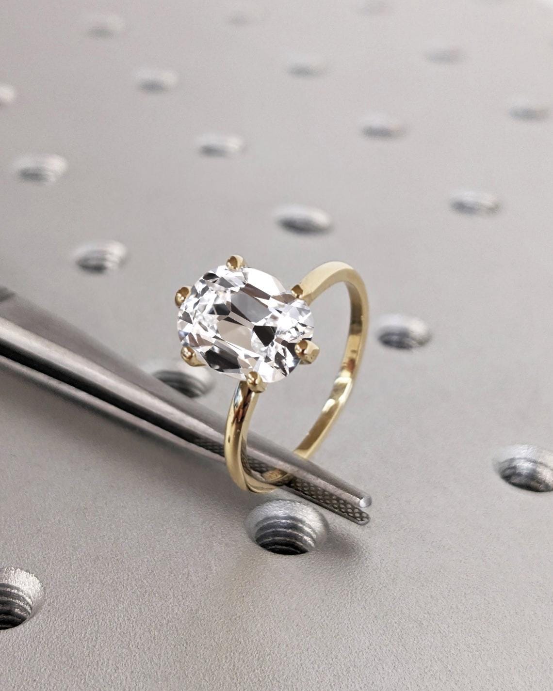 Old Mine cut CVD Diamond Solitaire Engagement Ring: Long Cushion Shape VS1 Lab Diamond in 14k Yellow Gold